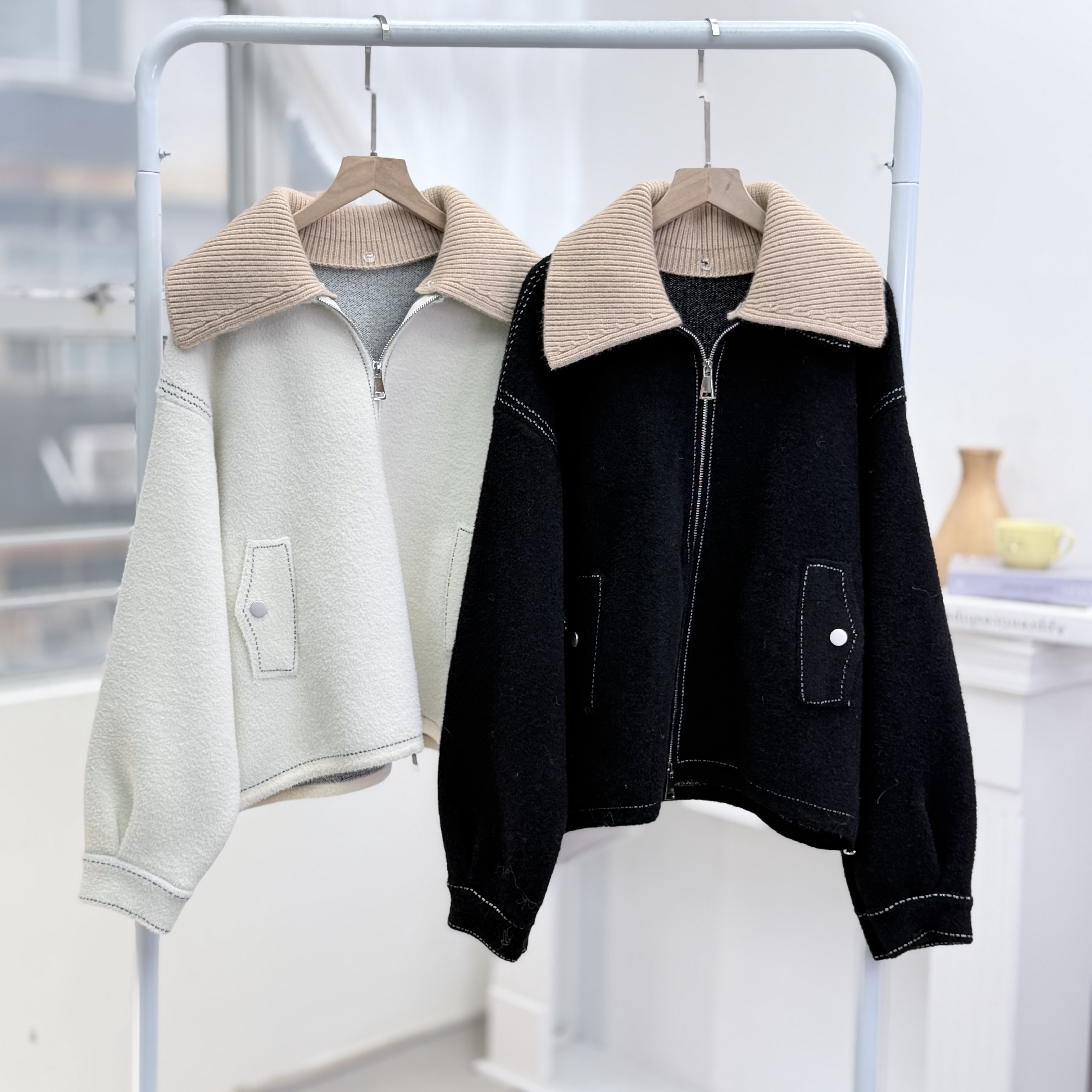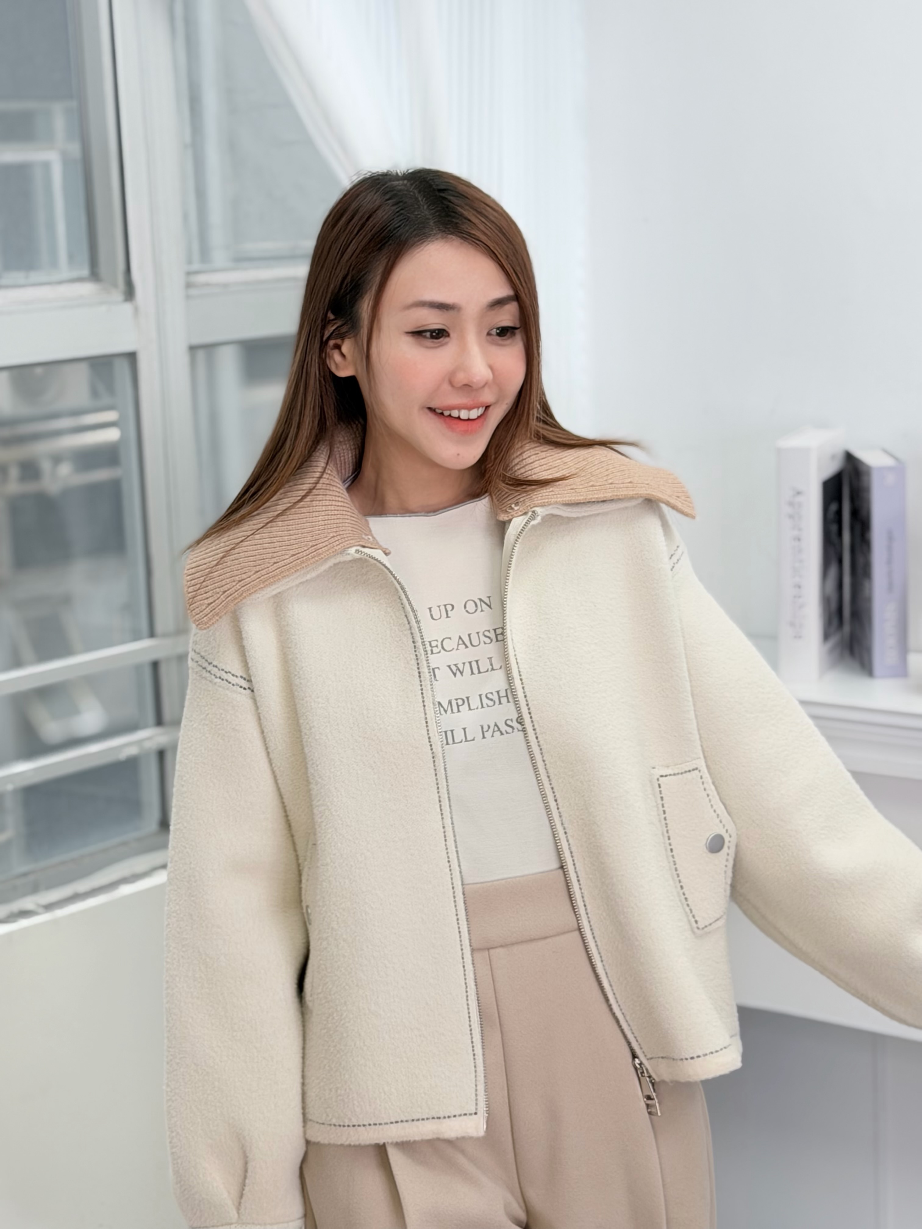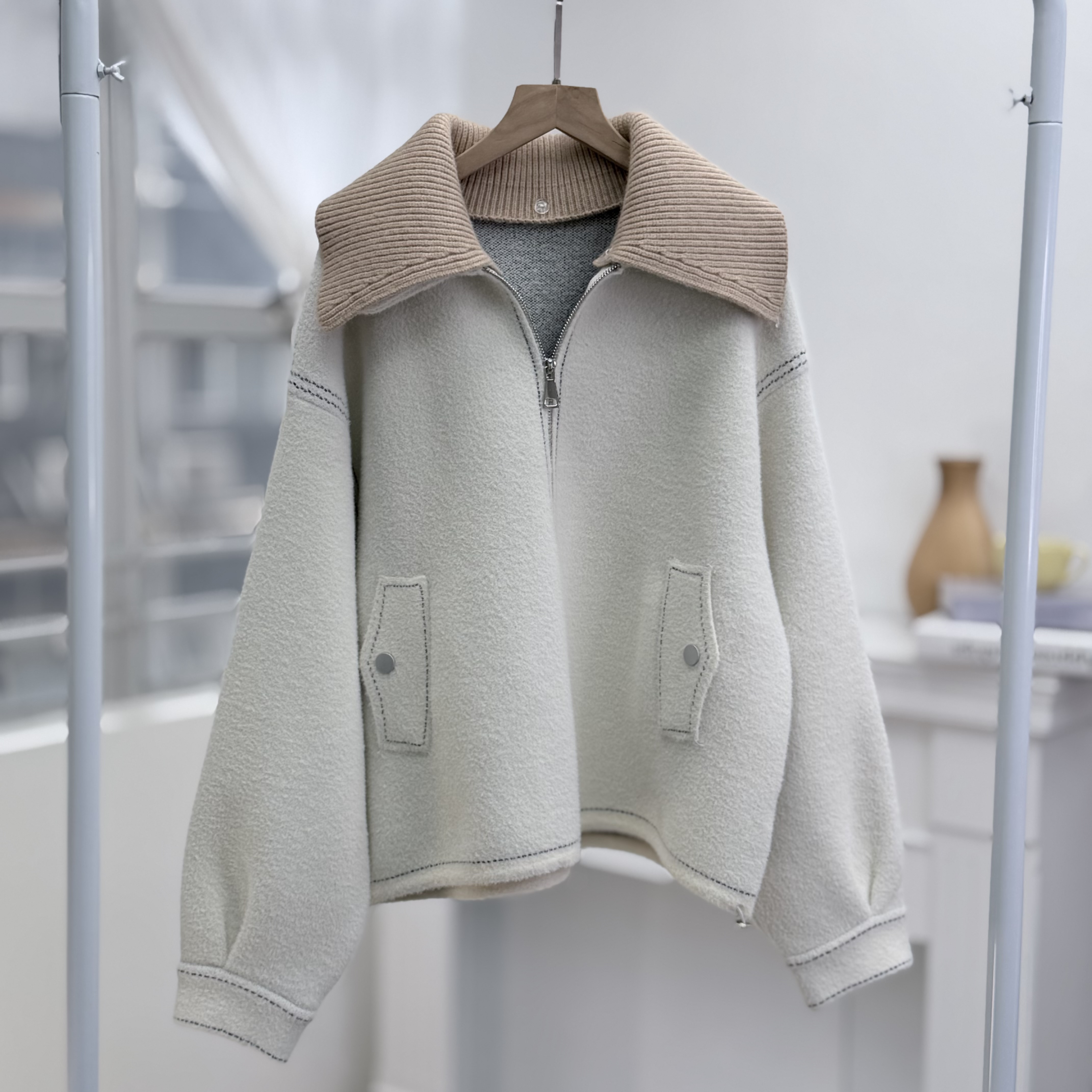 H1009🤎明線點綴短款外套
