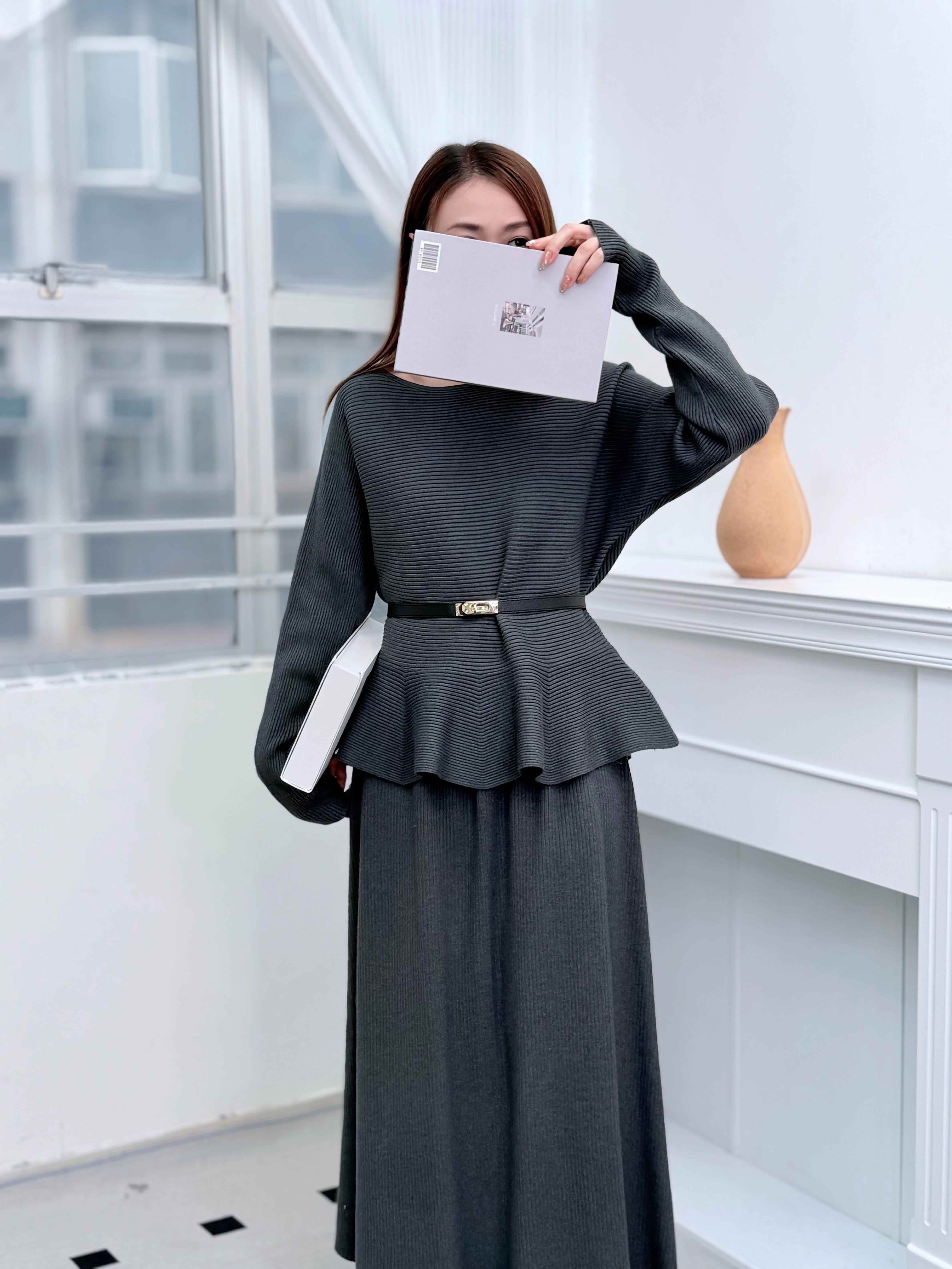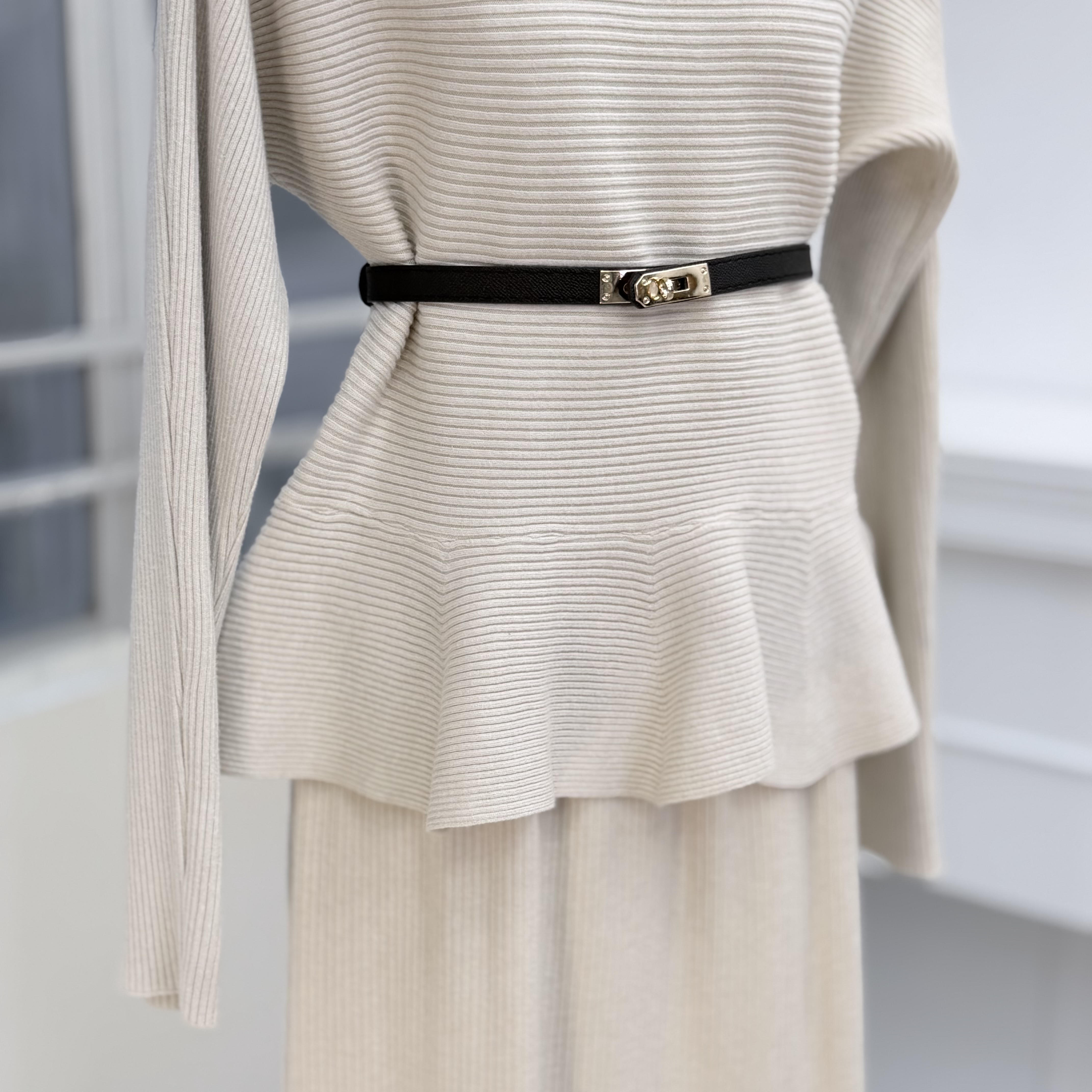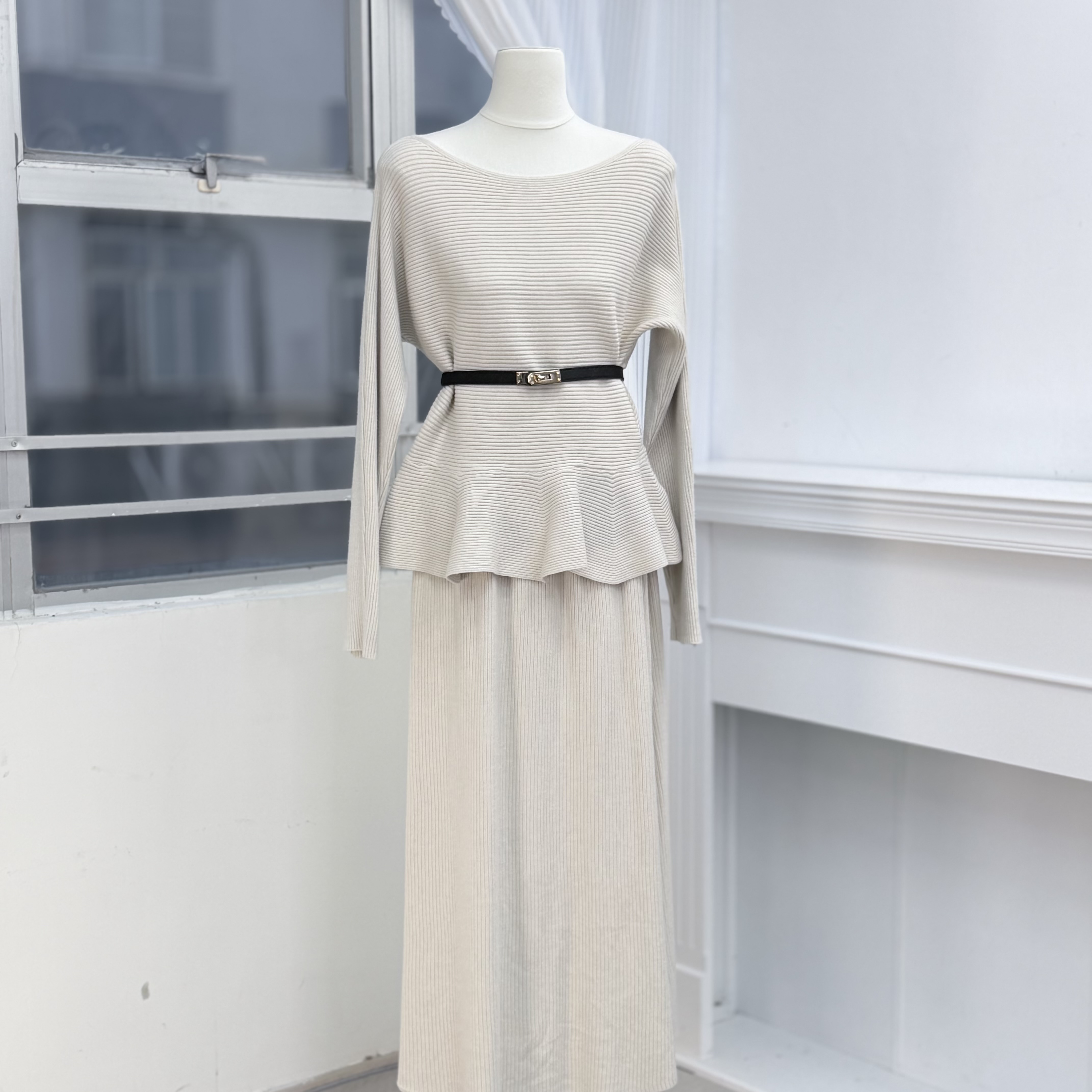 H1011🤎法式知性坑條紋針織套裝