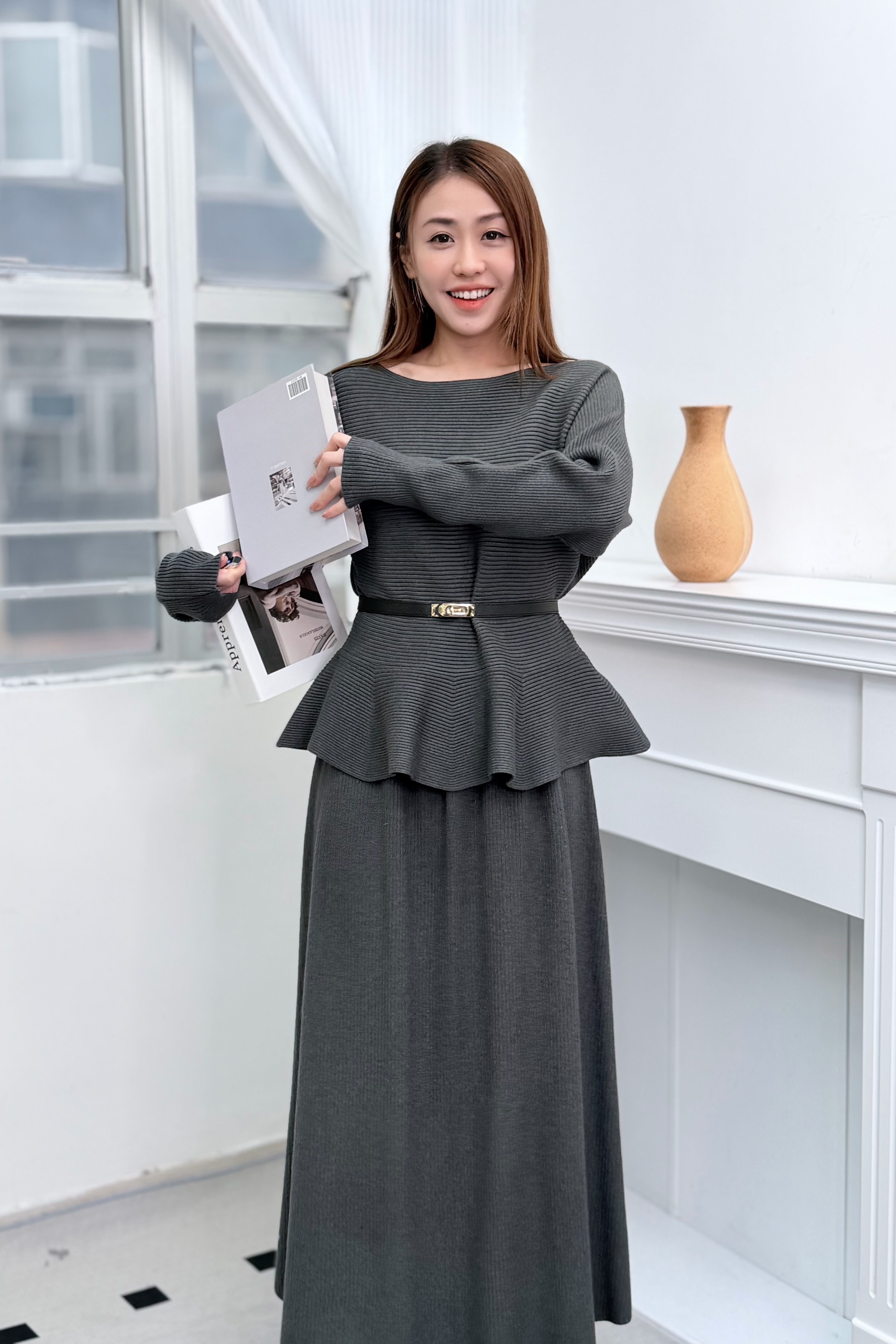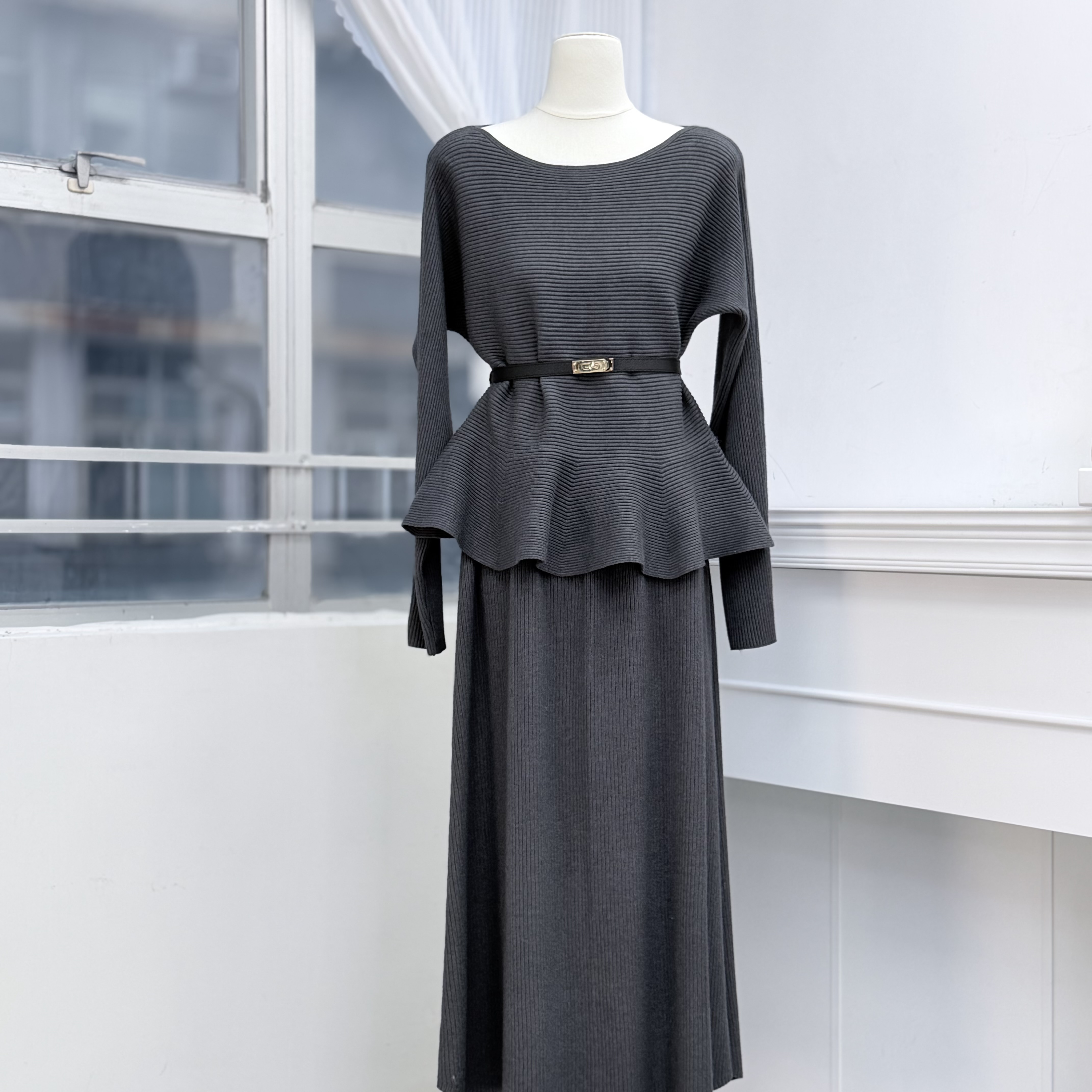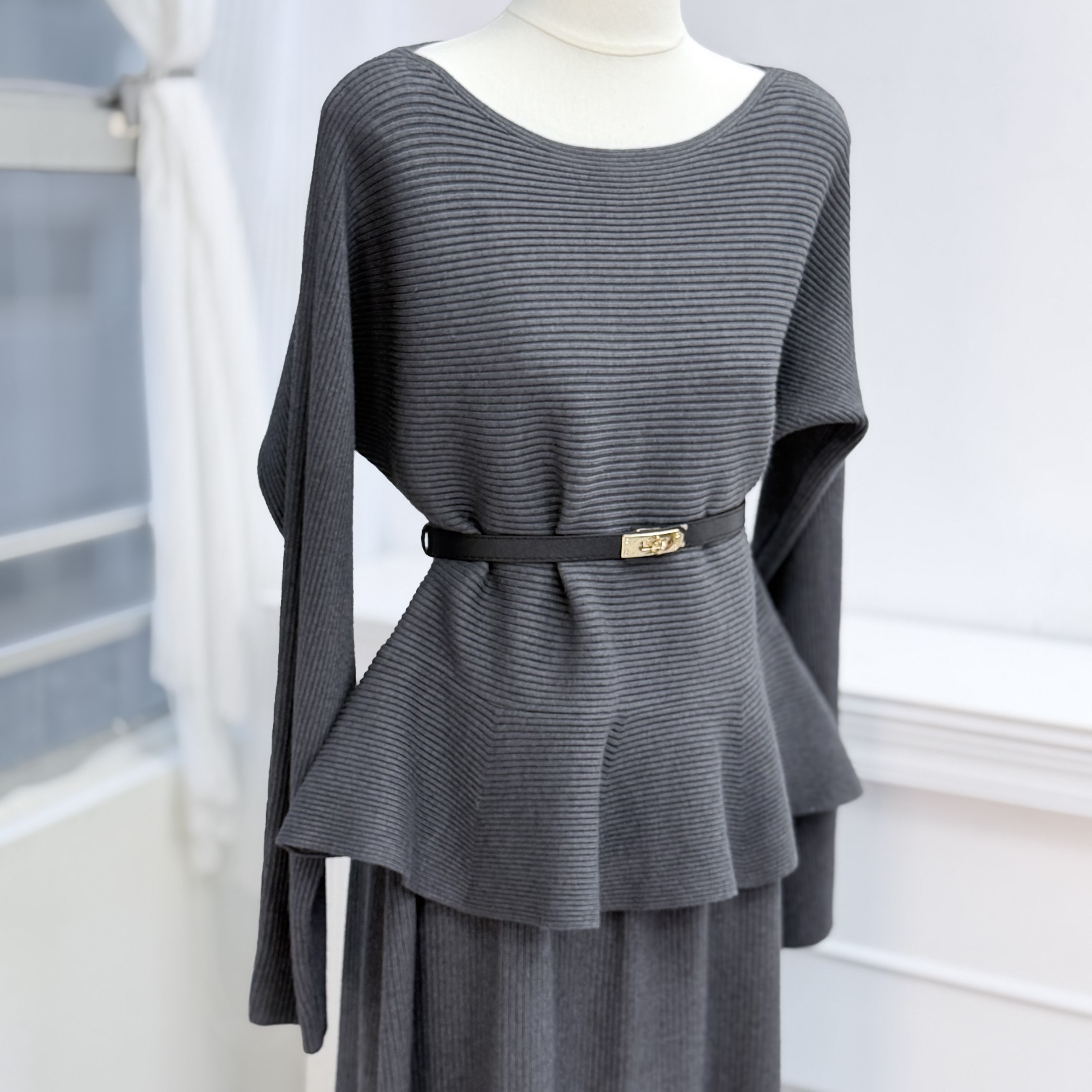 H1011🤎法式知性坑條紋針織套裝