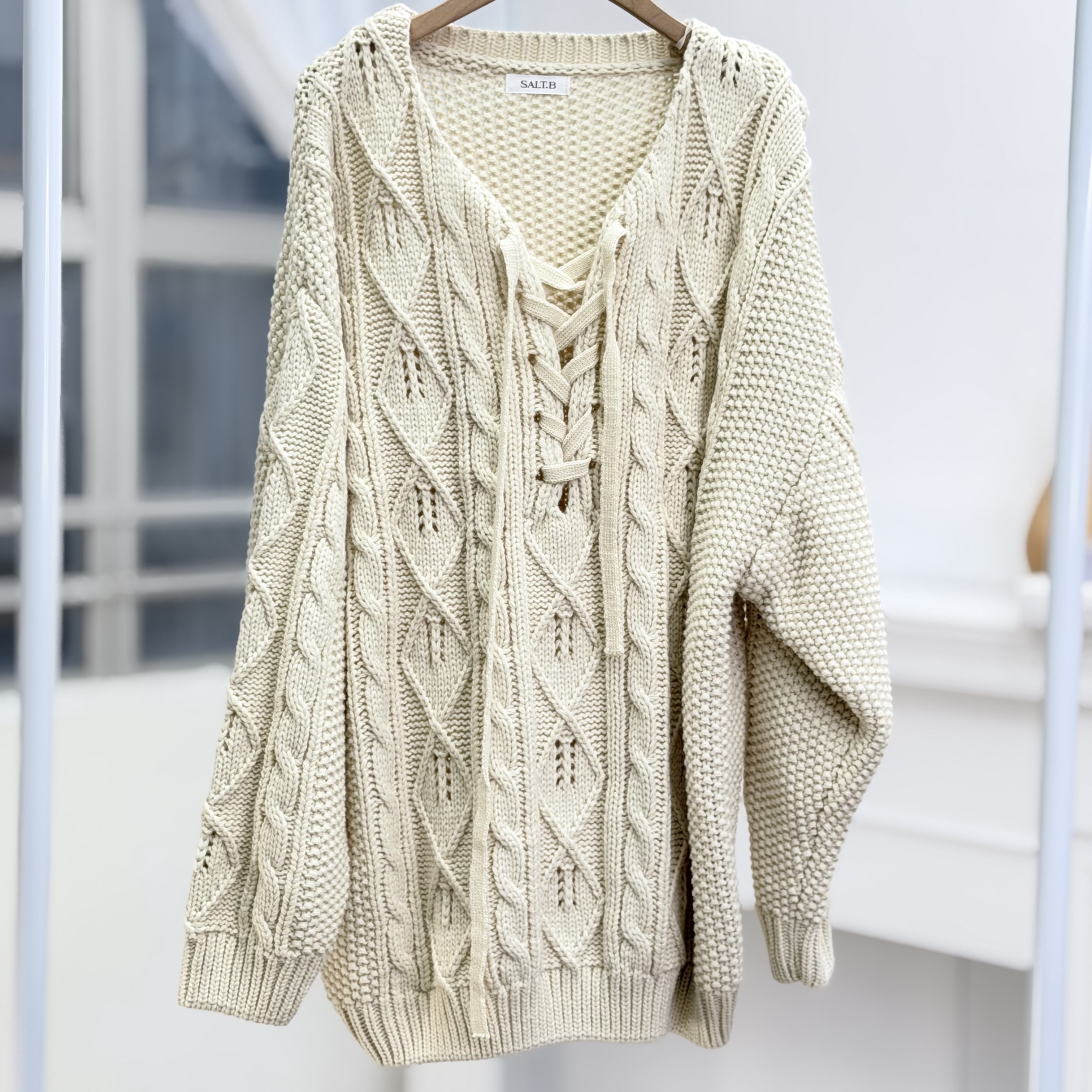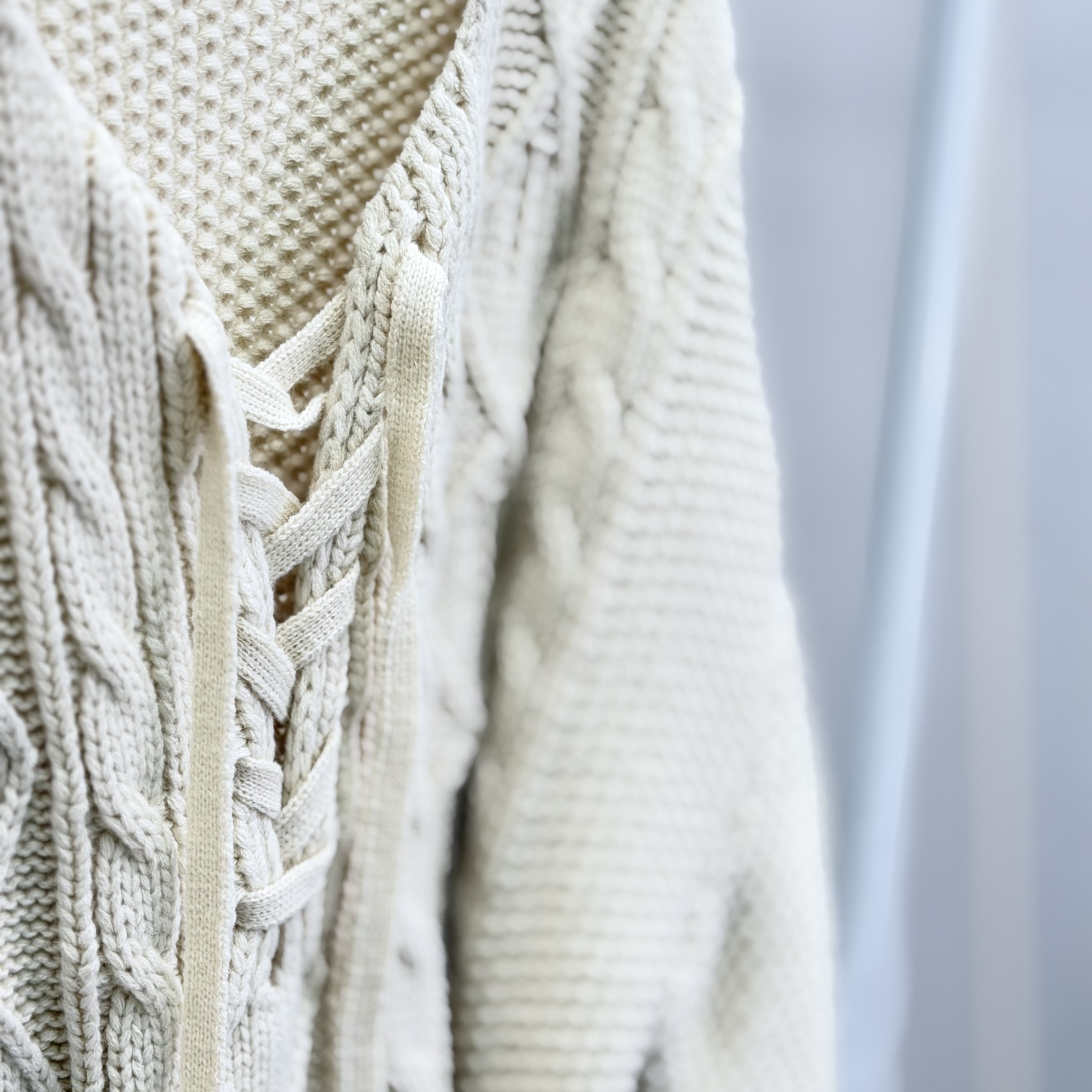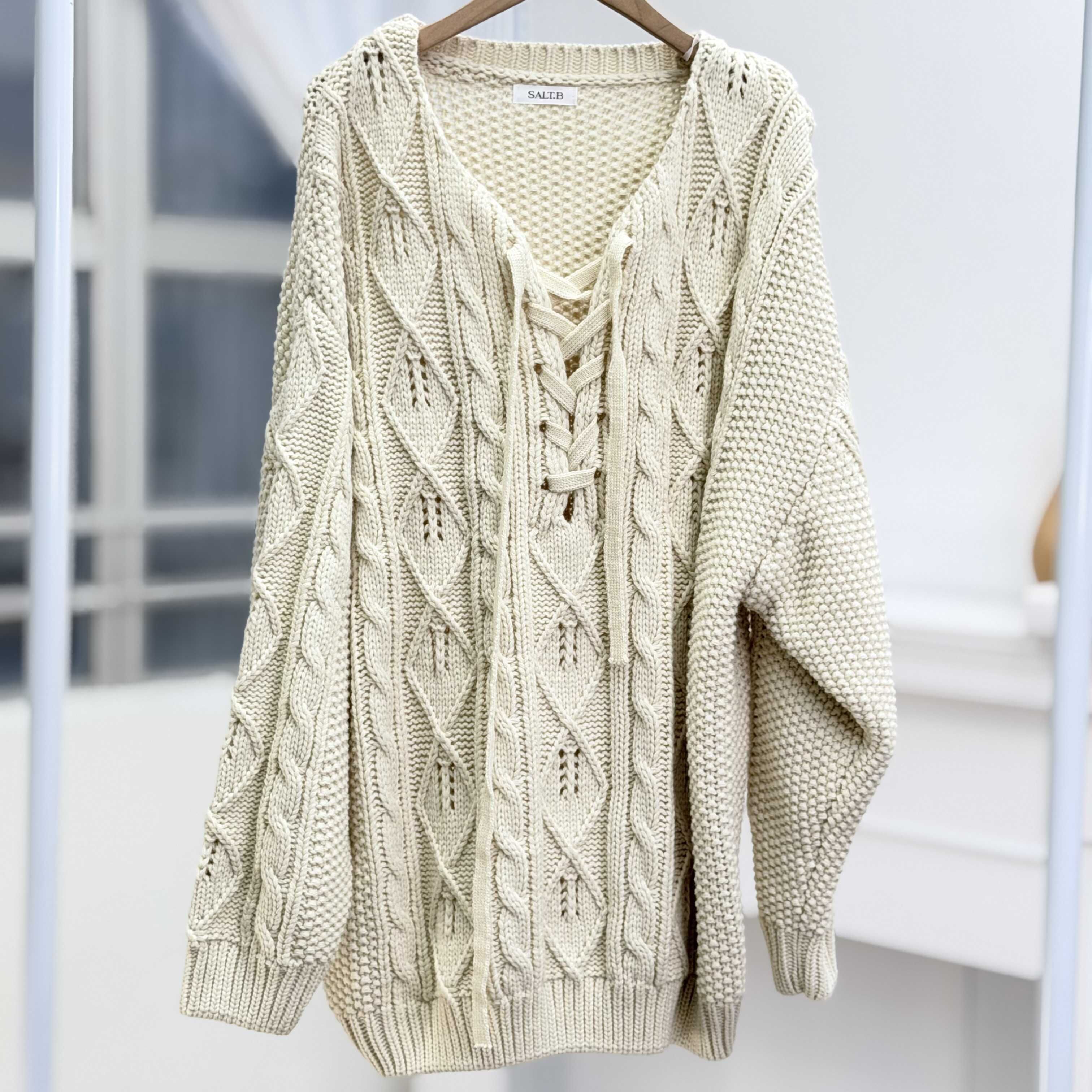 H1021🤎綁帶 V 領麻花針織上衣