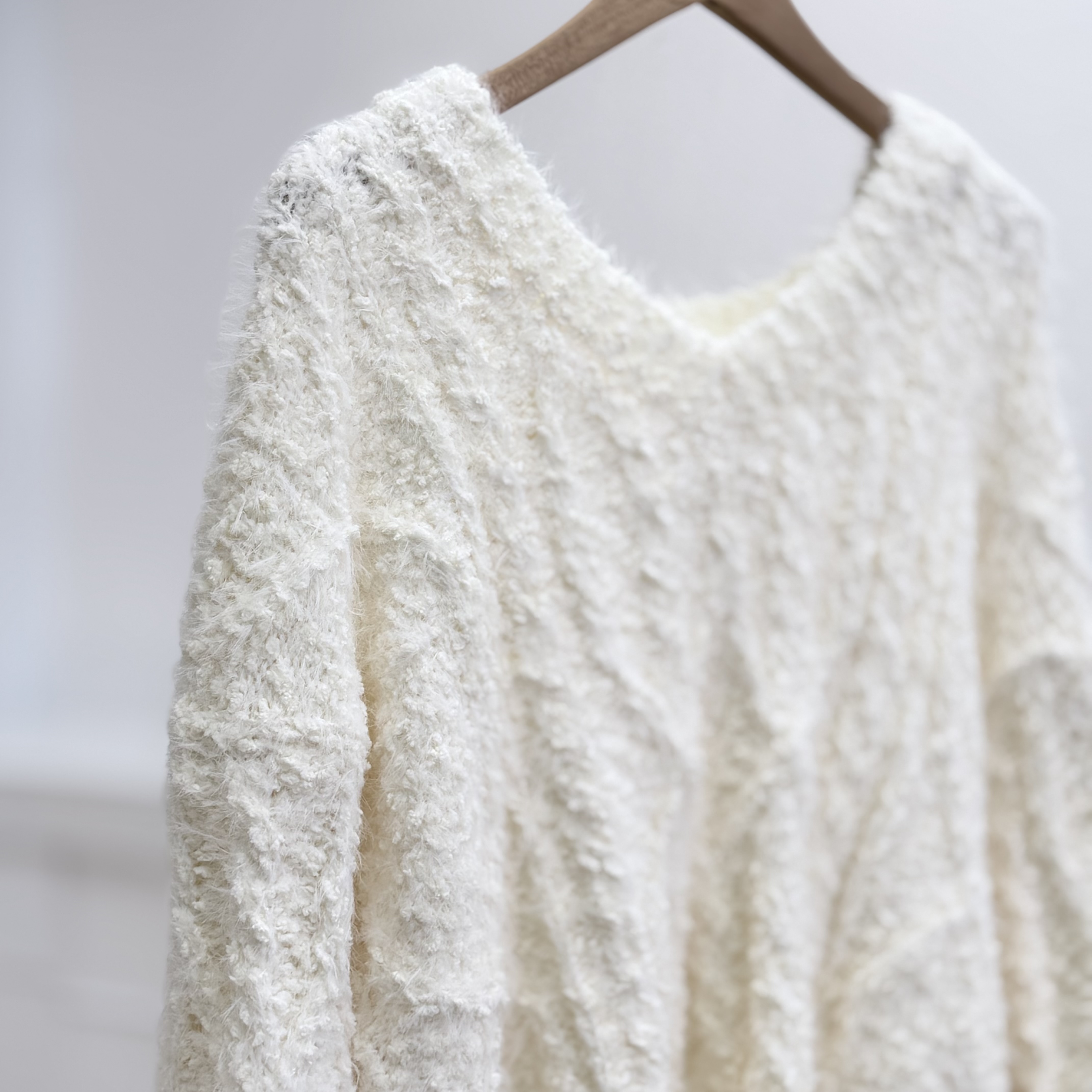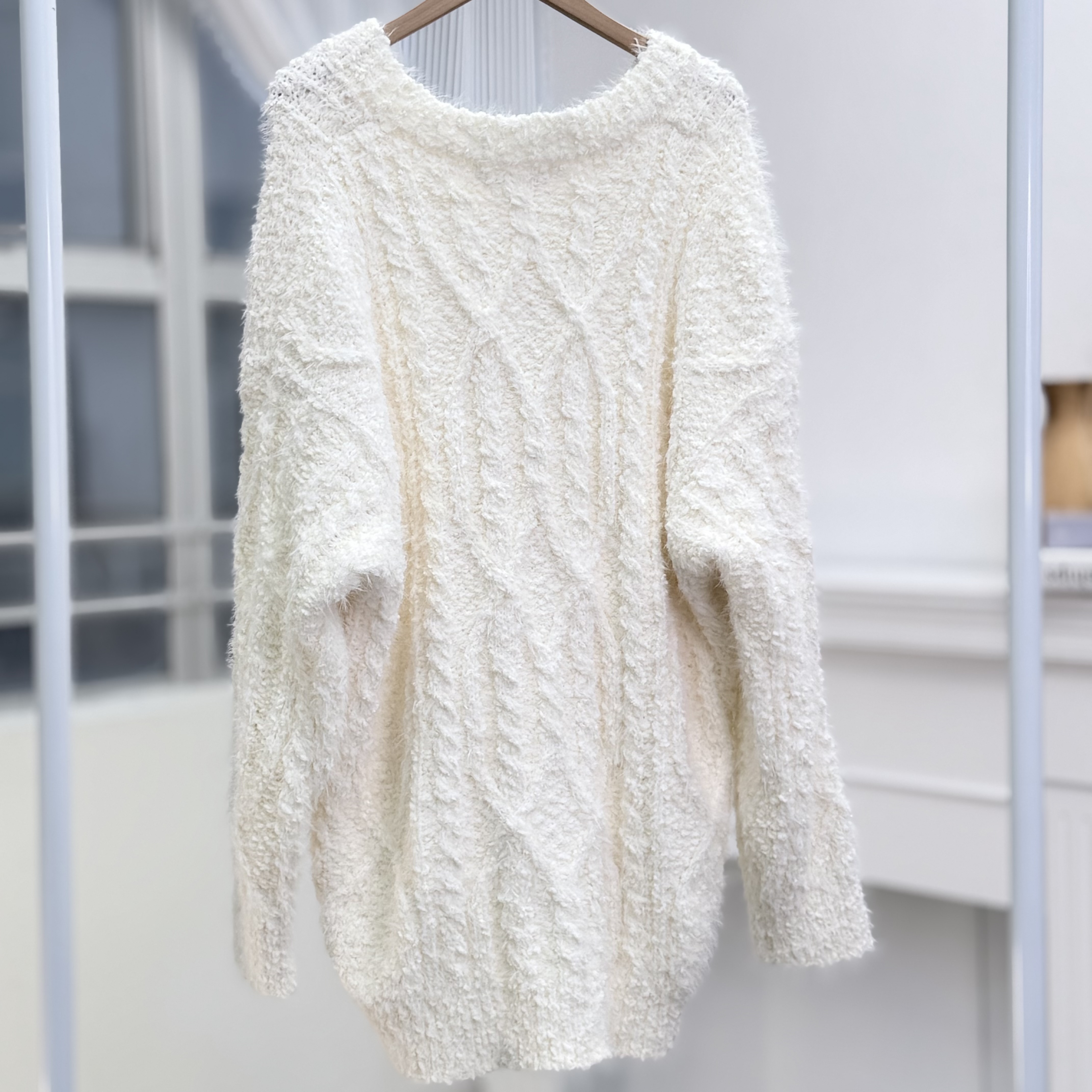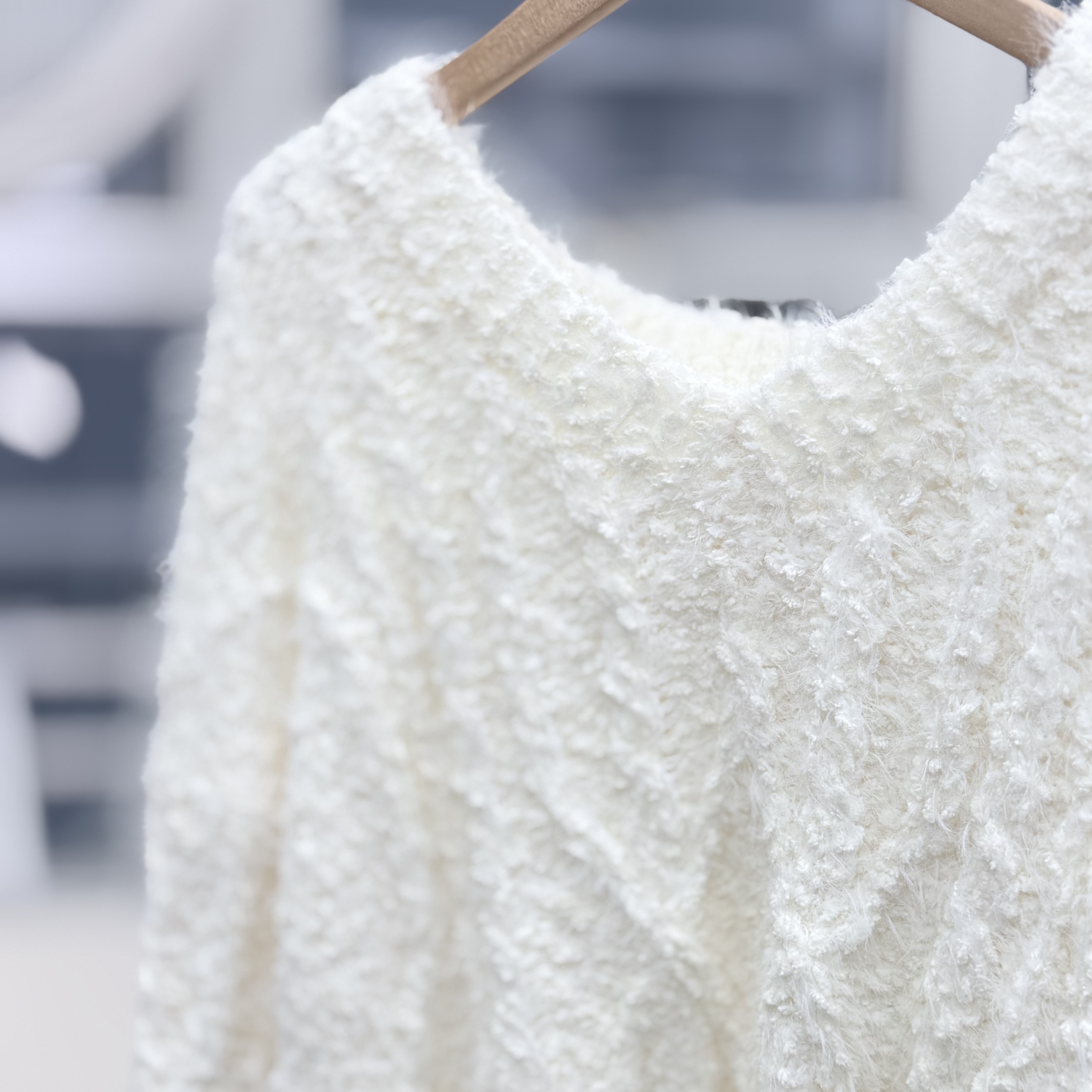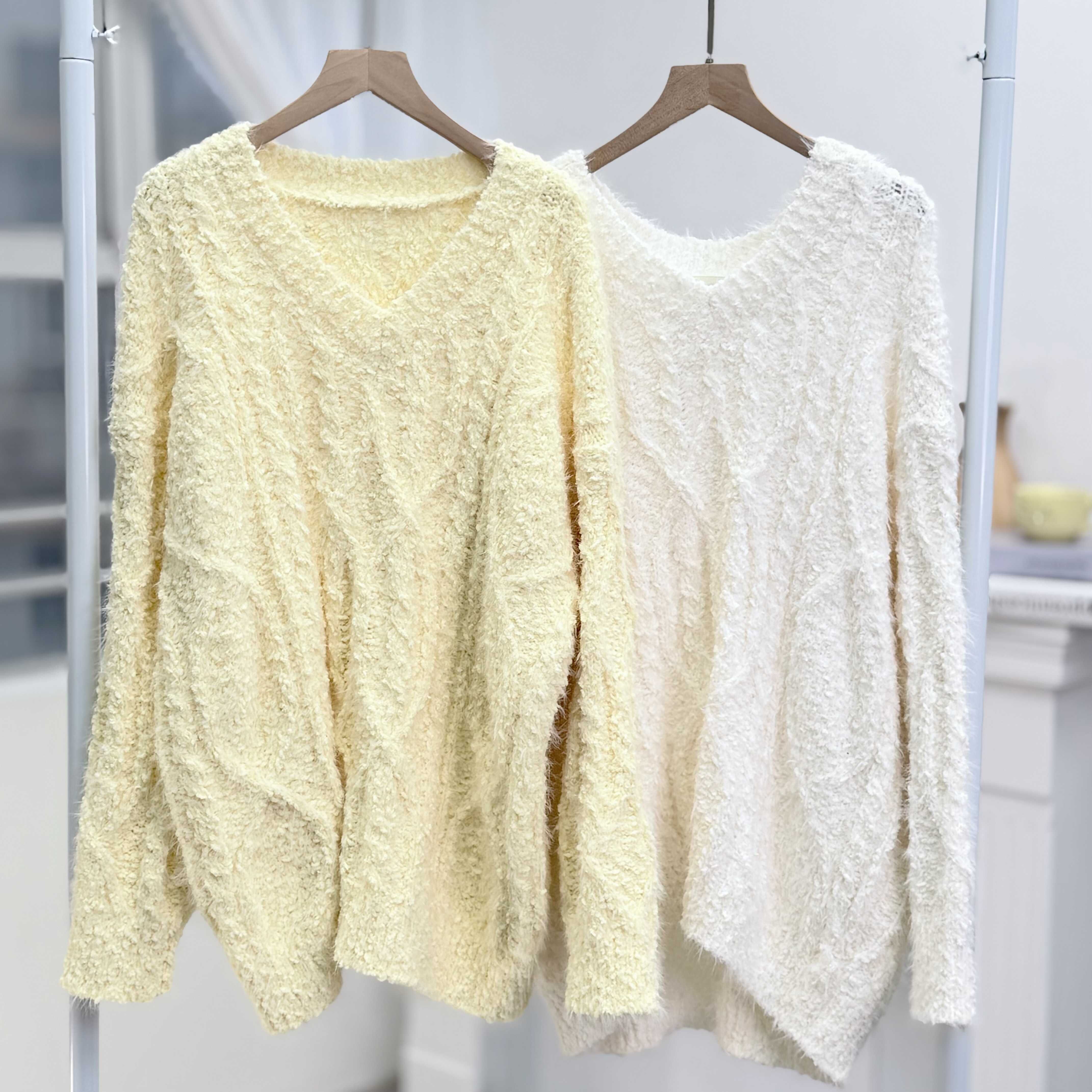 H1023🤎奶油感羽毛紋針織上衣