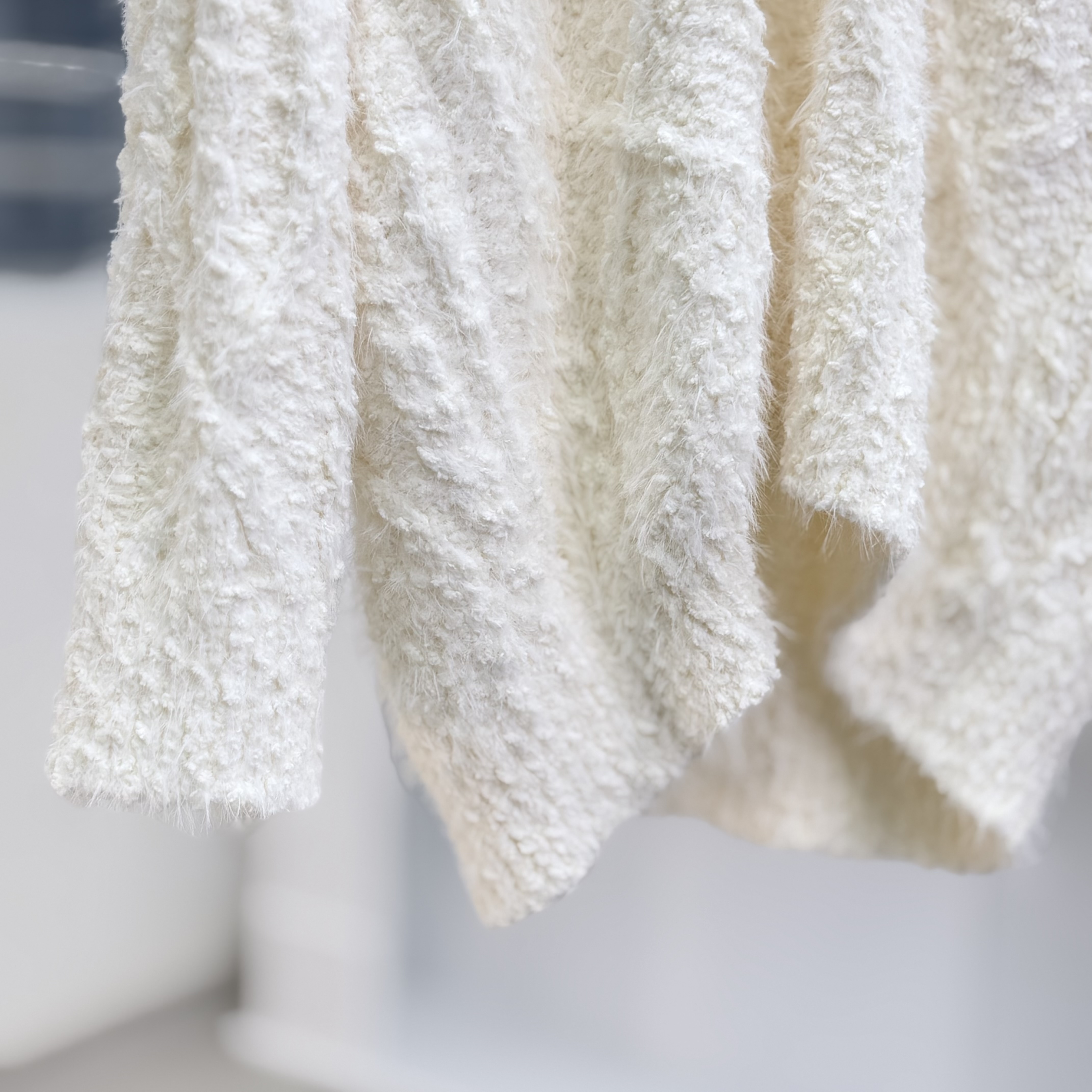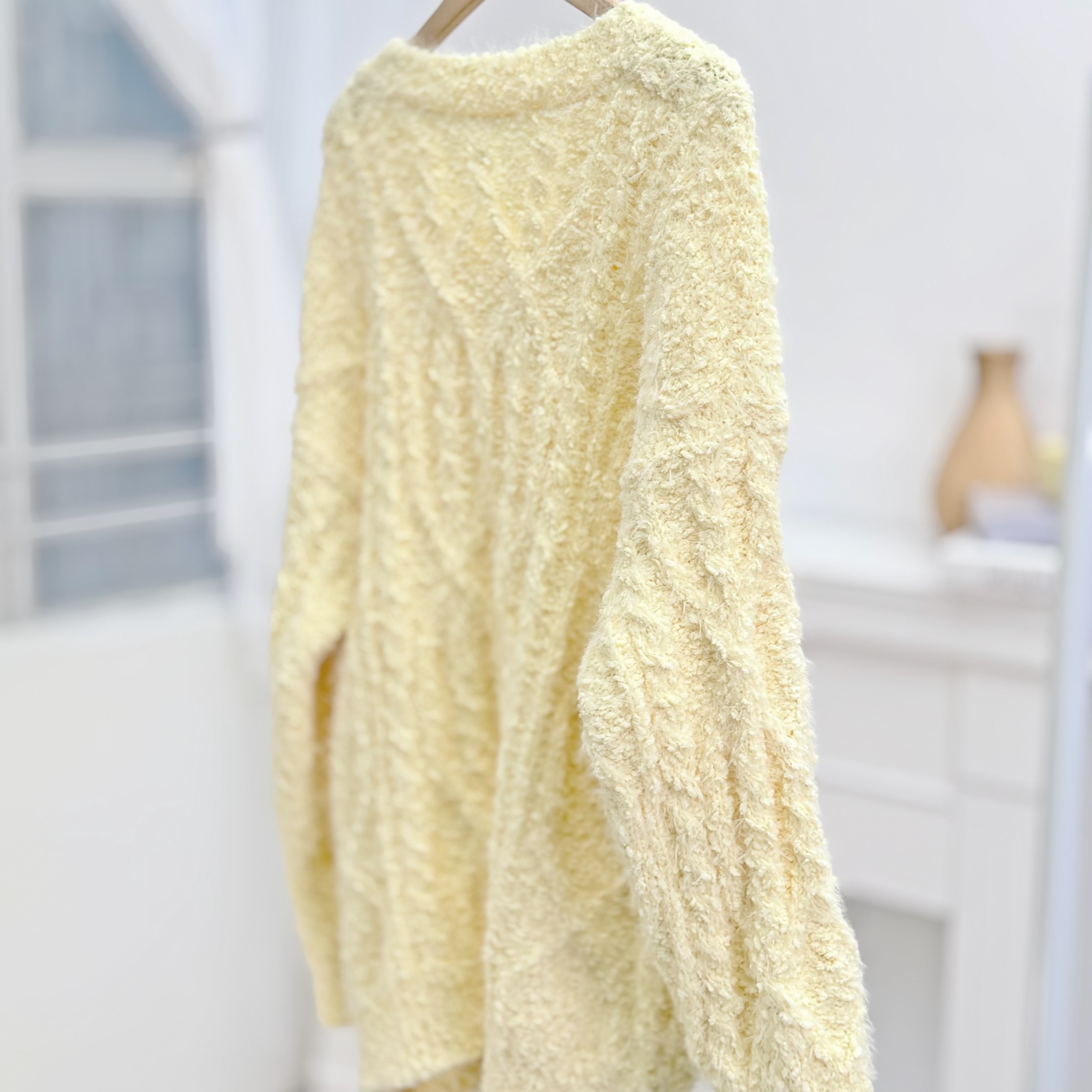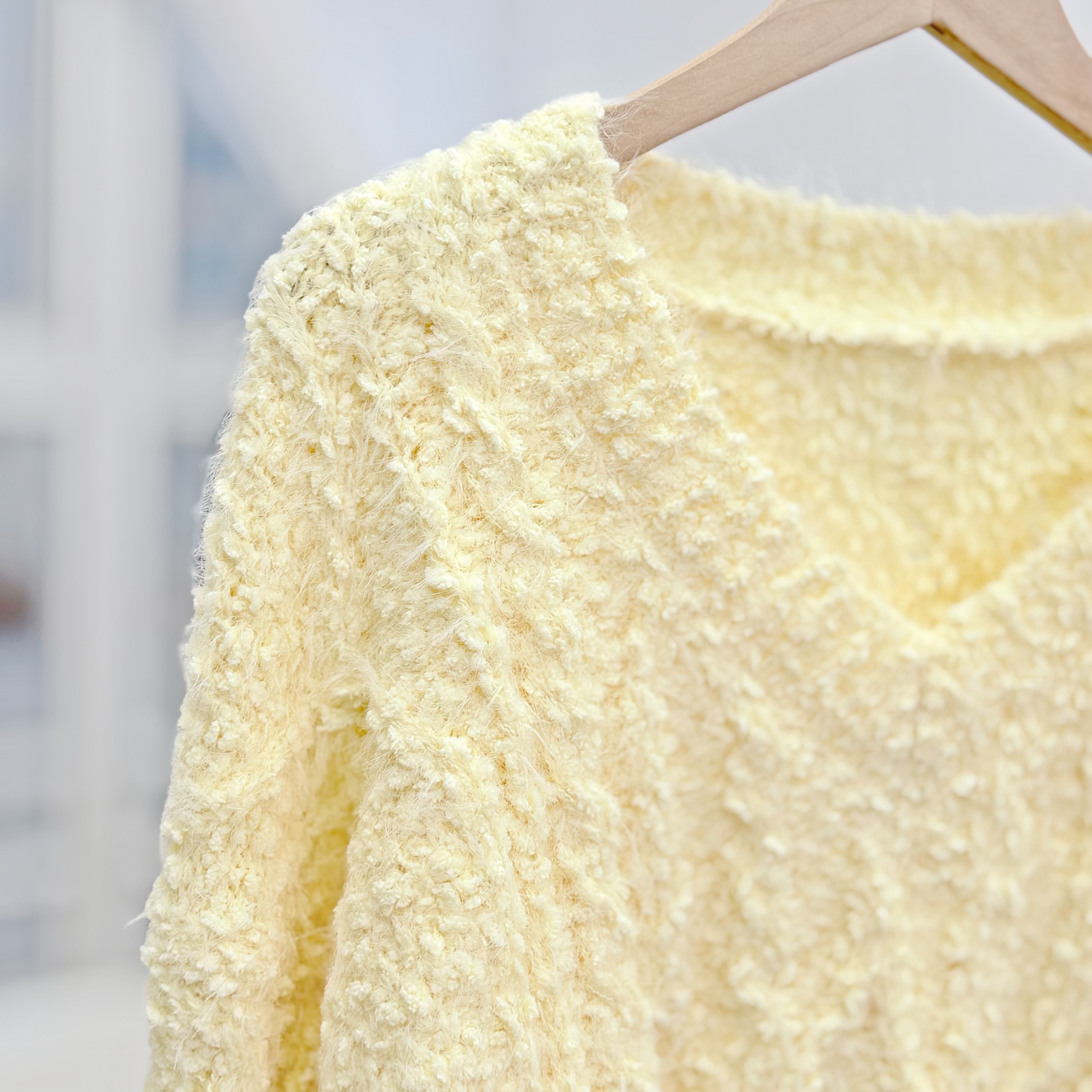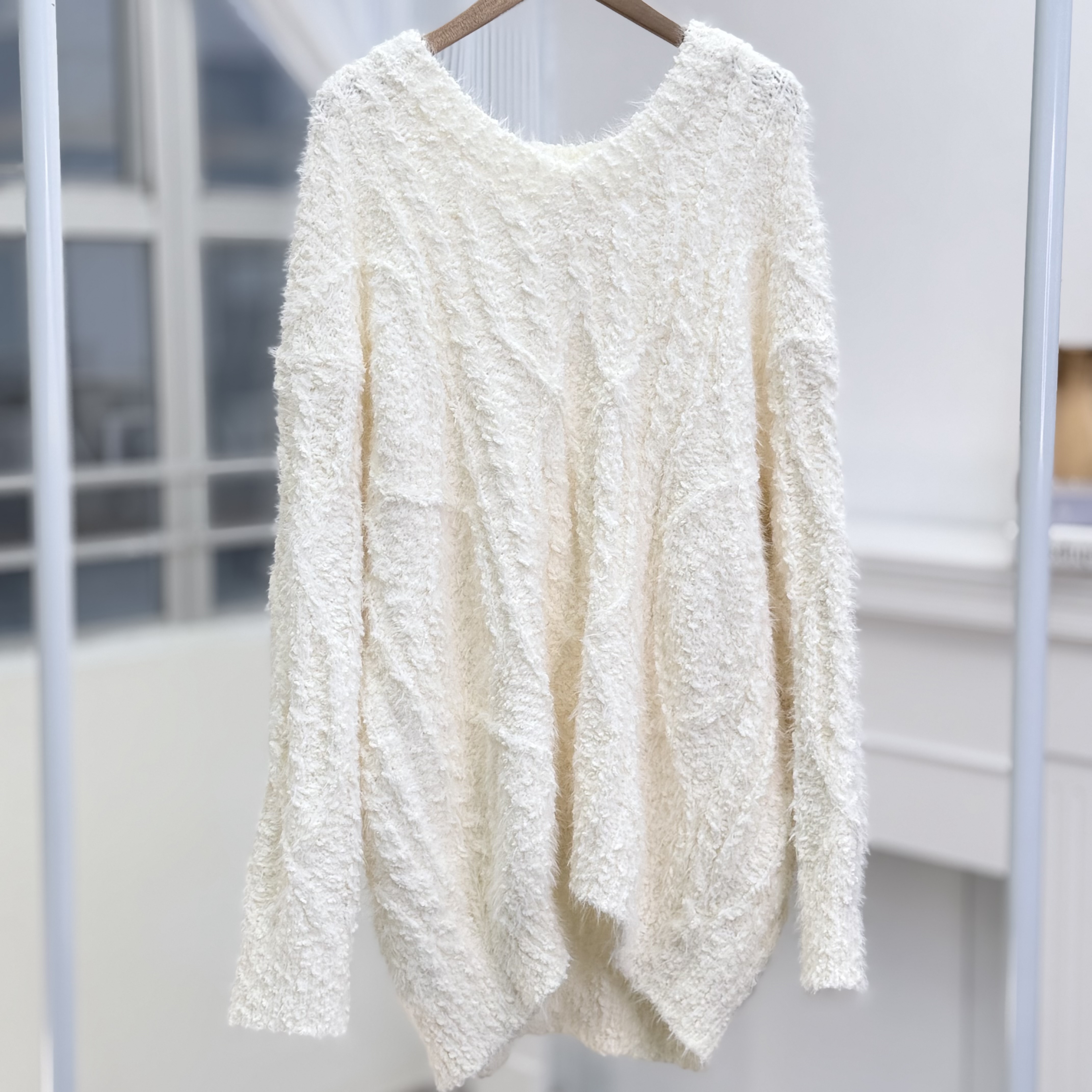 H1023🤎奶油感羽毛紋針織上衣