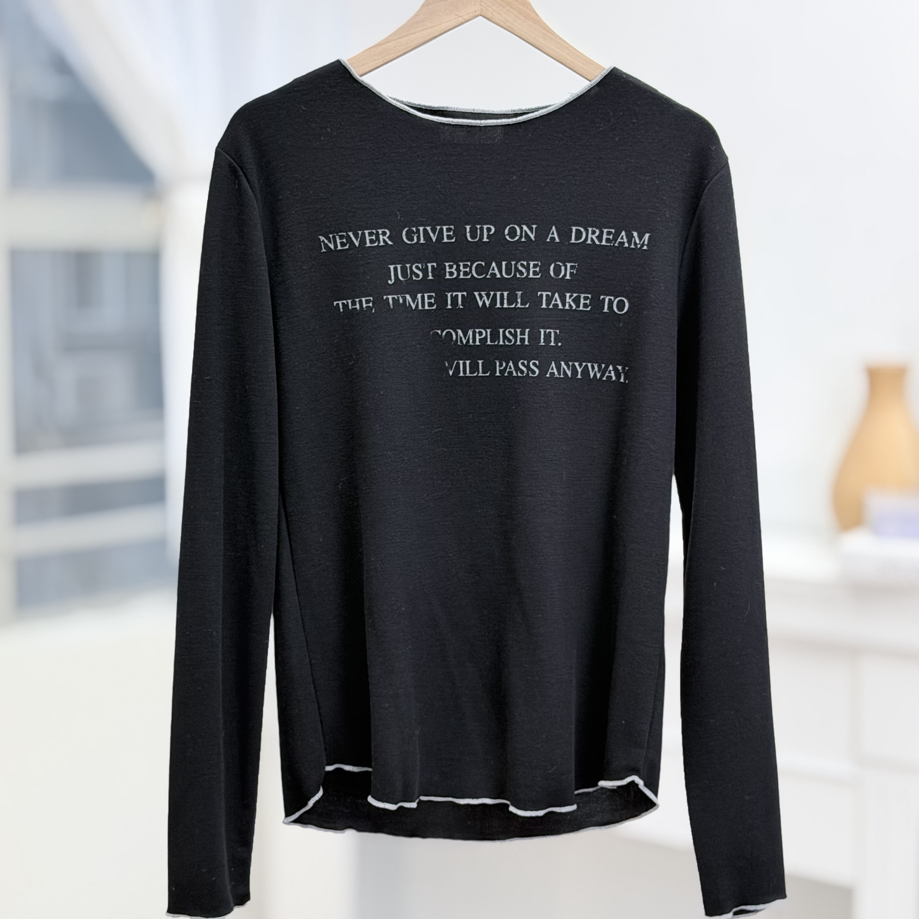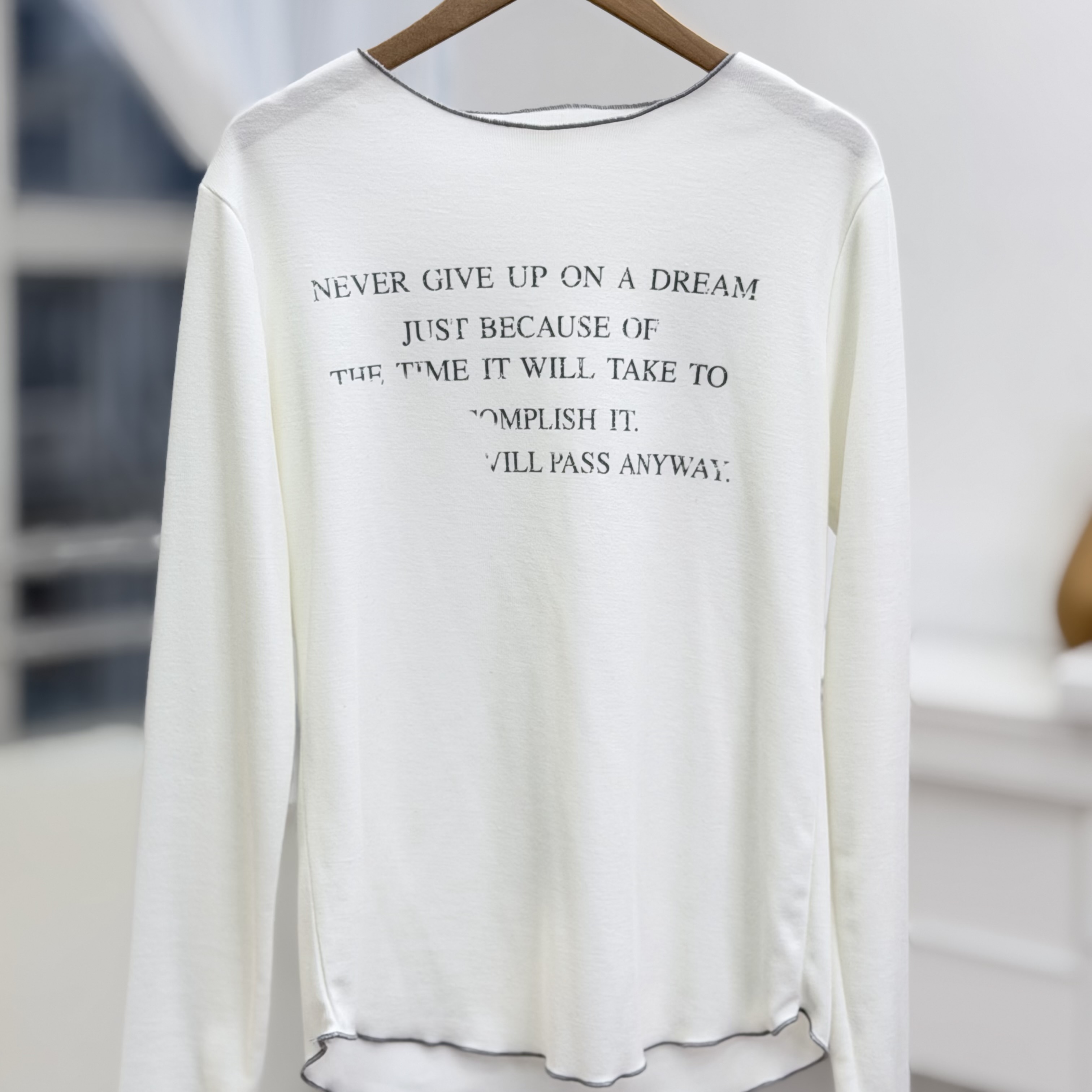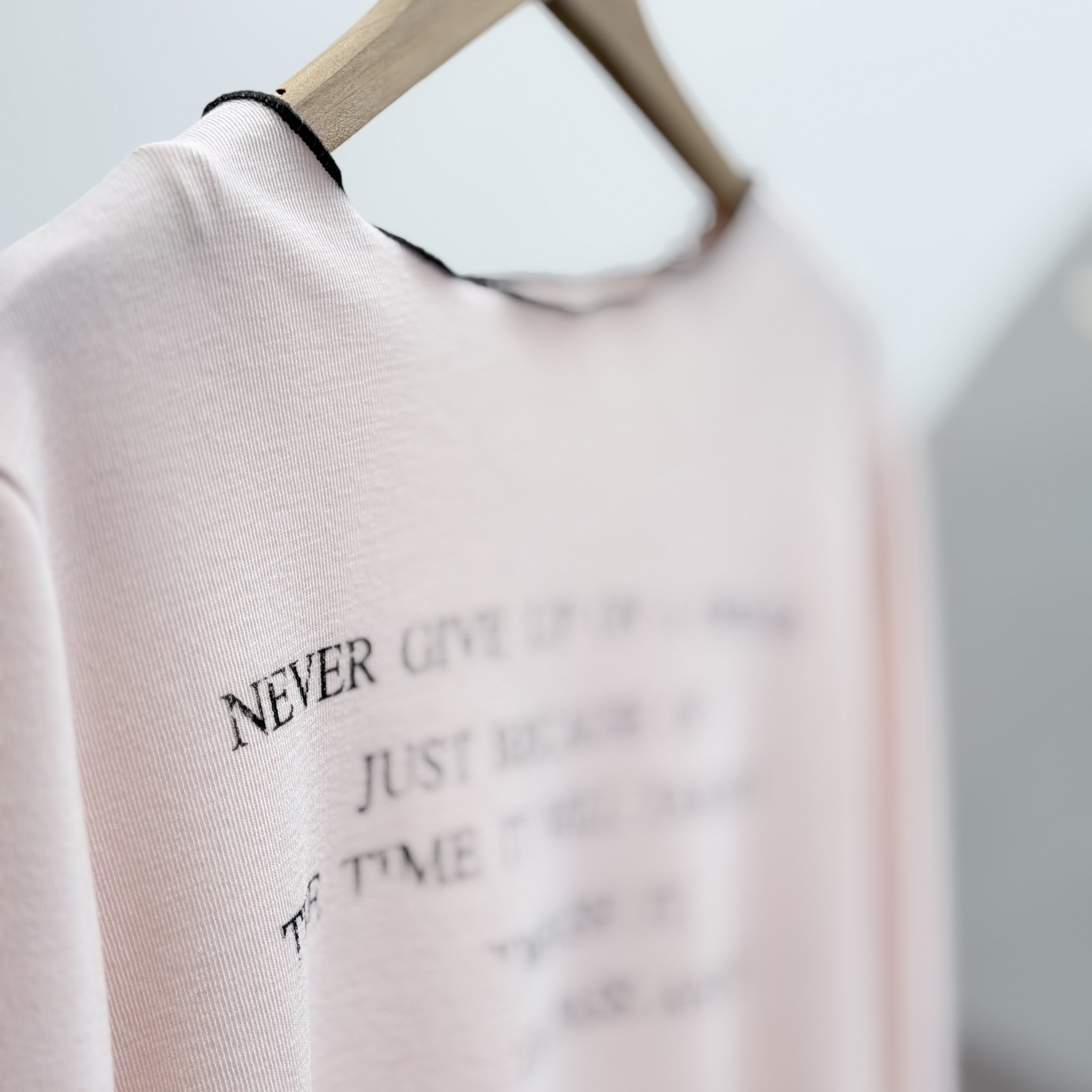 H1024🤎復古標語滾邊長袖Tee
