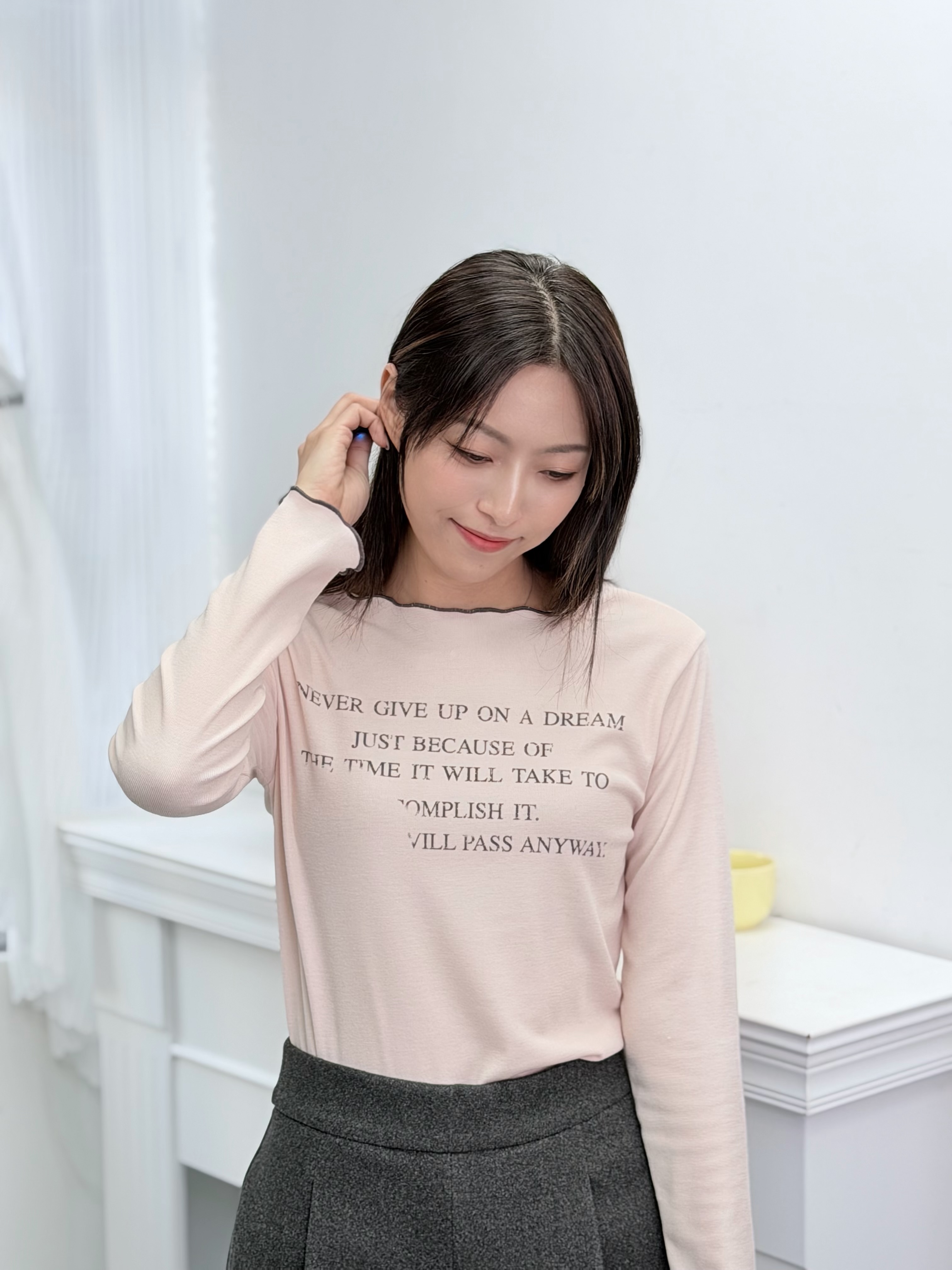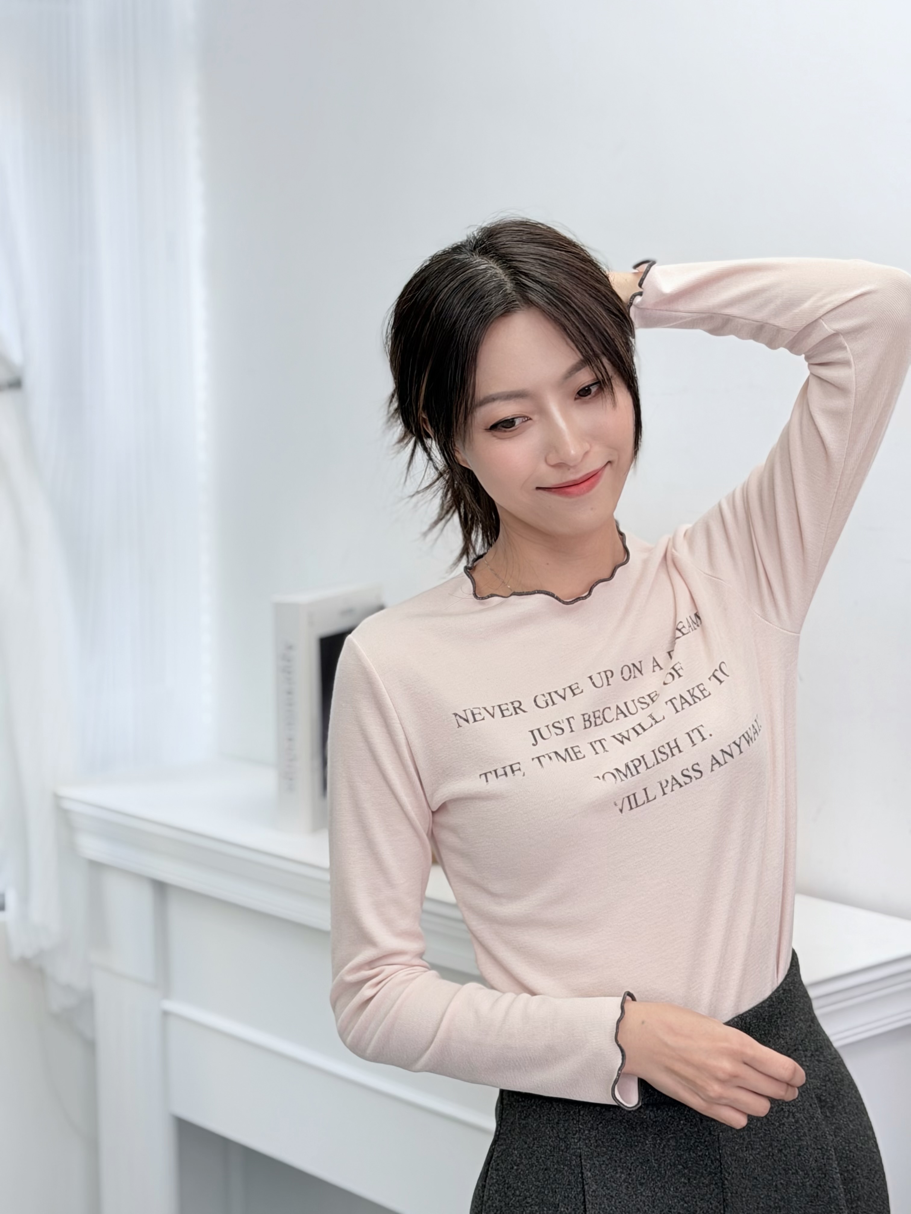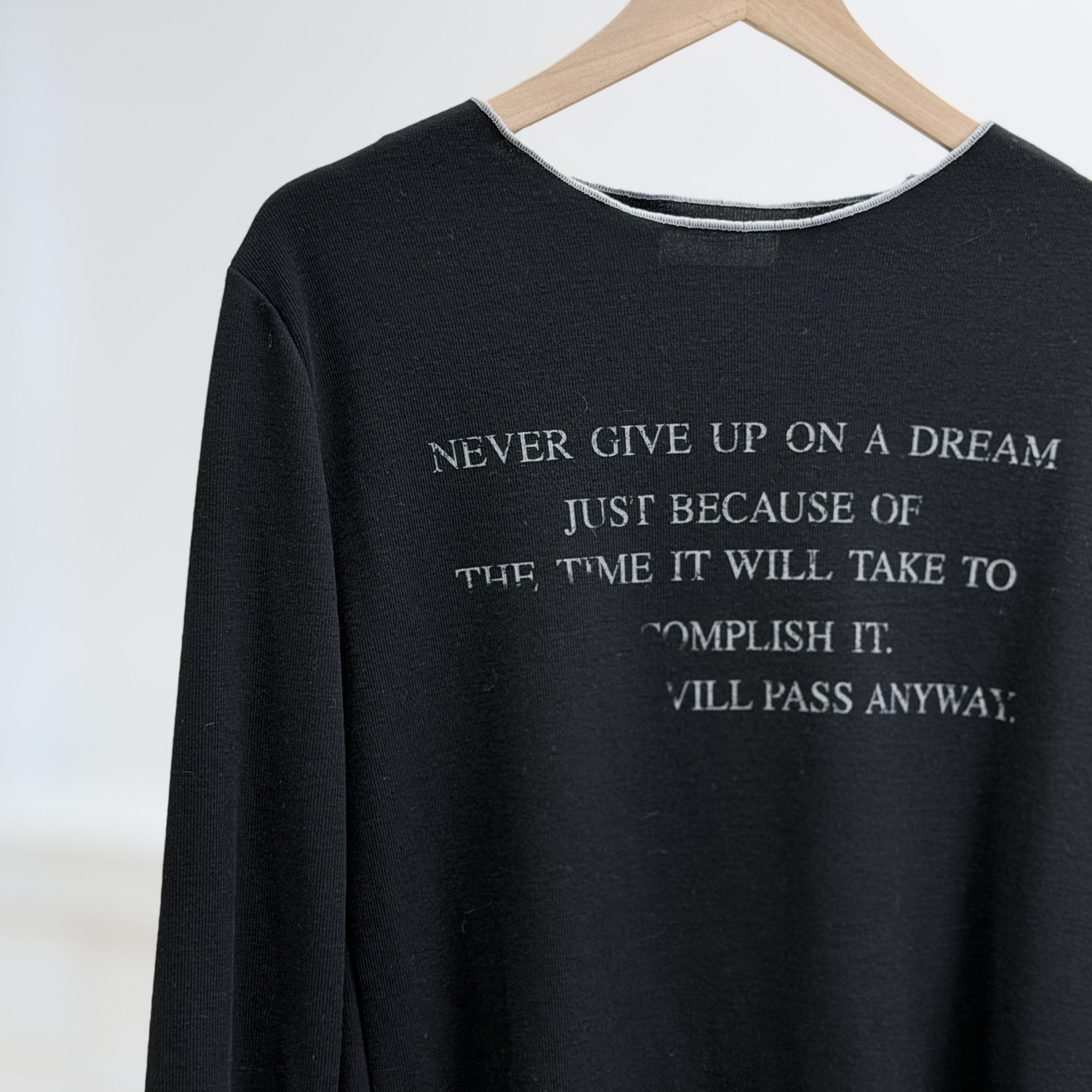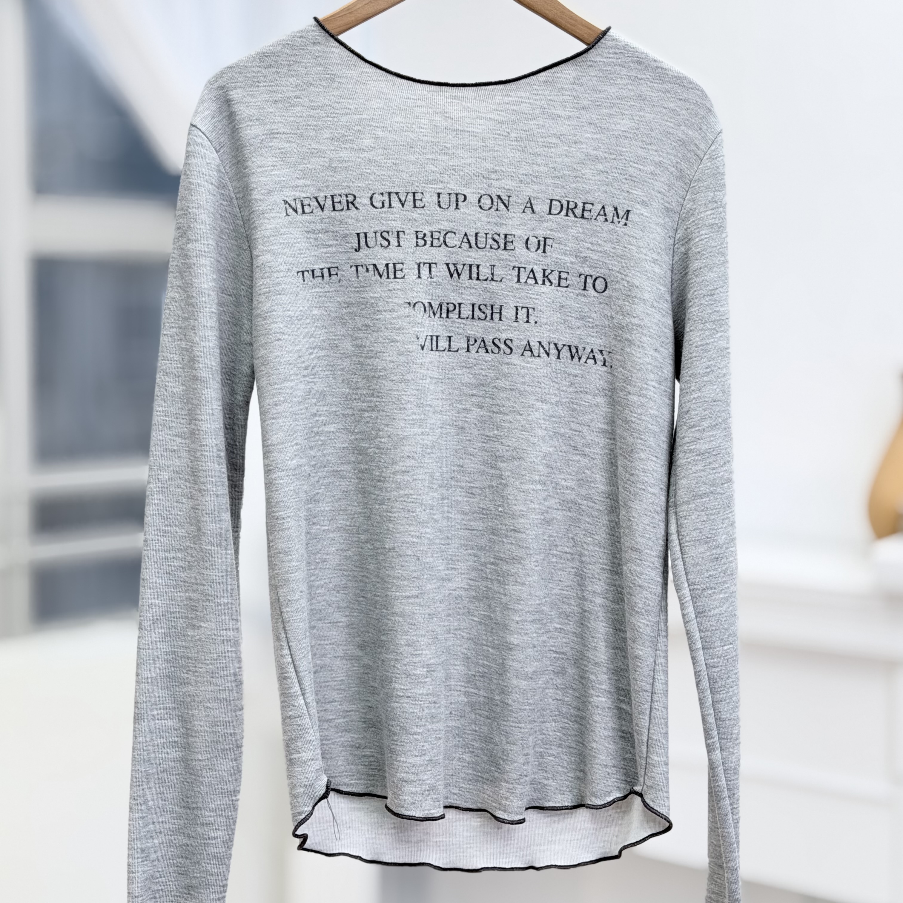 H1024🤎復古標語滾邊長袖Tee