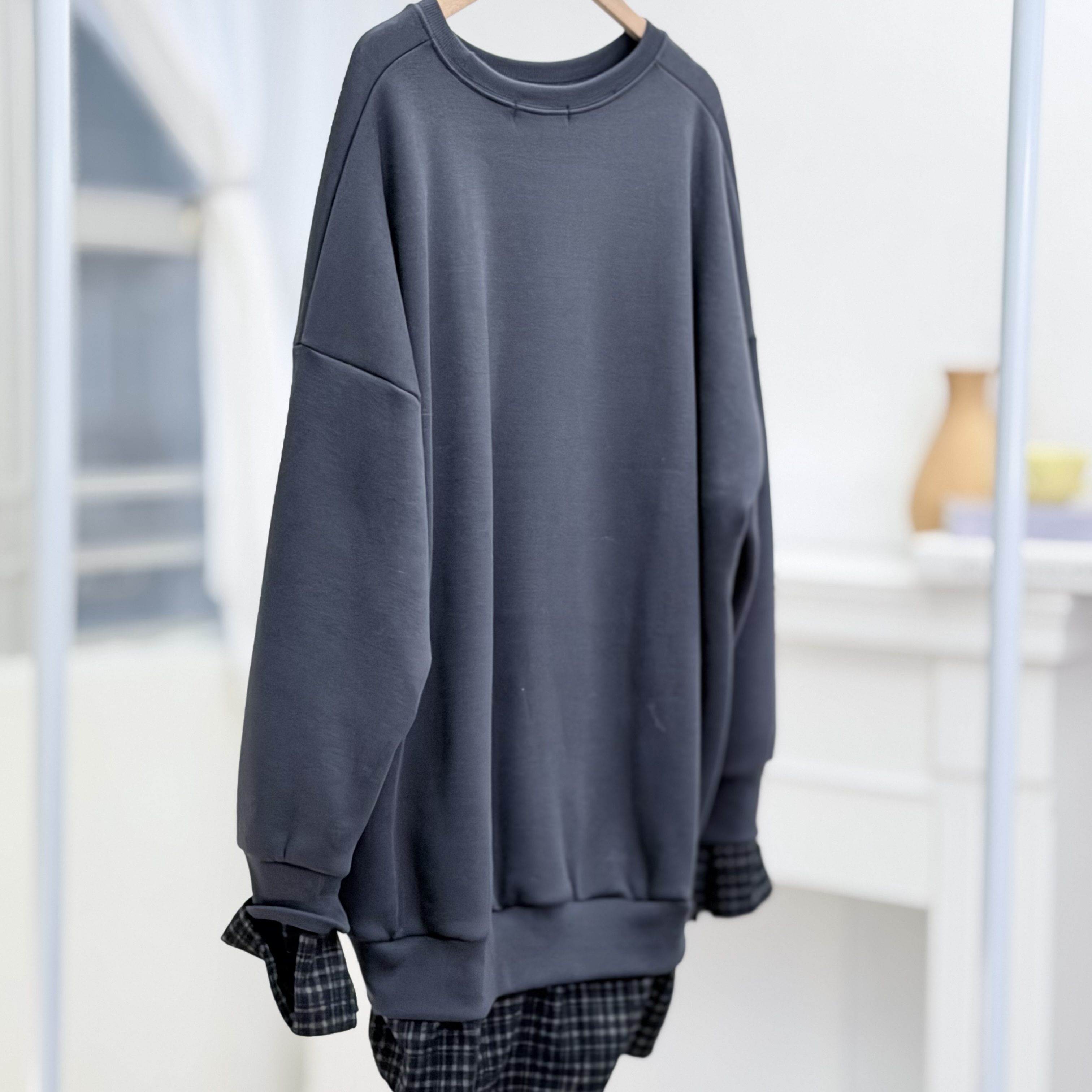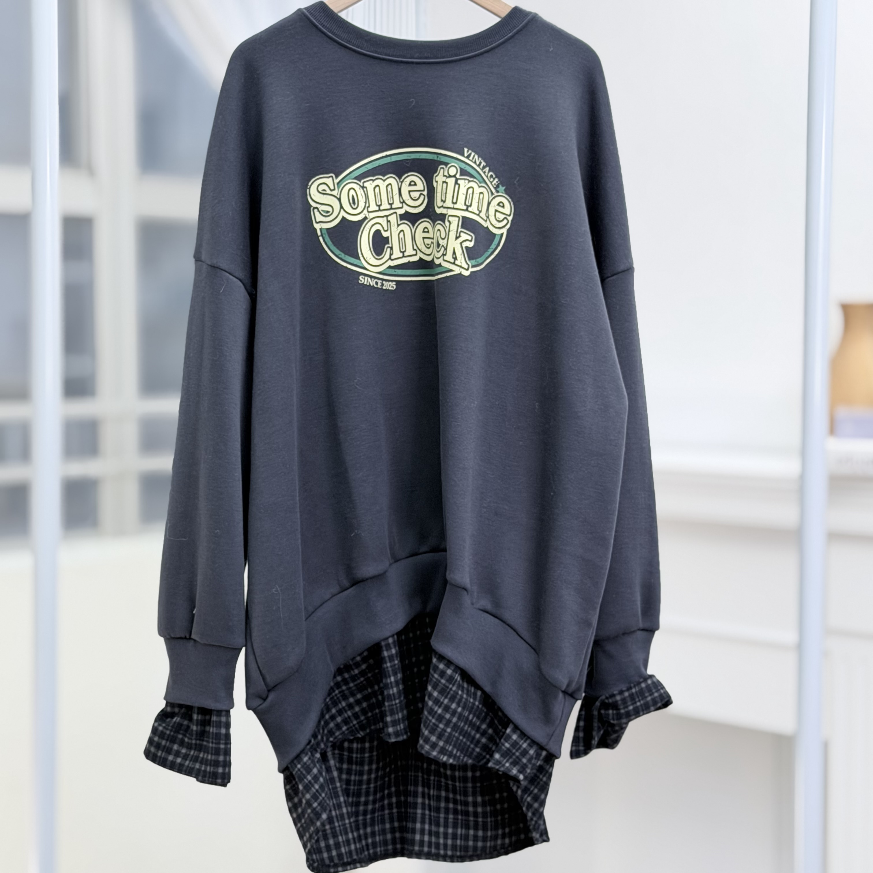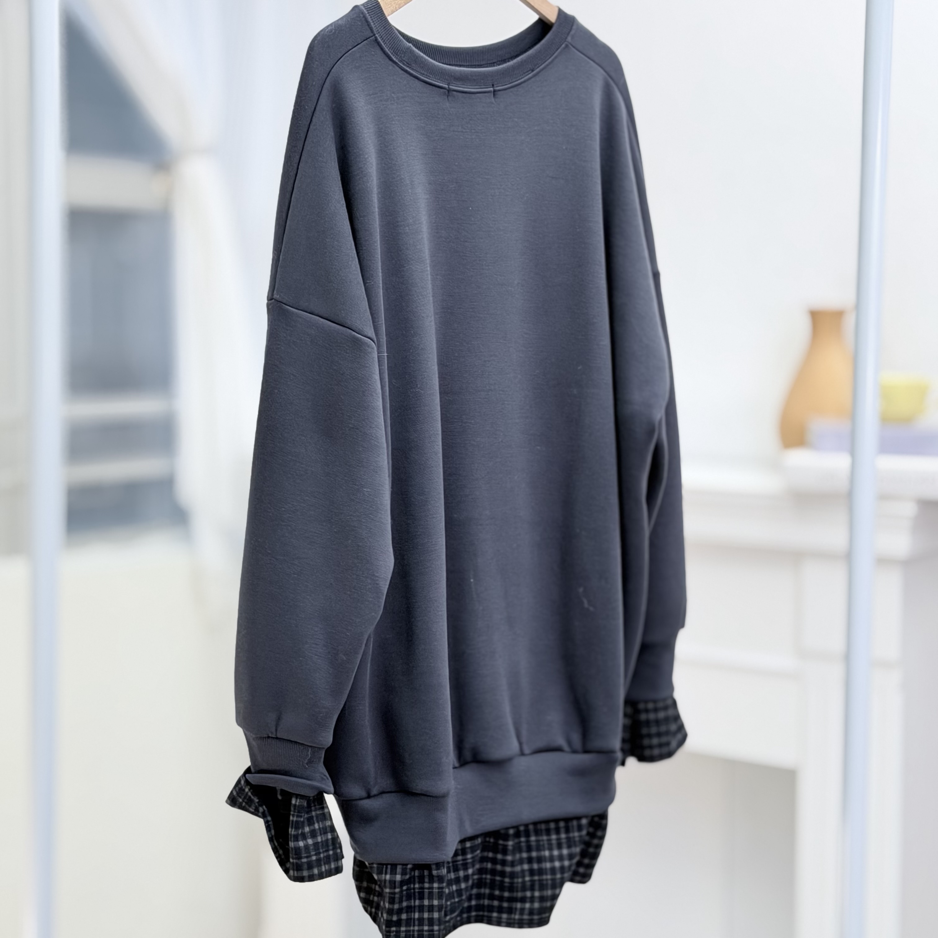 H1027🤎格紋拼接假兩件衛衣