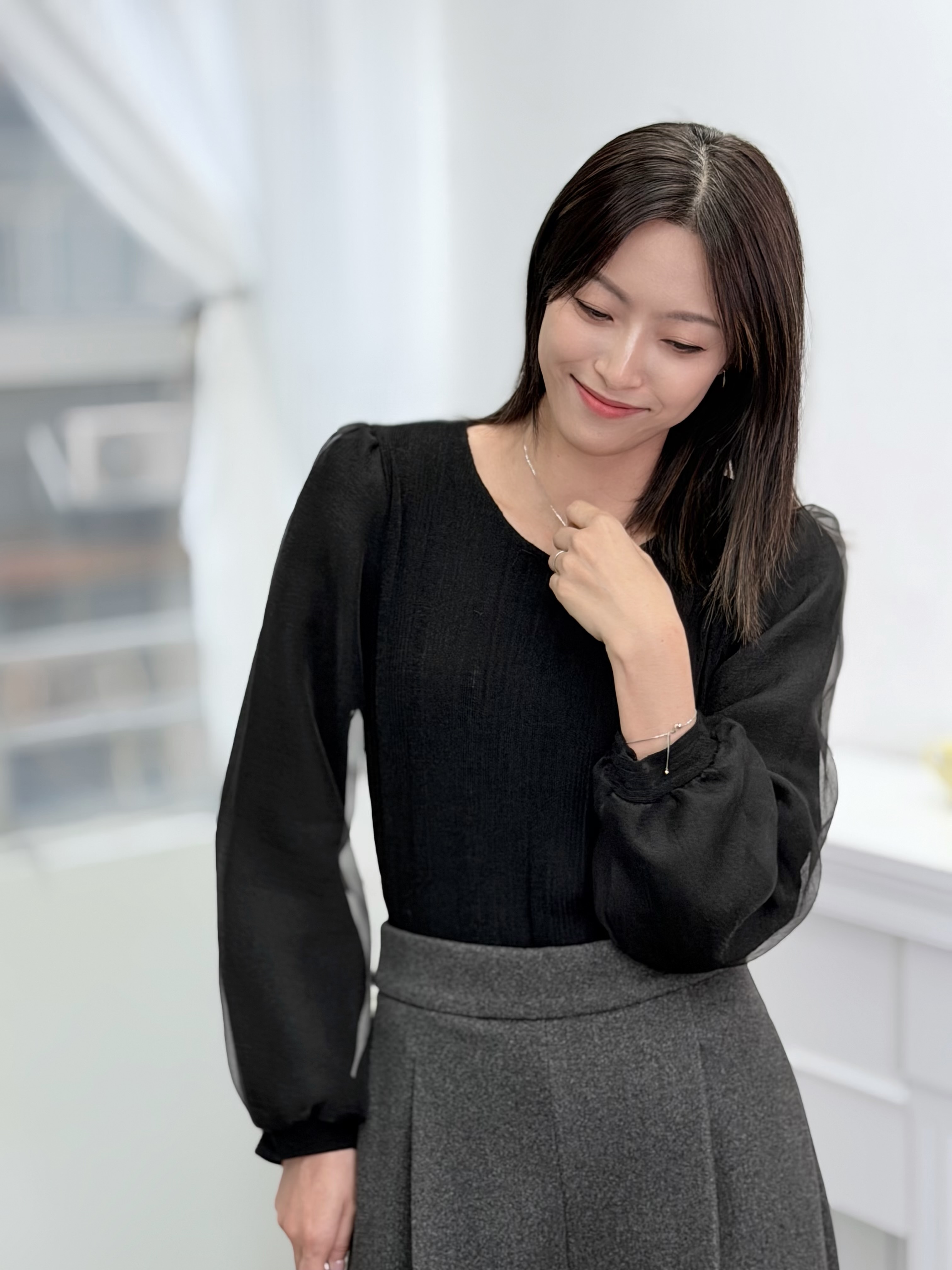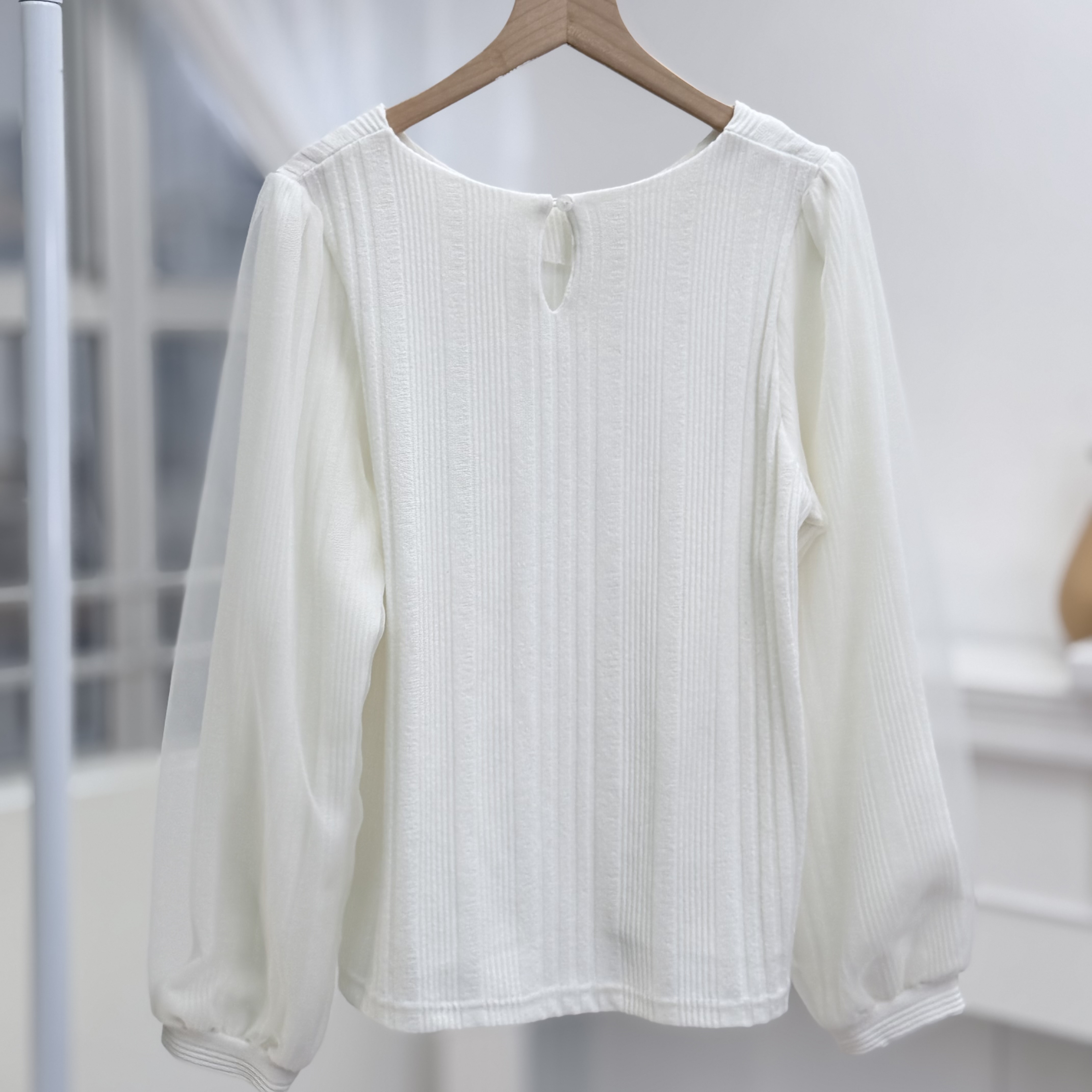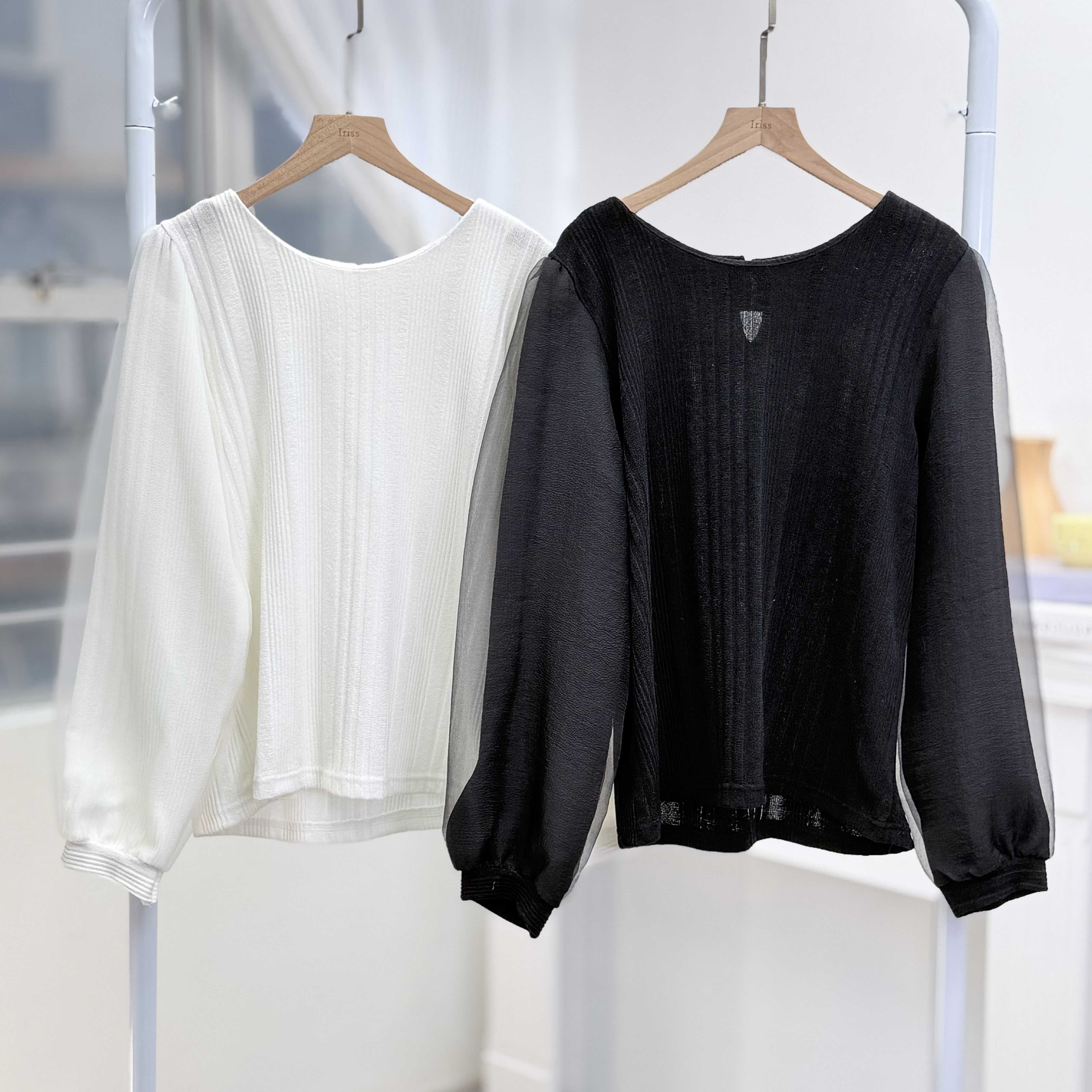 H1030🤎輕盈雪紡泡泡袖上衣