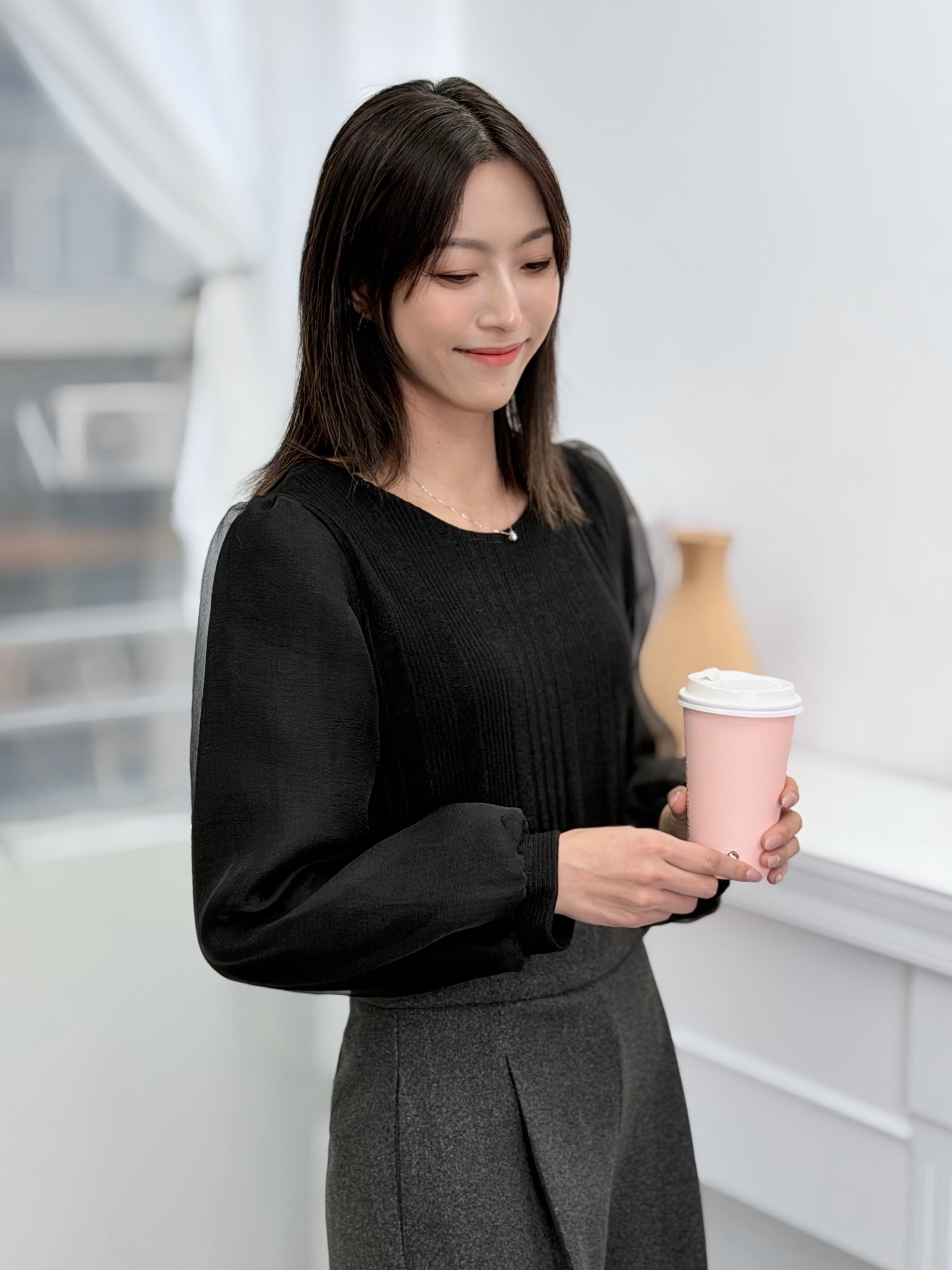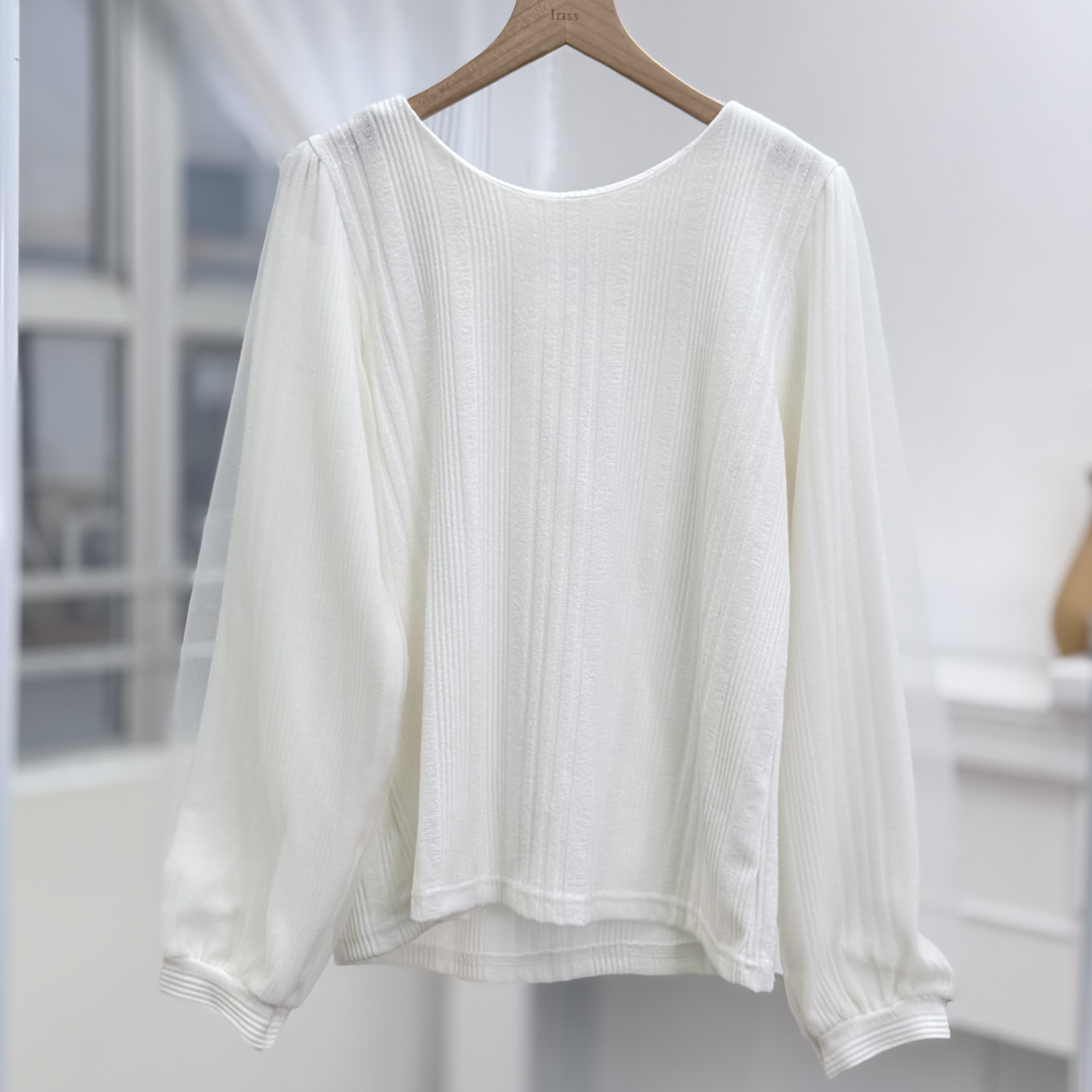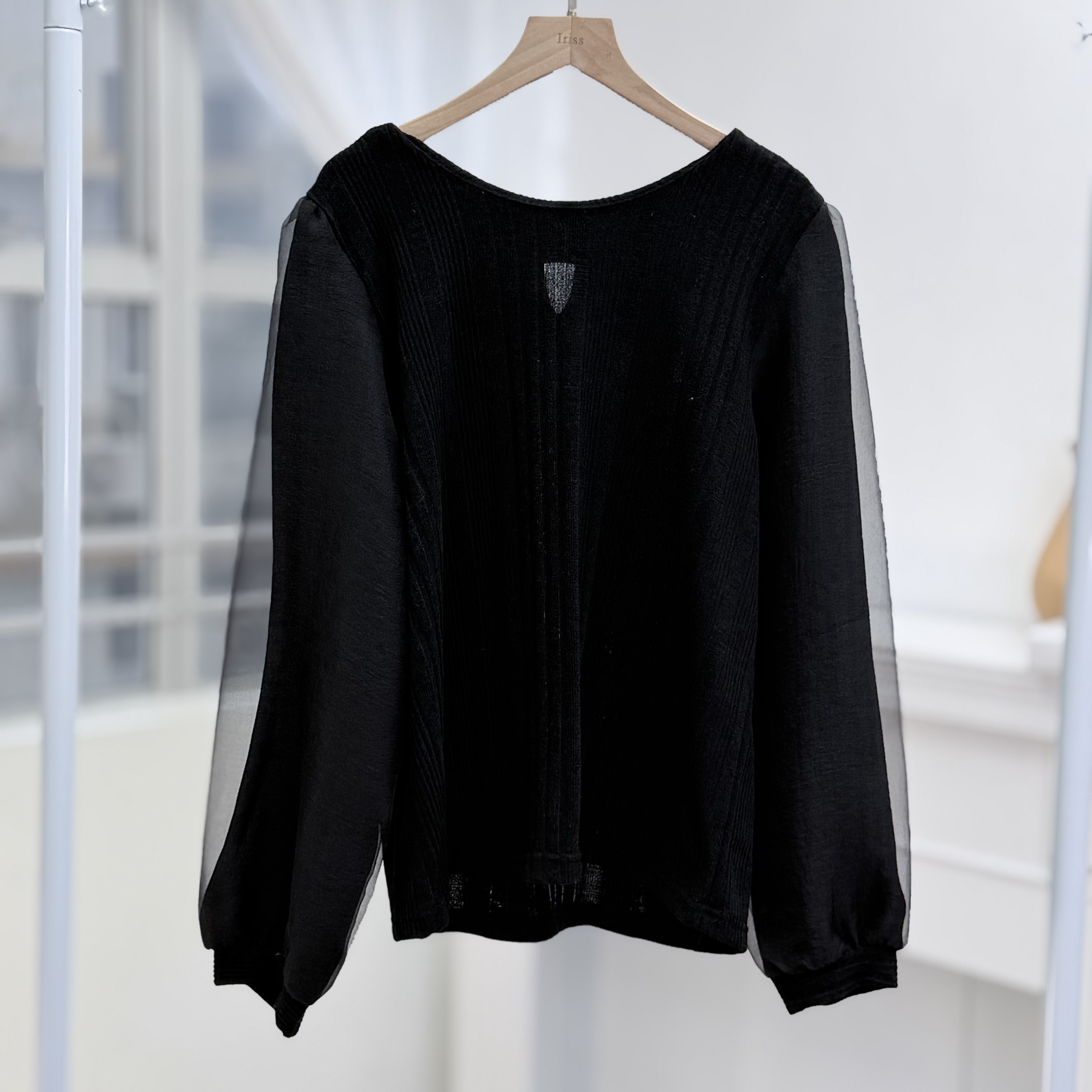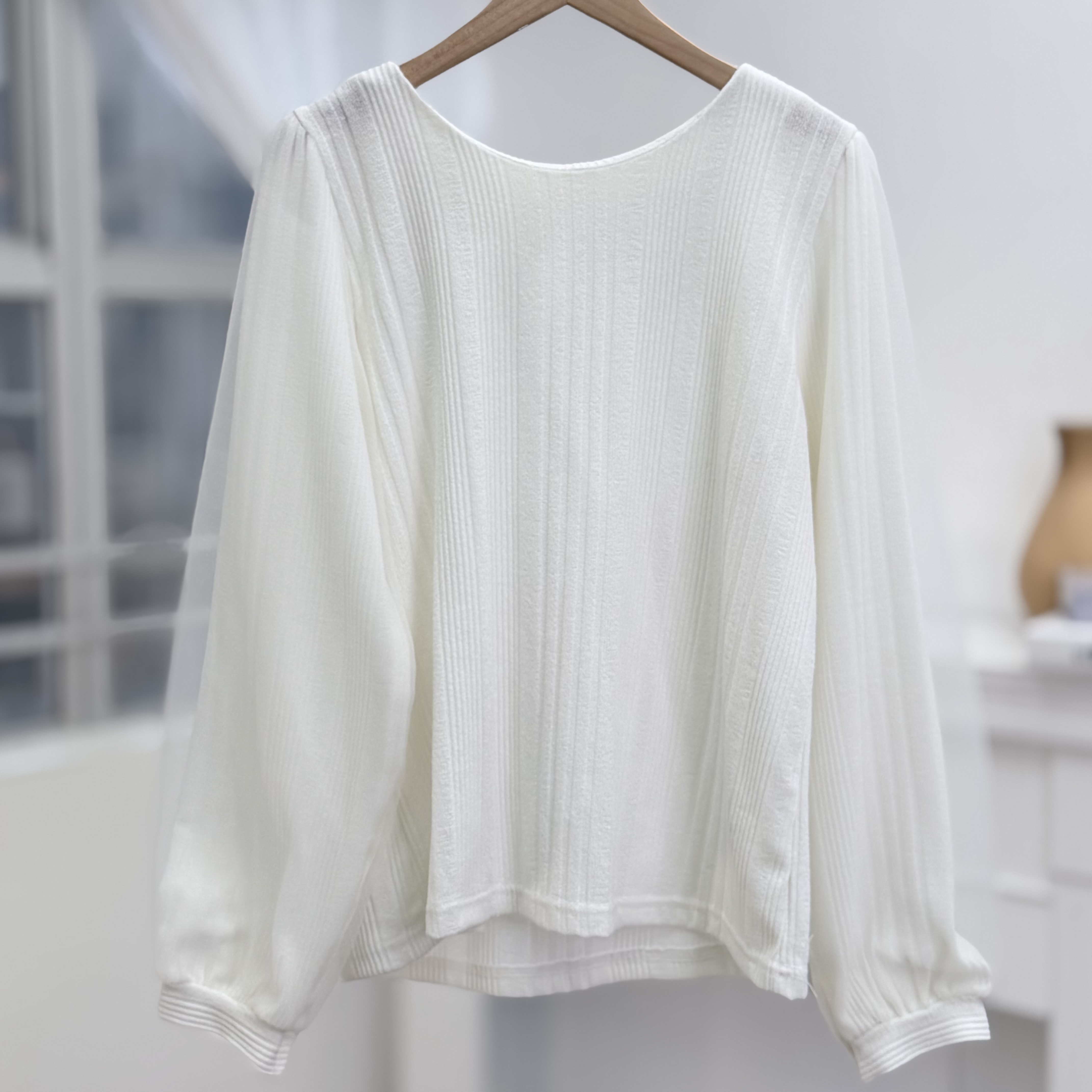 H1030🤎輕盈雪紡泡泡袖上衣