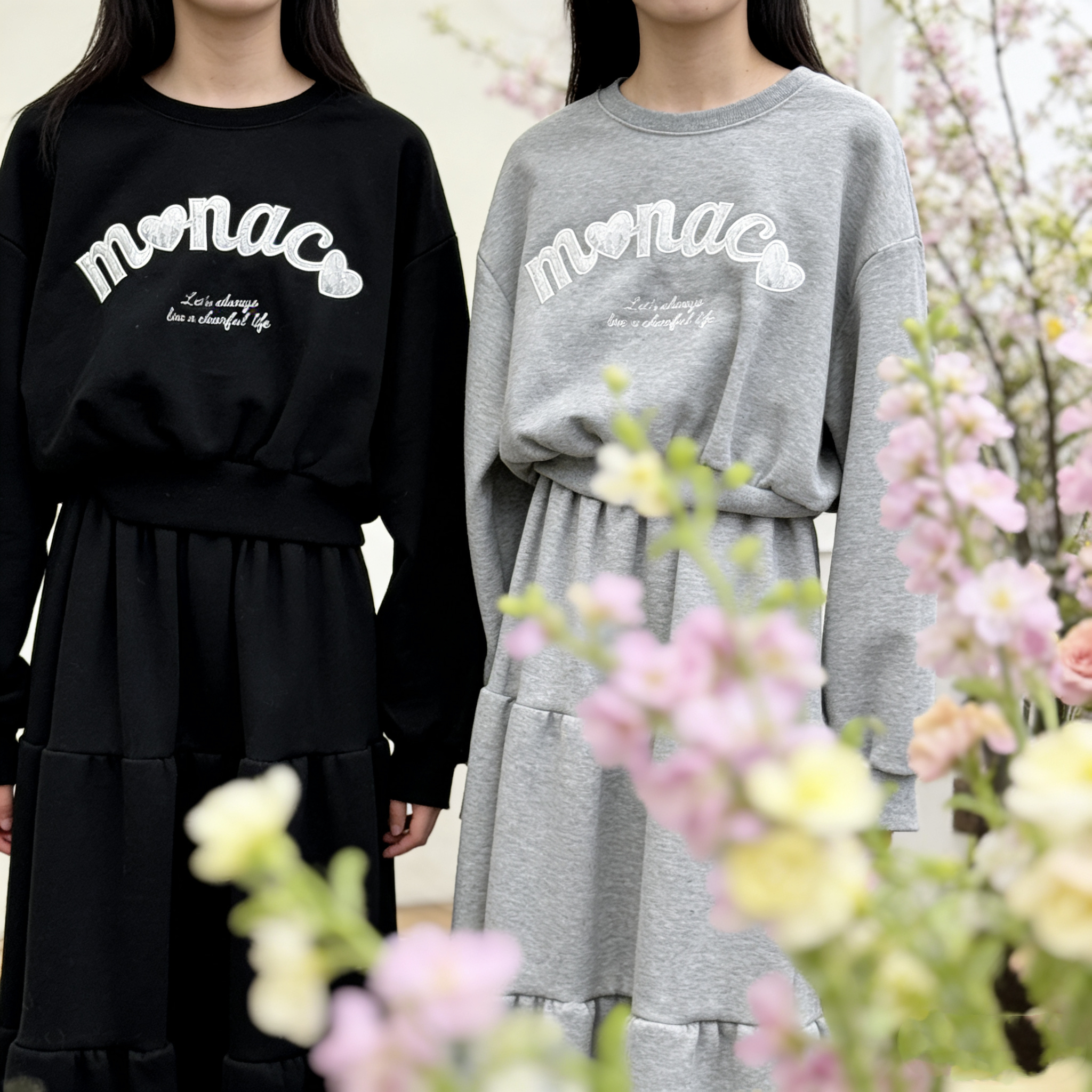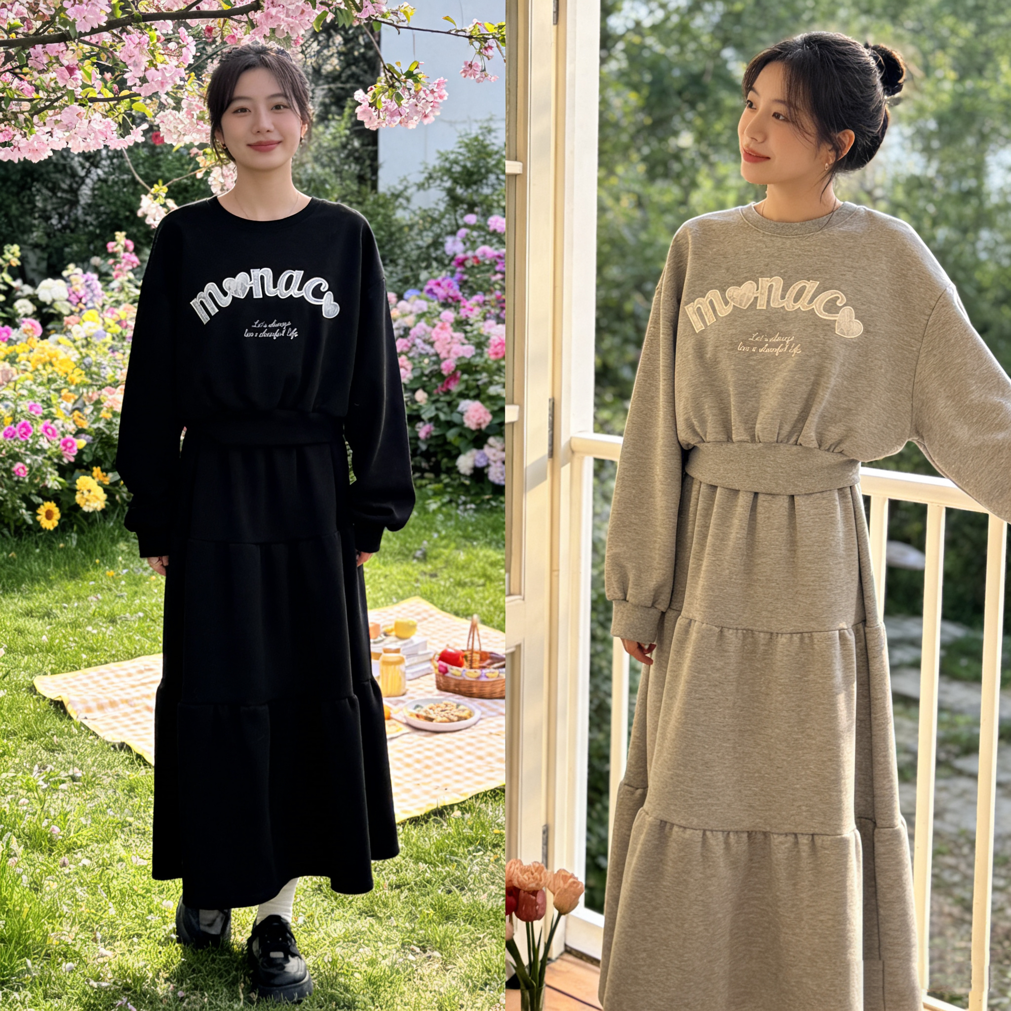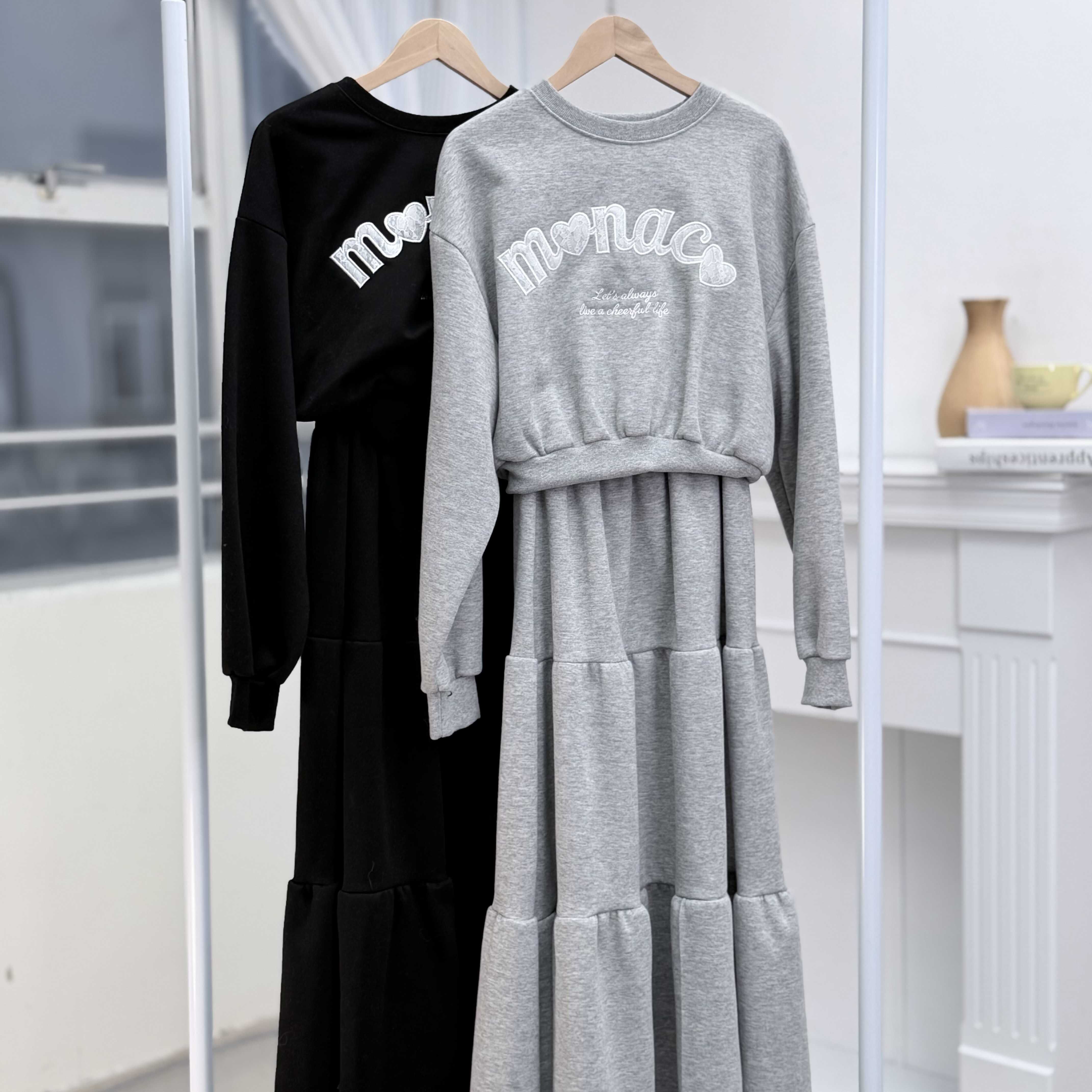 H1034🤎 韓系休閑印花衛衣套裝