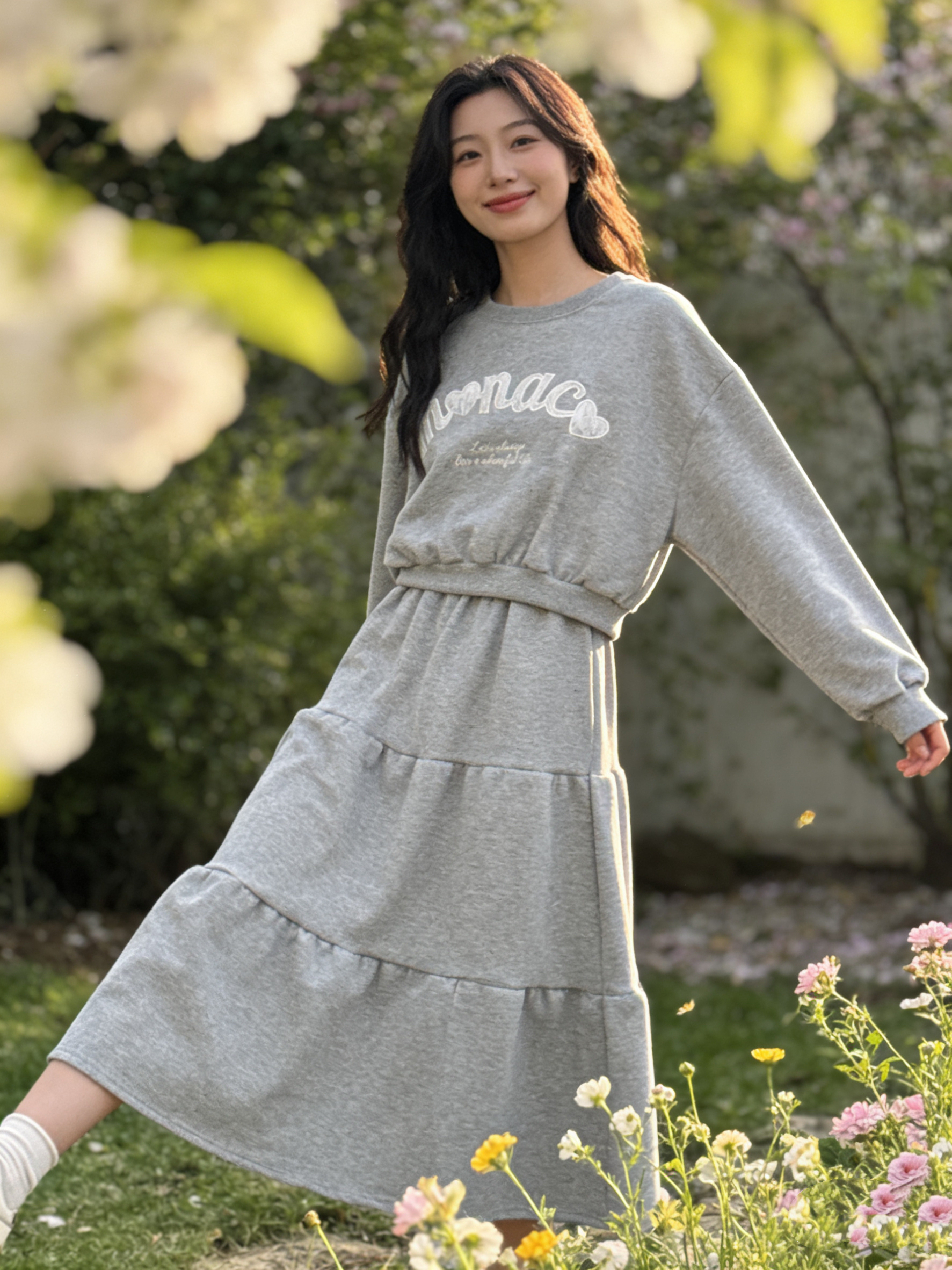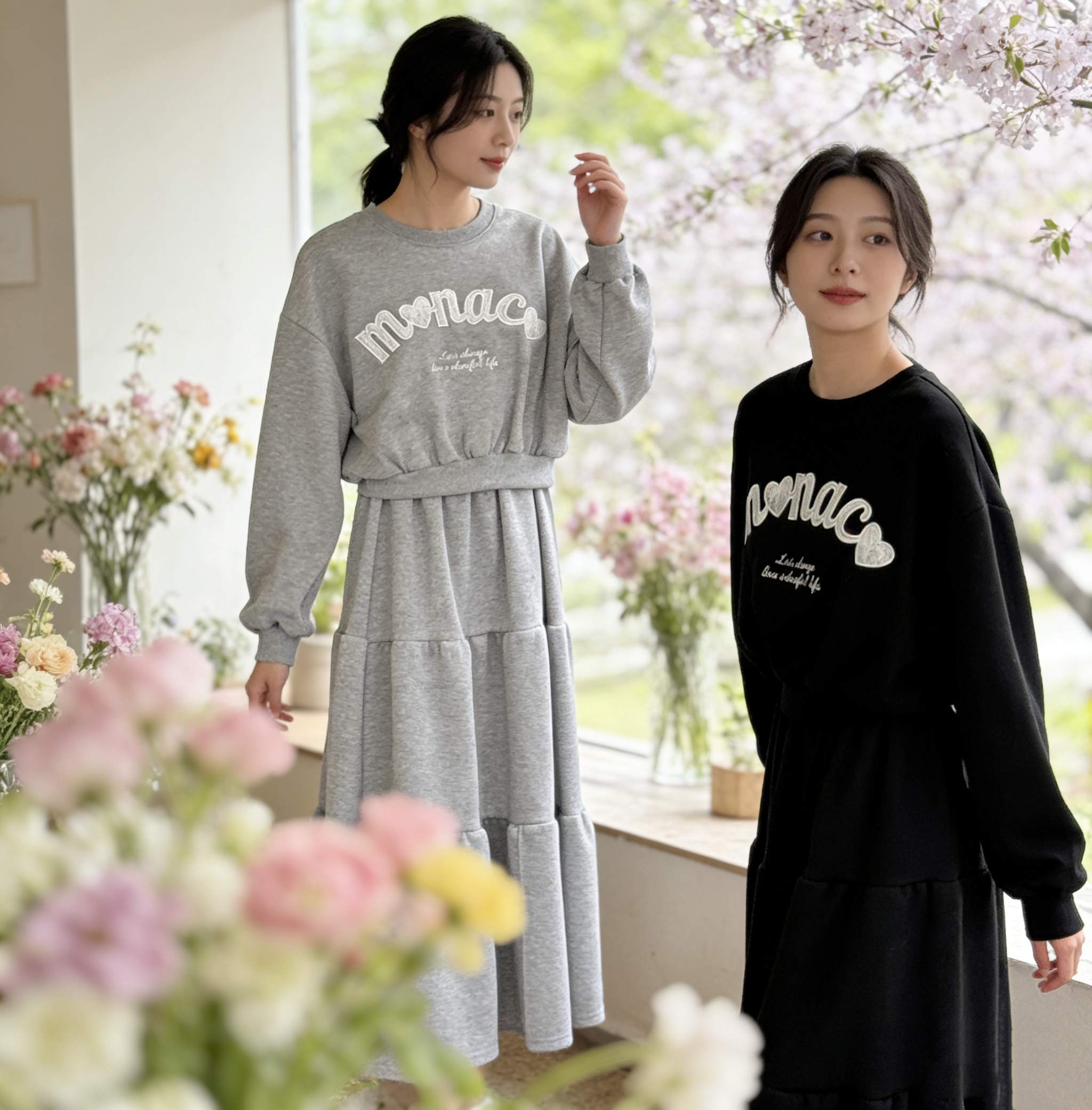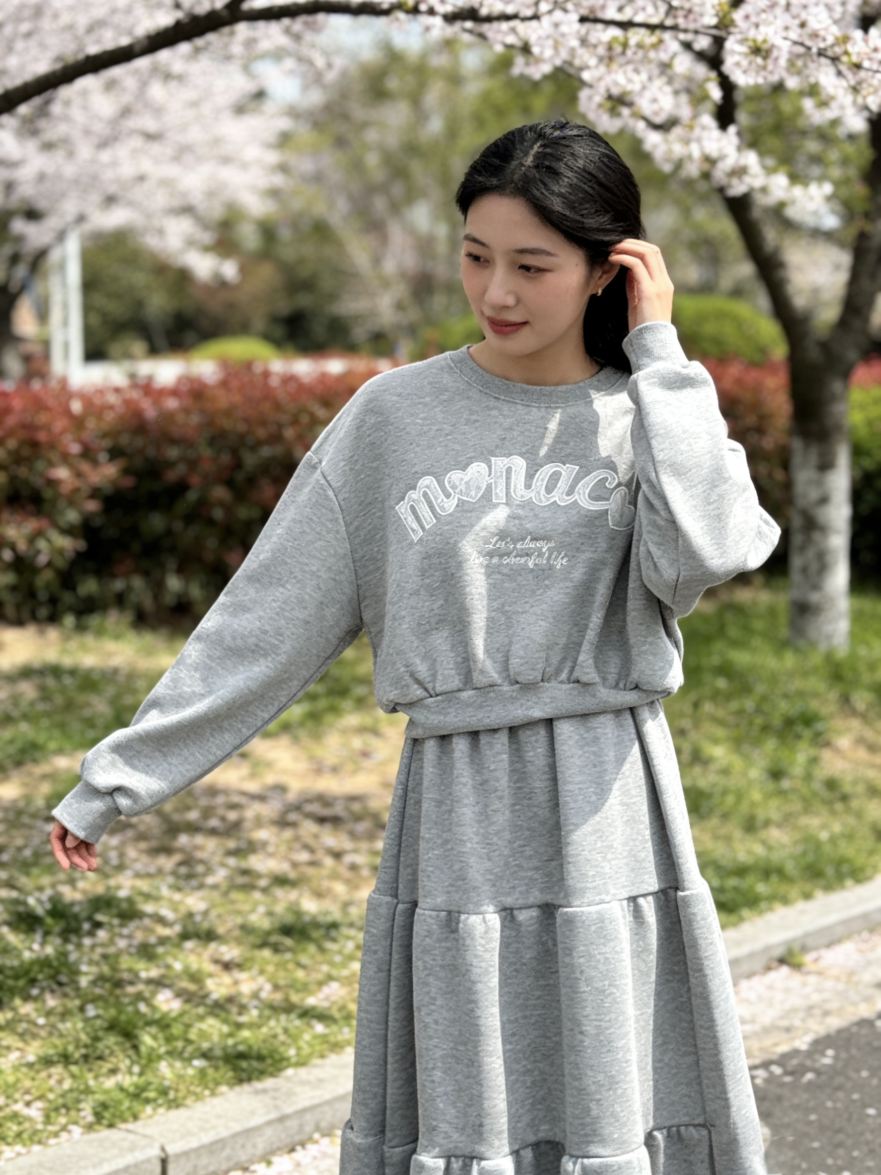 H1034🤎 韓系休閑印花衛衣套裝
