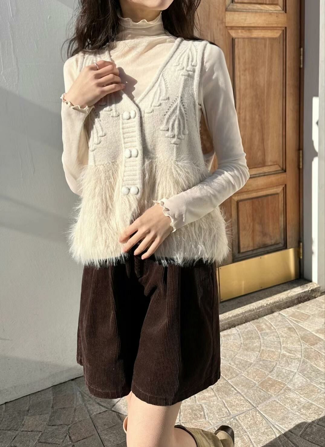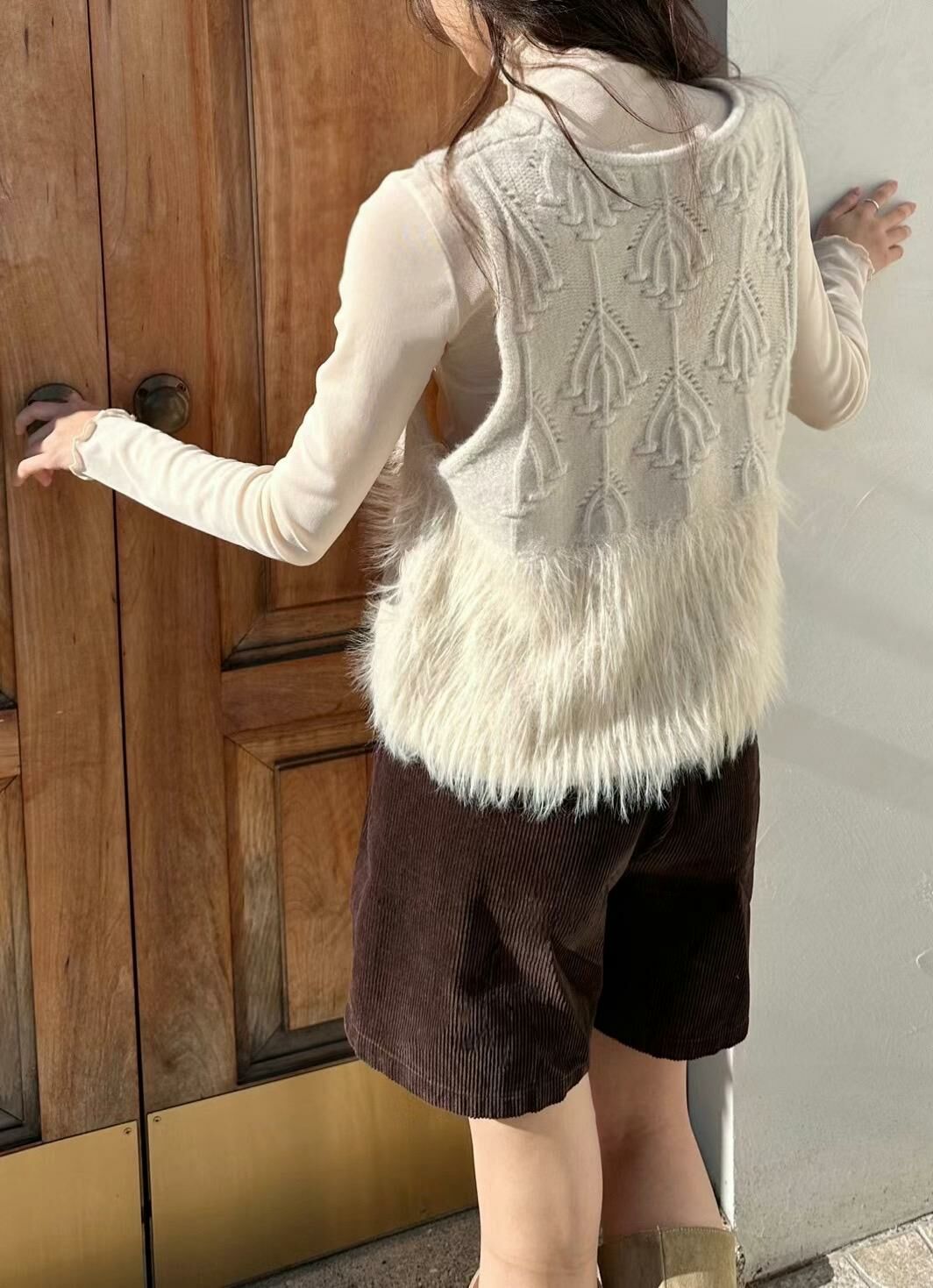 JK#14218🤎擺擺長毛毛背心