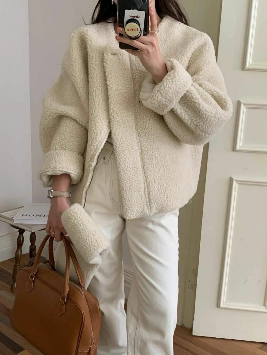 😌輕身嘅羊咩咩面料比起成件毛毛雖然同樣冬日但多左個性隨意感少了輕奢問題