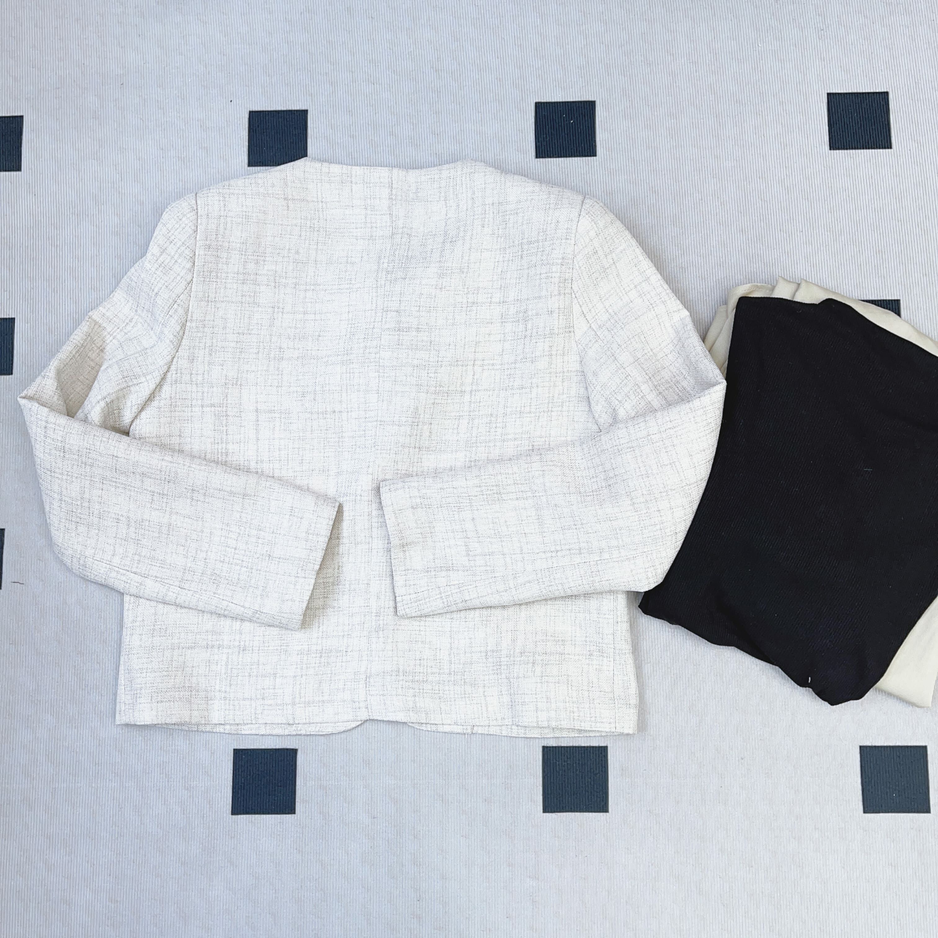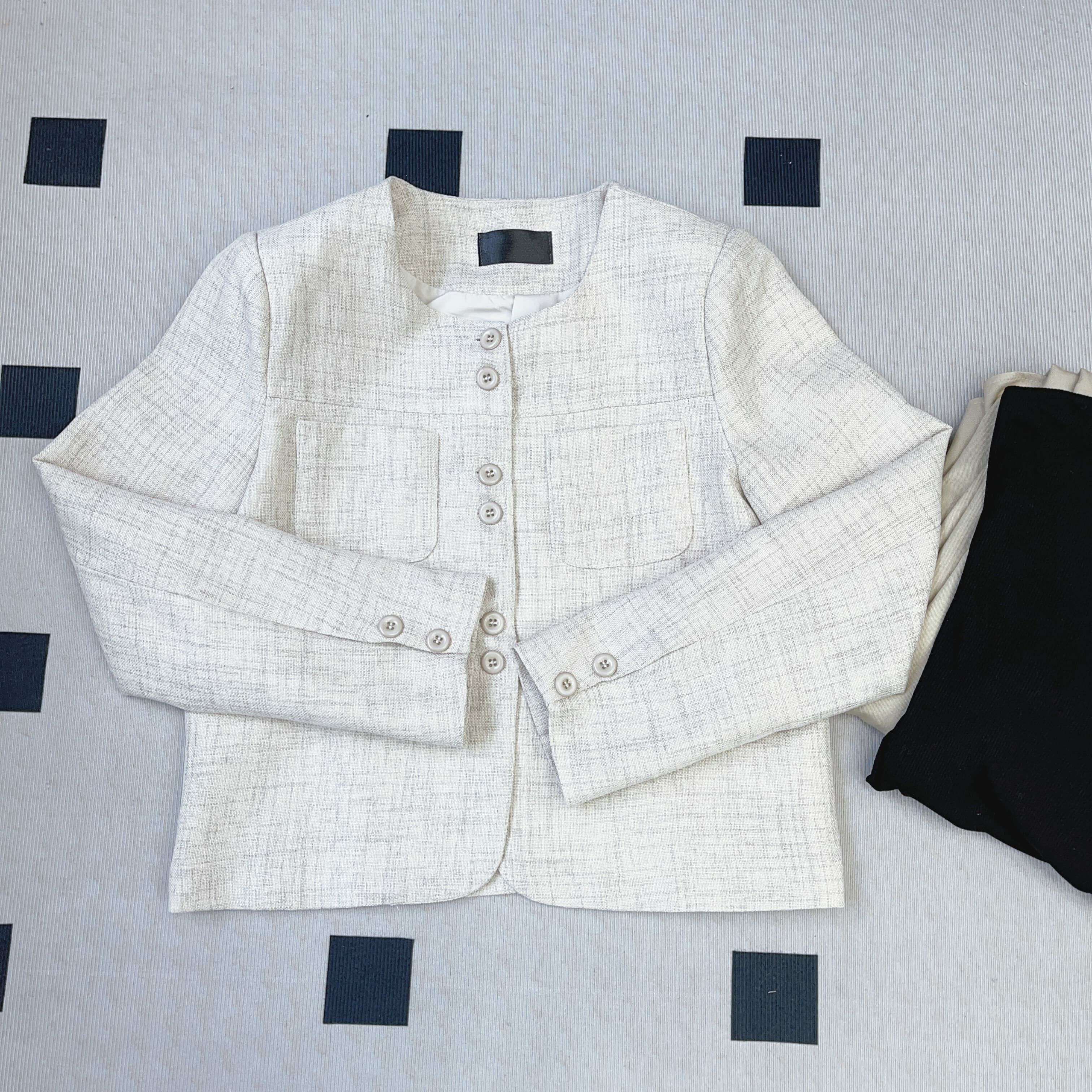 小香精緻感,但用咗更輕盈、帶點亞麻紋理感嘅質地