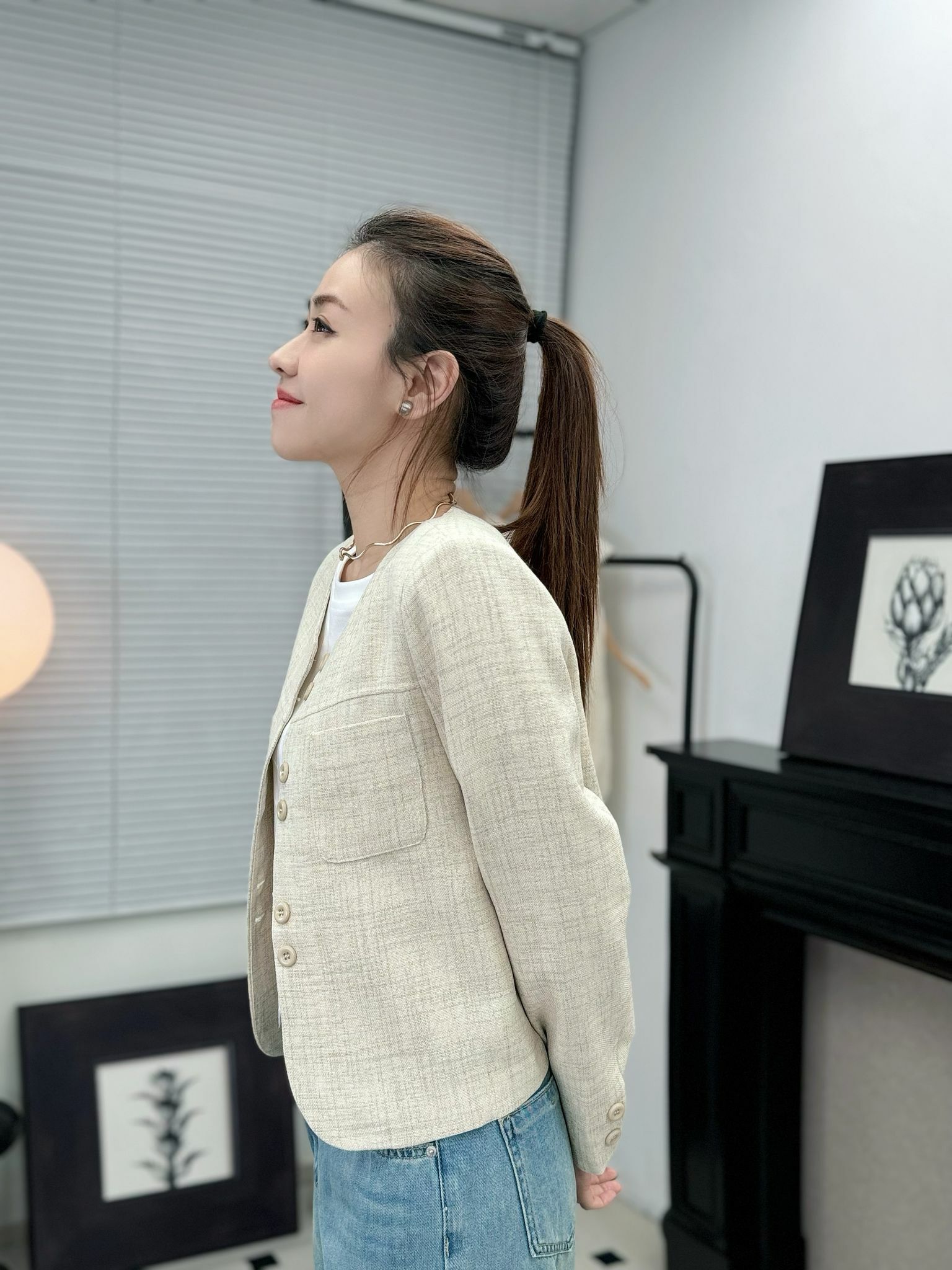 圓領設計 + 全直線型鈕扣排釦,簡約大方而且更加有smart 一點嘅casual 感🤍