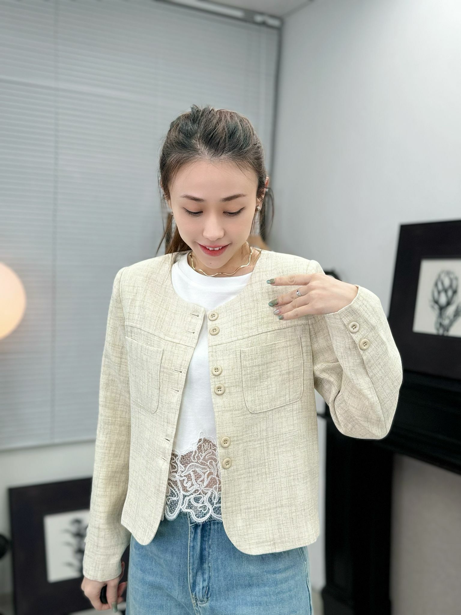 JK#6980 🤍亞麻Crop Jacket