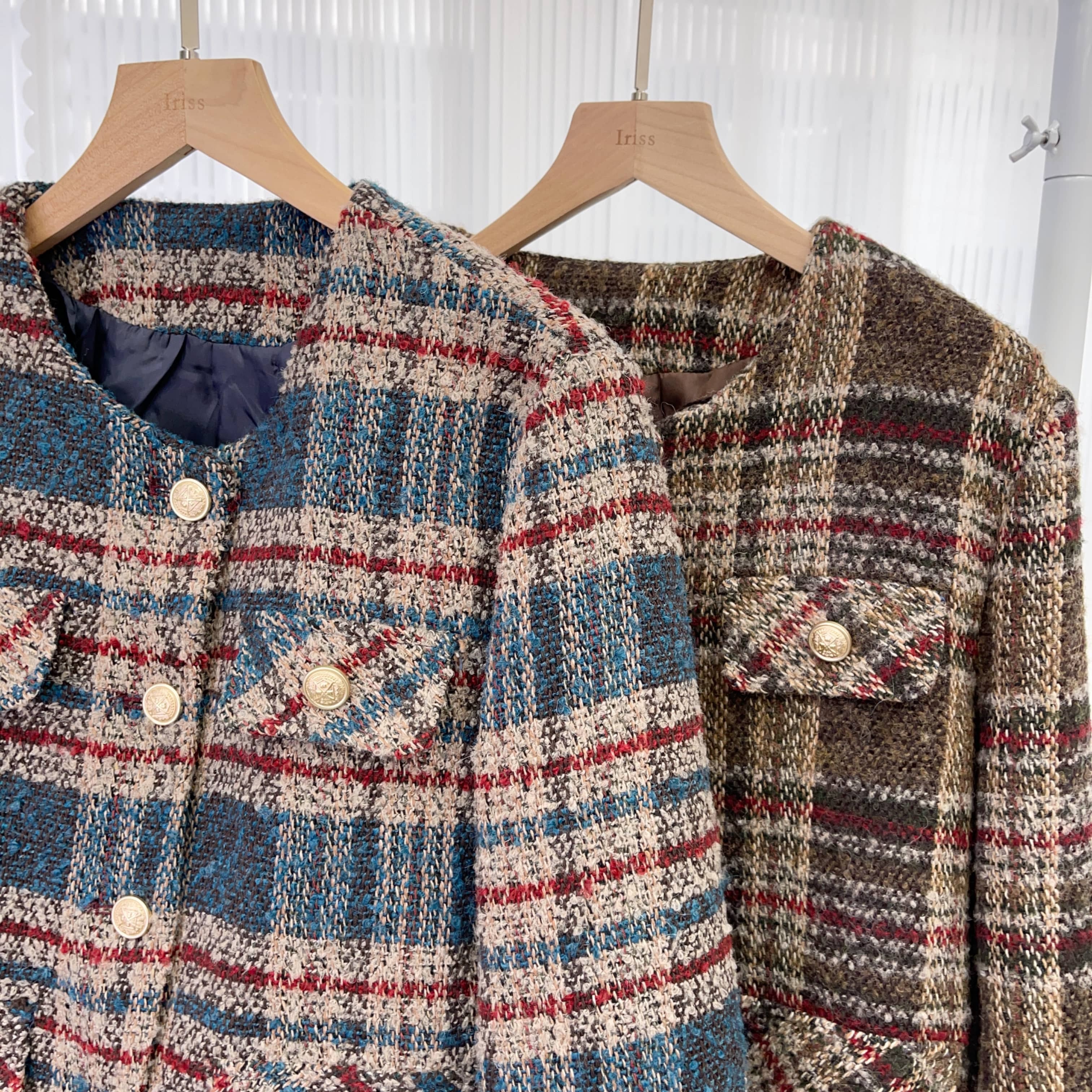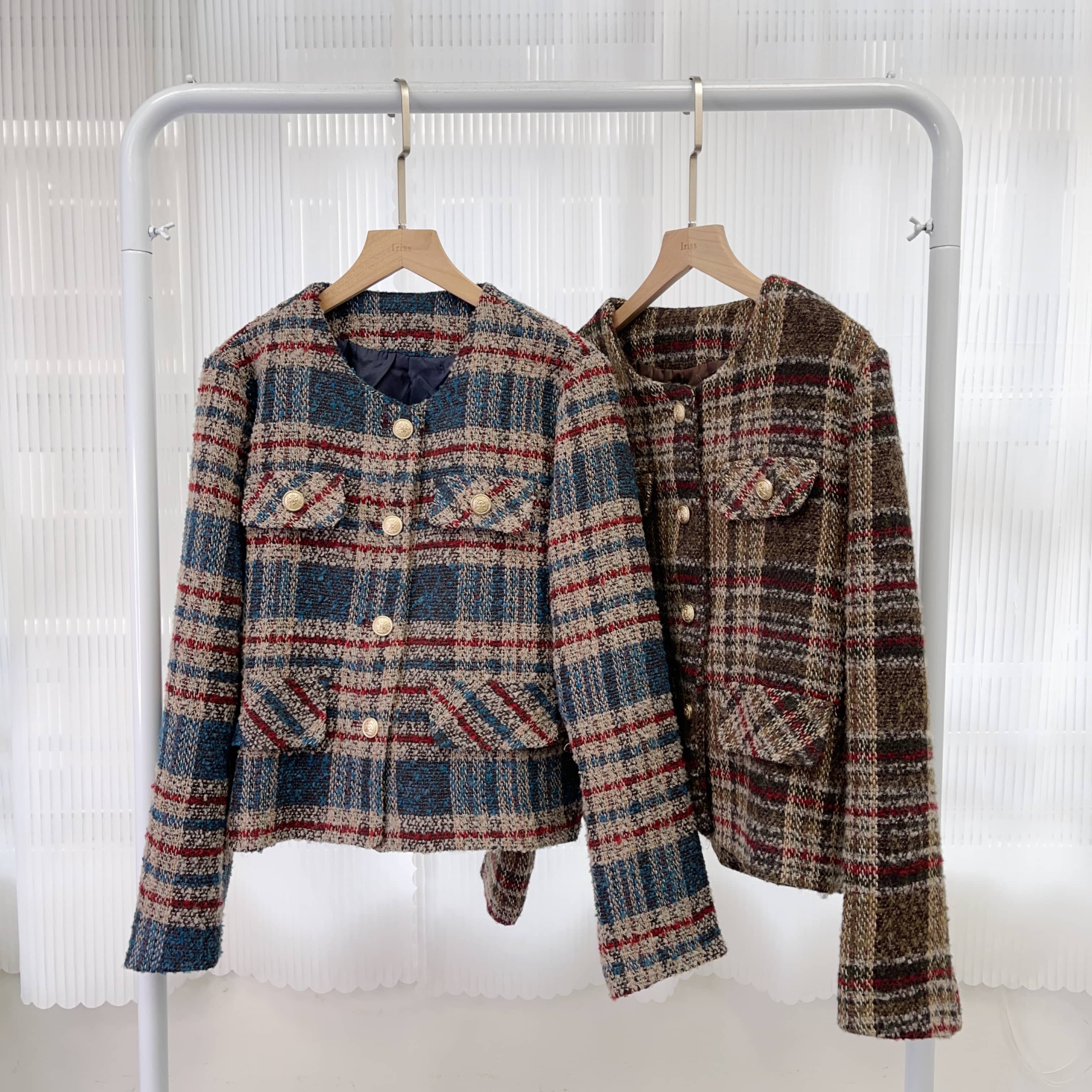 復古嘅啡調藍調但係兩隻色都混合左酒紅🍷令成件褸更有古典氣質感覺