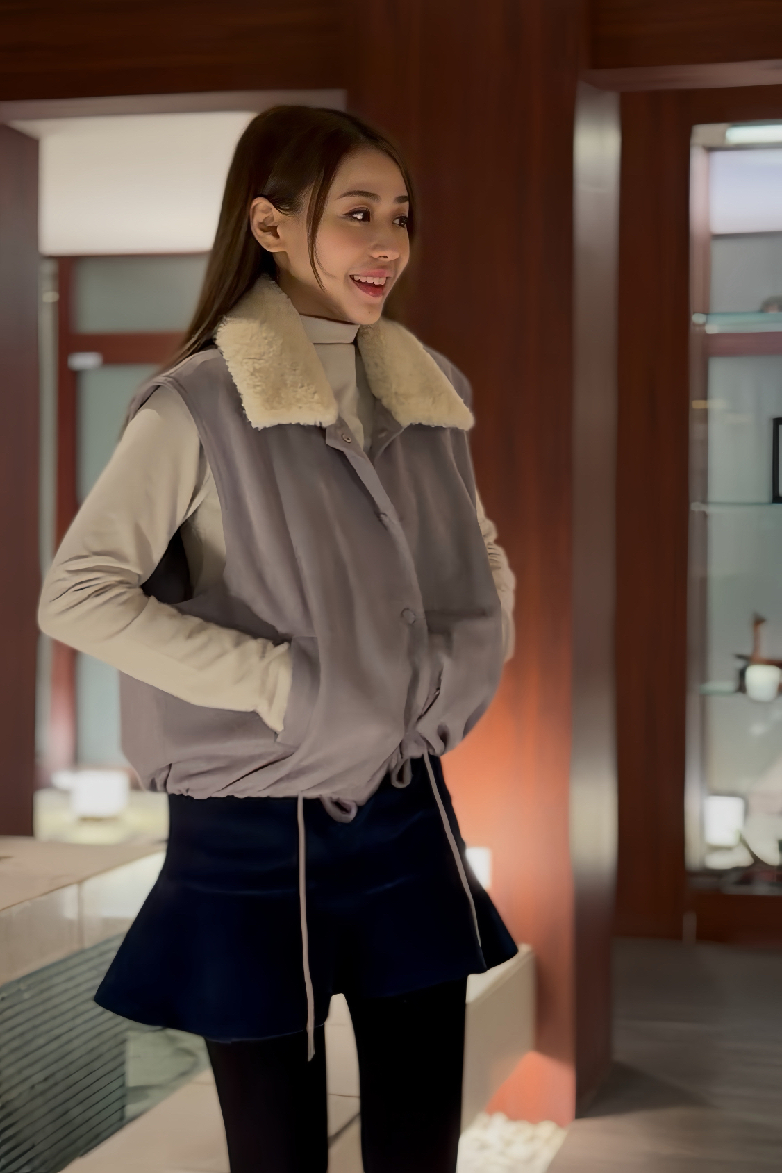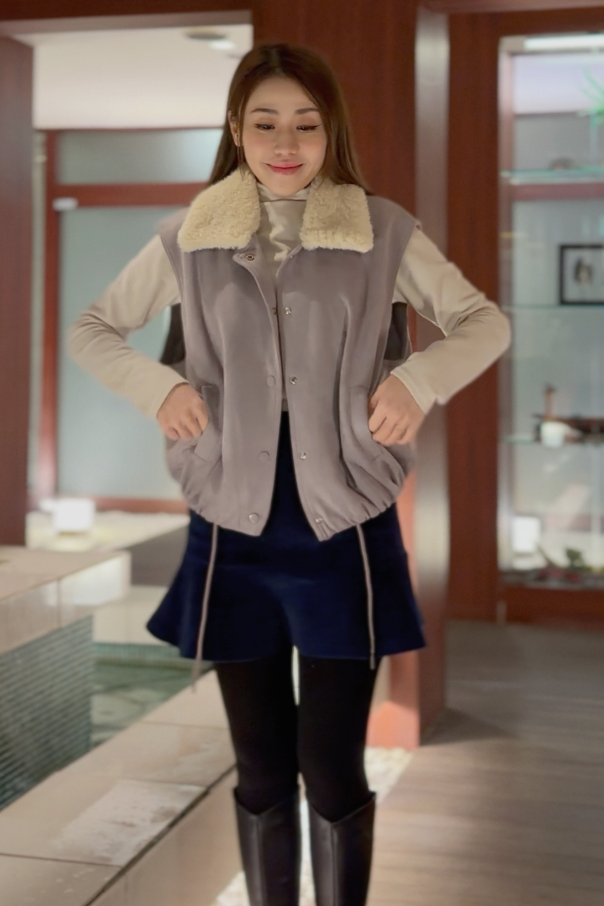 外套 肩18‘’夾位22” 胸45” 腰34-40(可束)”全長22”吋