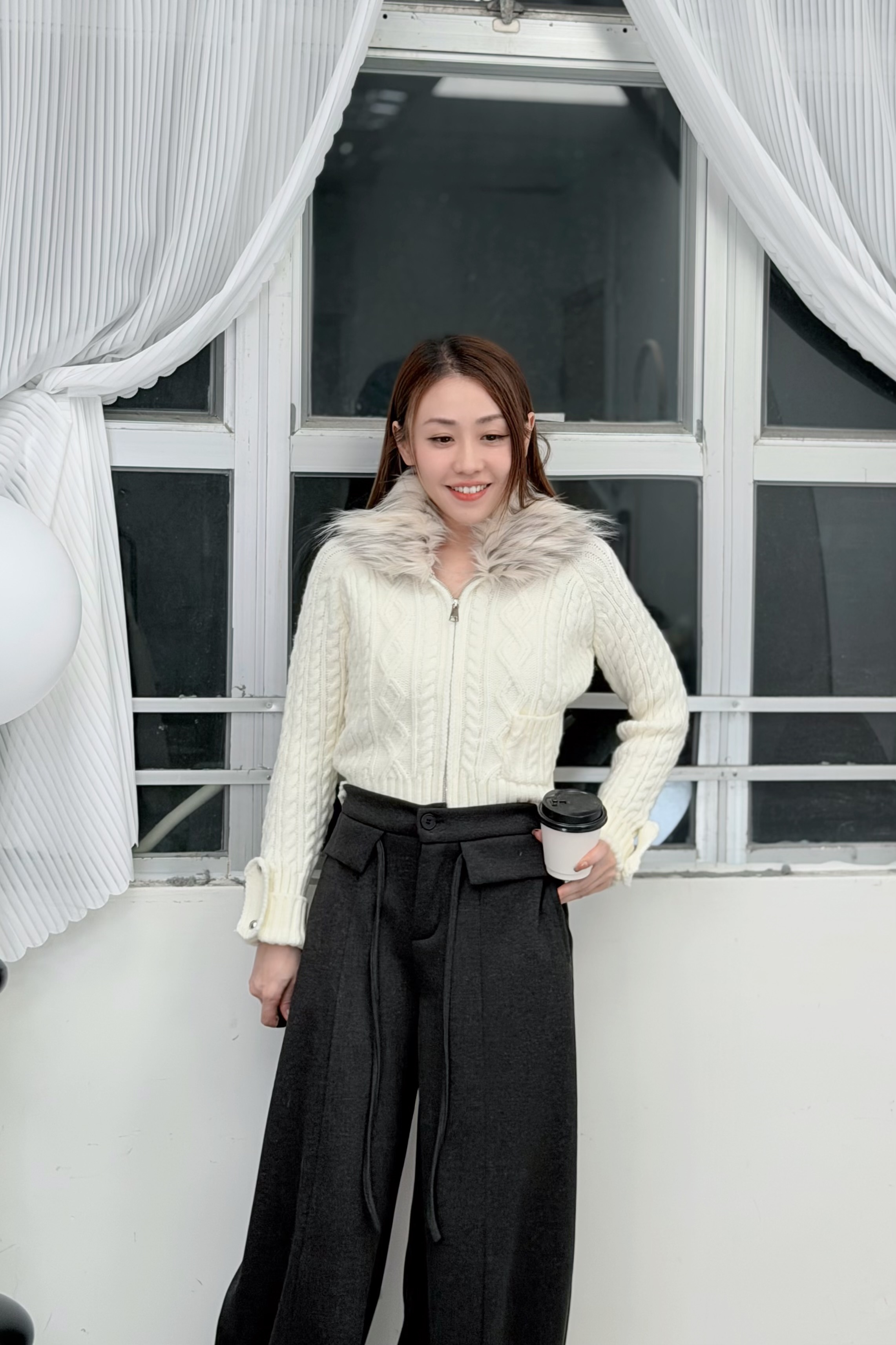 外套 肩袖長23” 夾位17” 胸34-44” 腰28-38”全長18”吋(毛領可拆)