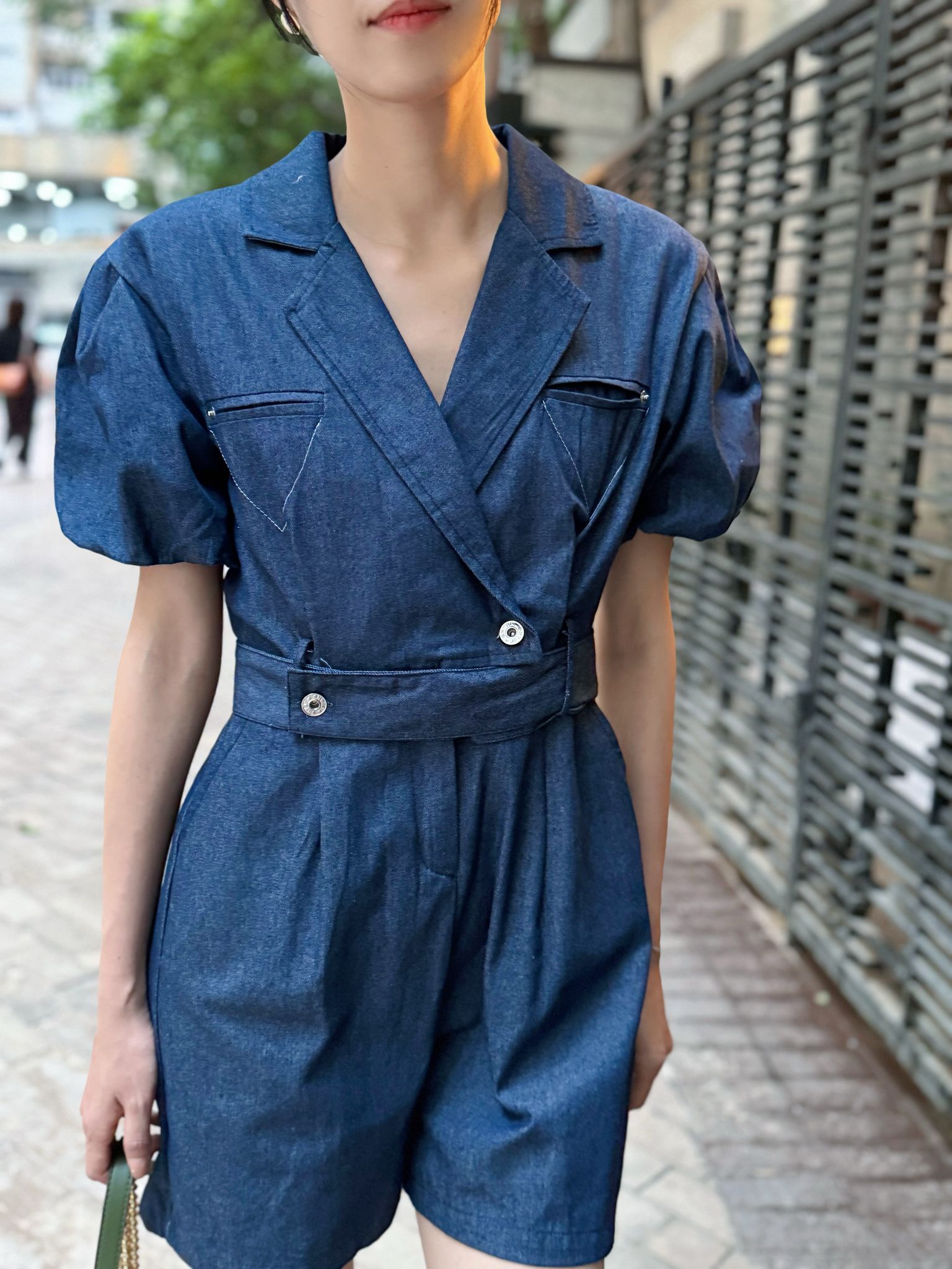 肩17.5” 袖長9” 夾位19” 胸36”腰30”褲襠15“腿圍25”臀42‘’ 全長32”吋