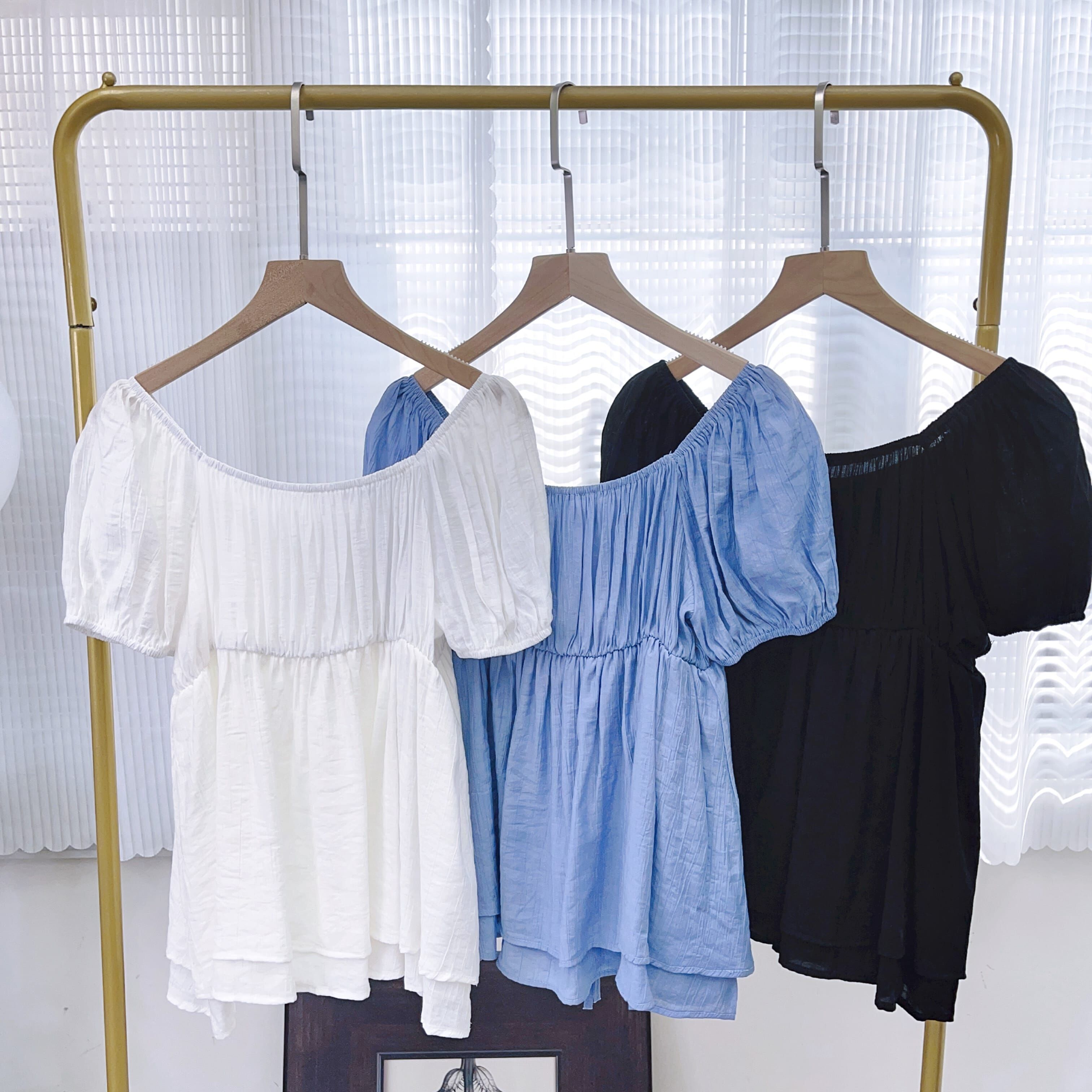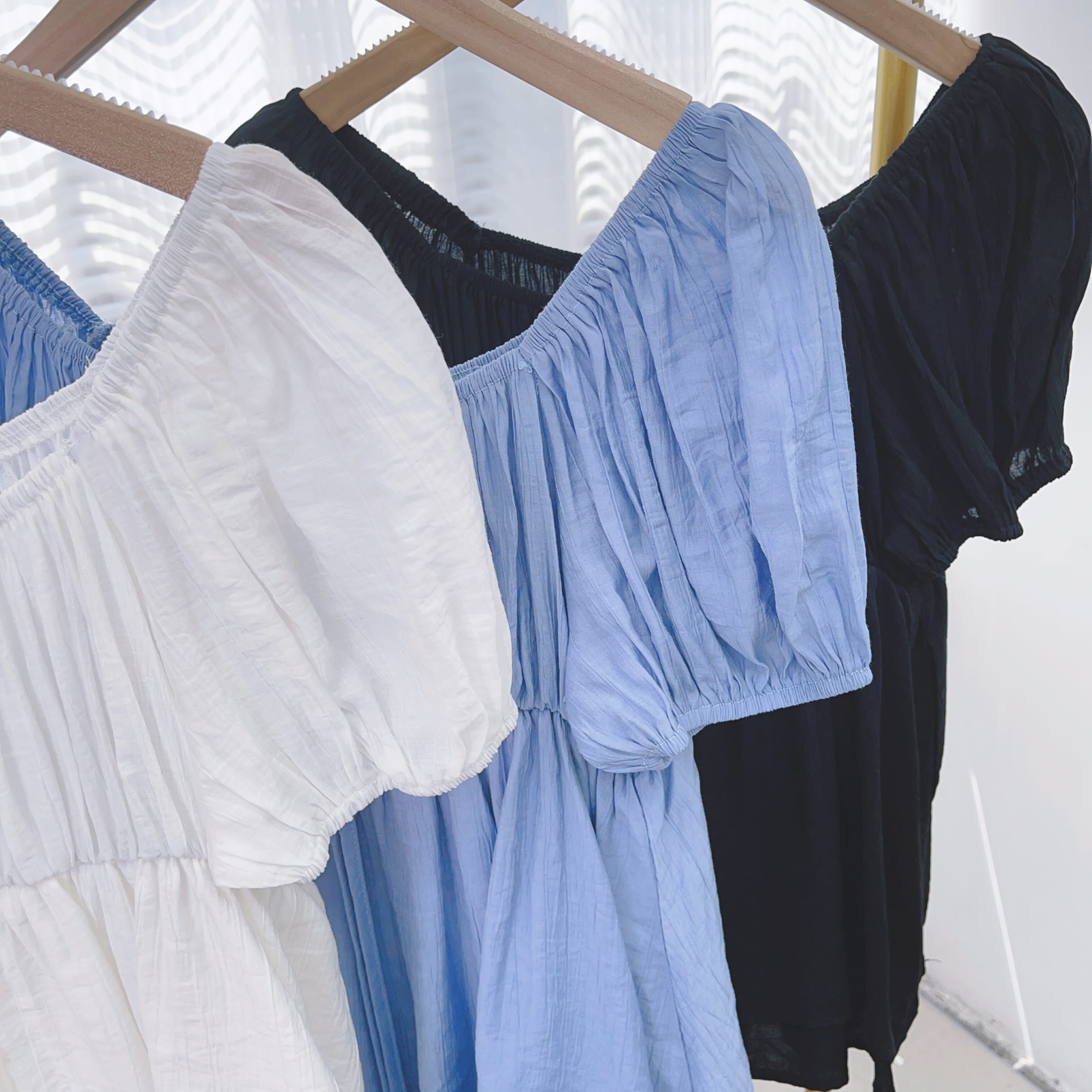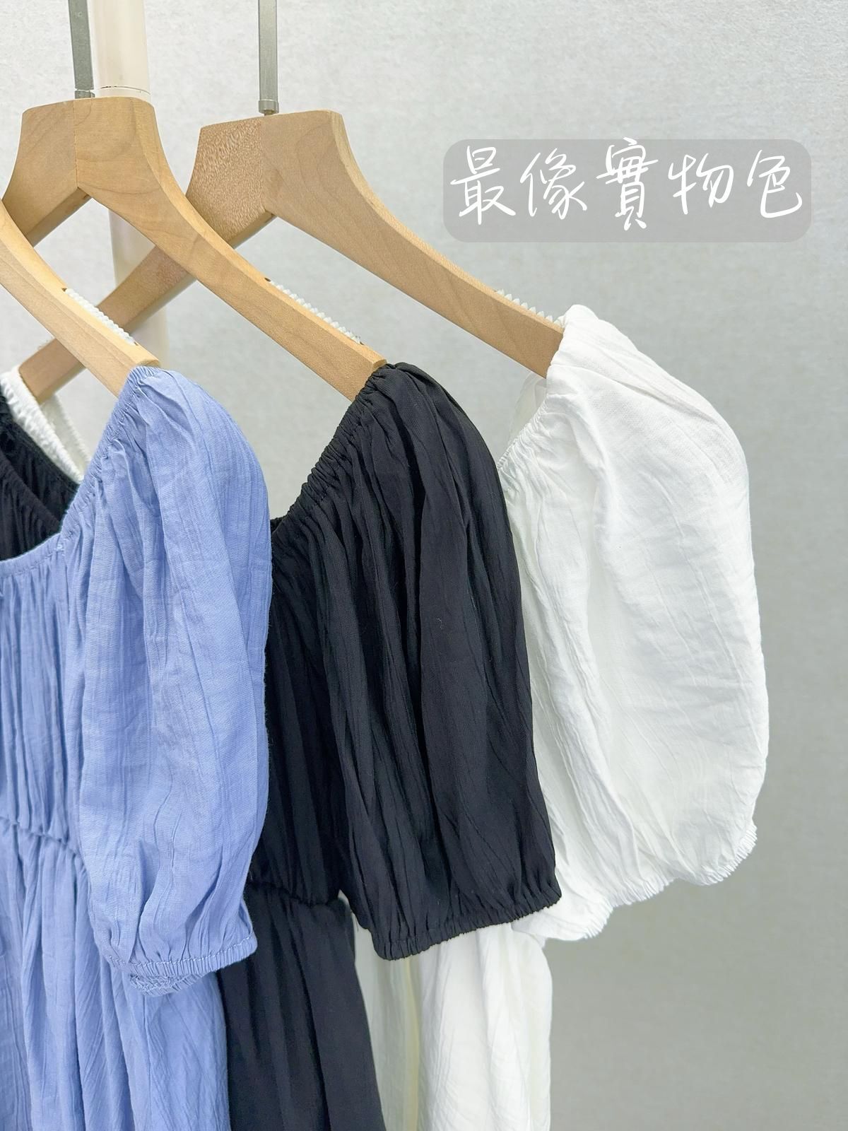 袖位係重點!蓬蓬袖用咗橡筋收口,夠穩陣唔易甩,仲可以自然調整長度,上膊一啲就變咗一字肩設計,多咗種穿法,鍾意露膊or唔露都自由轉mode。