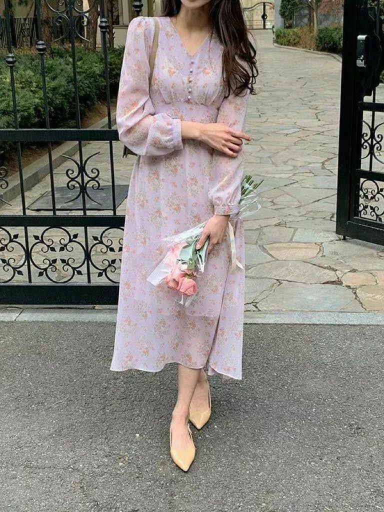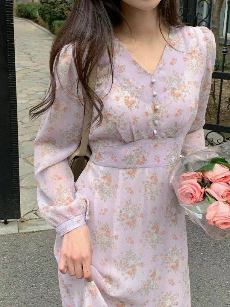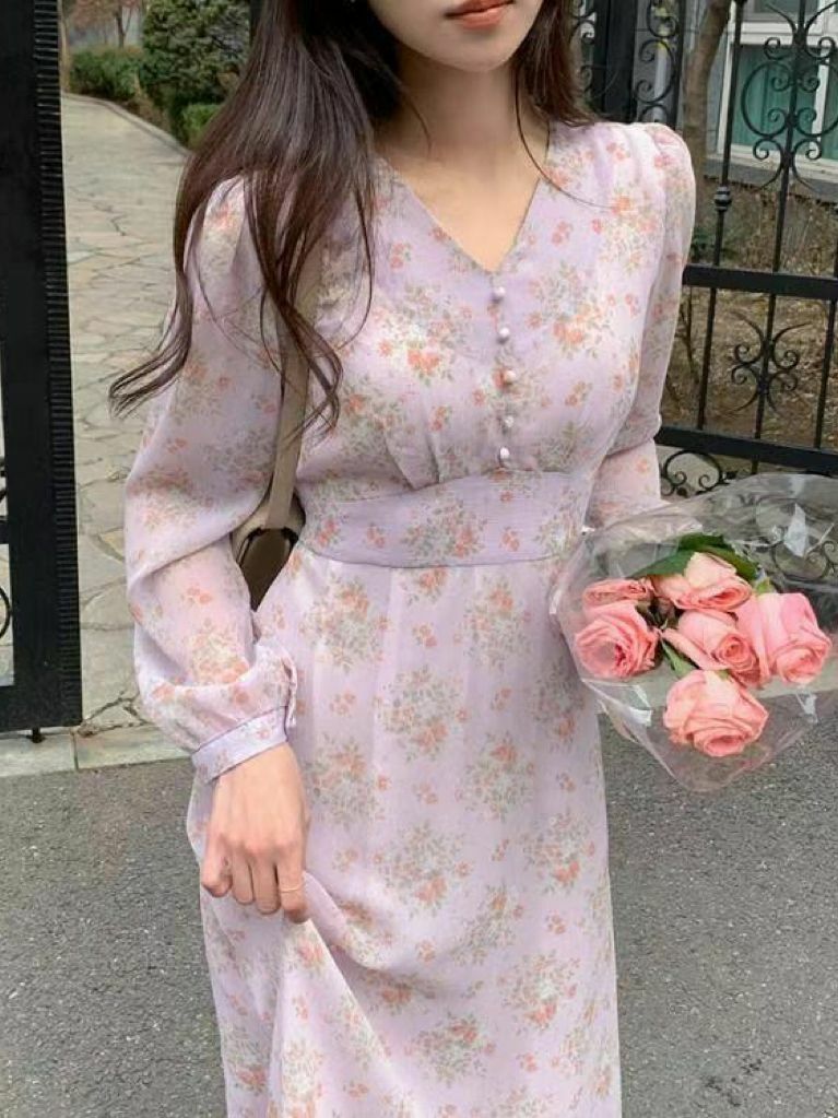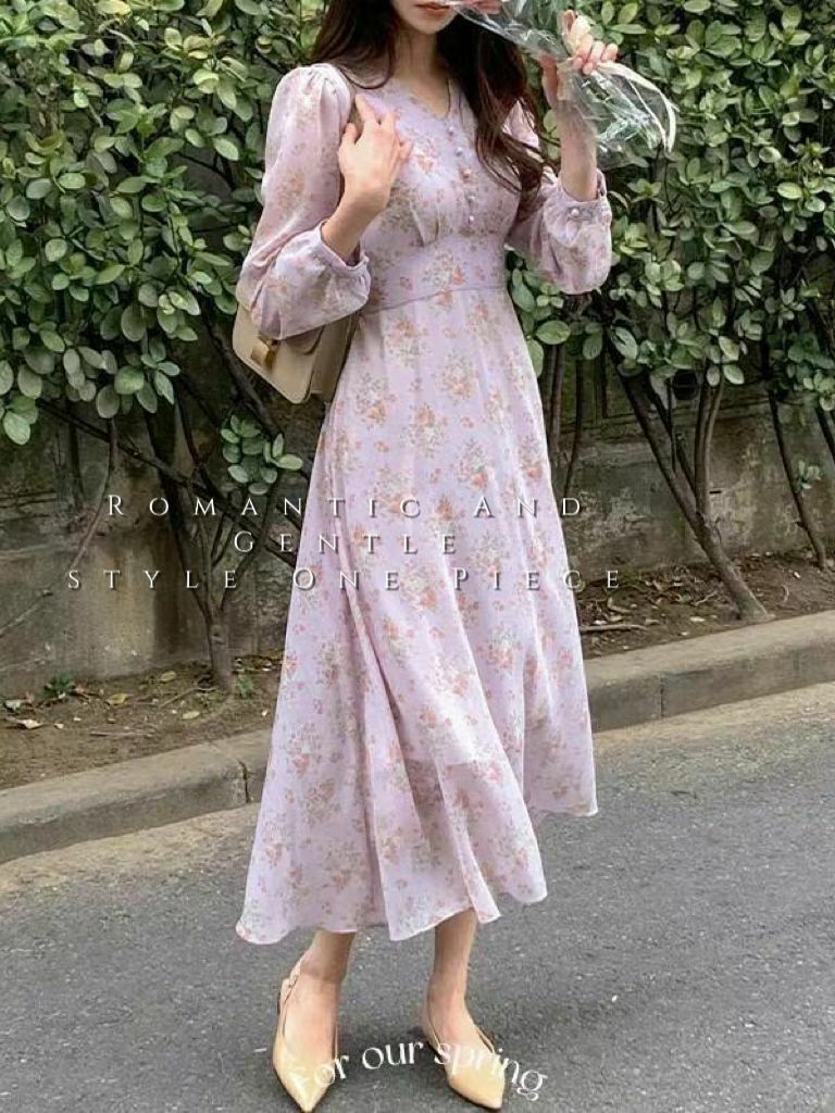全部商品 / OP#14145 🤎淡紫襯淡花連身裙