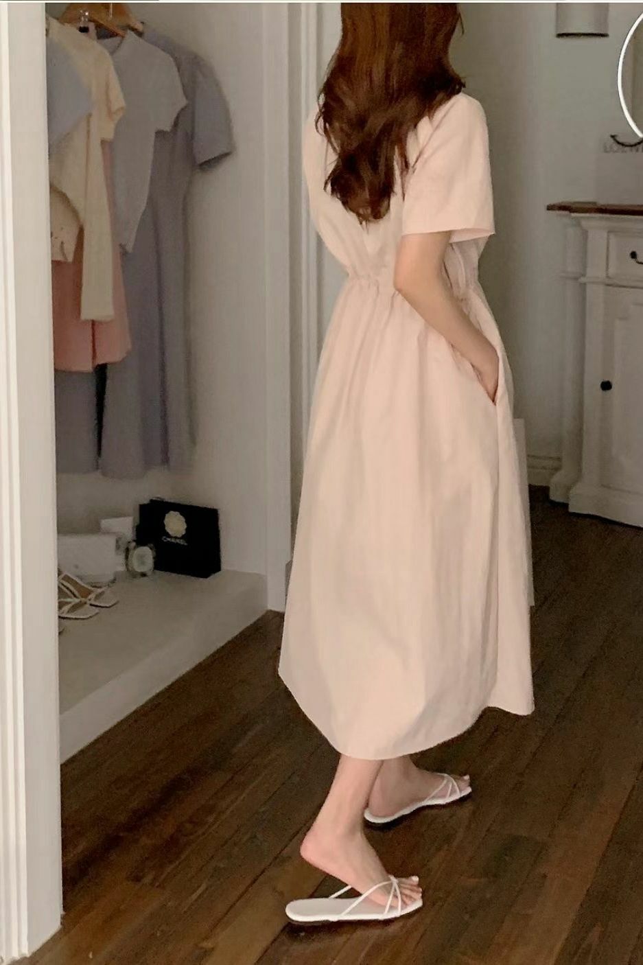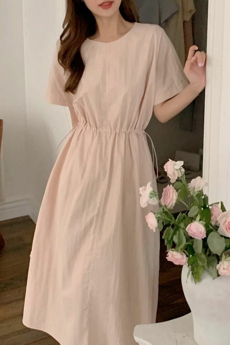 呢款裙子嘅剪裁十分講究,無論係短袖嘅設計定係鬆緊腰嘅細節,都令到呢件裙更加修身,增添幾分俐落感。