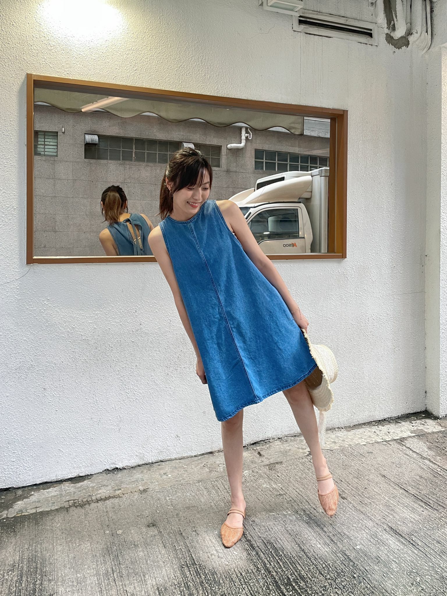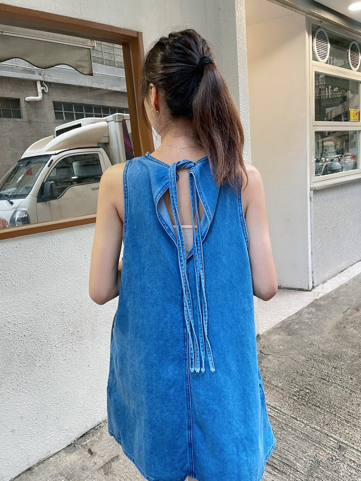 後背隨意雙束帶襯係牛仔裙上更加顯得休閒🪁💙
