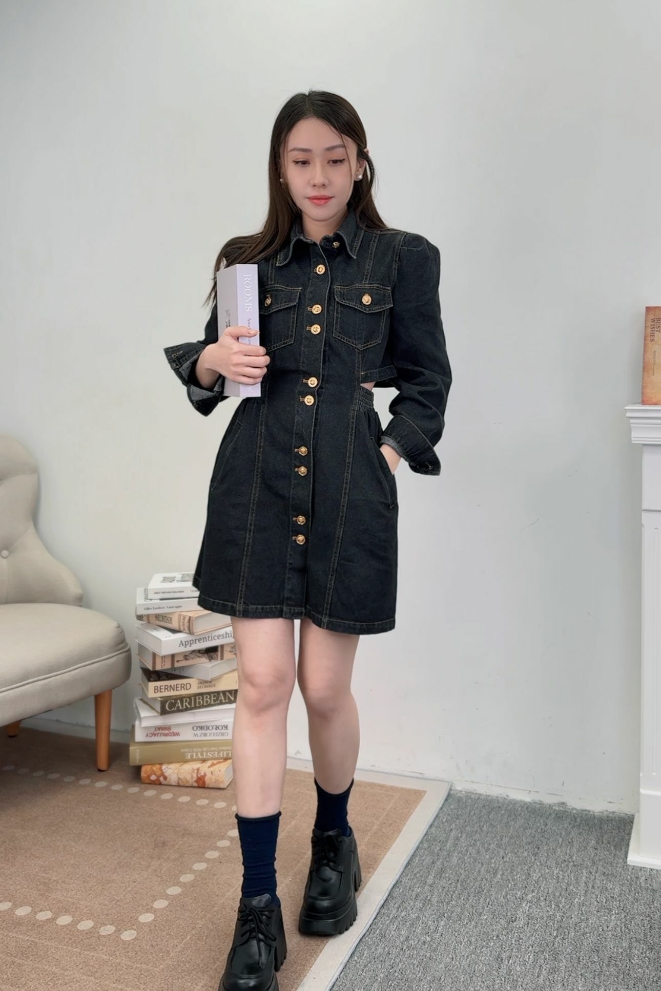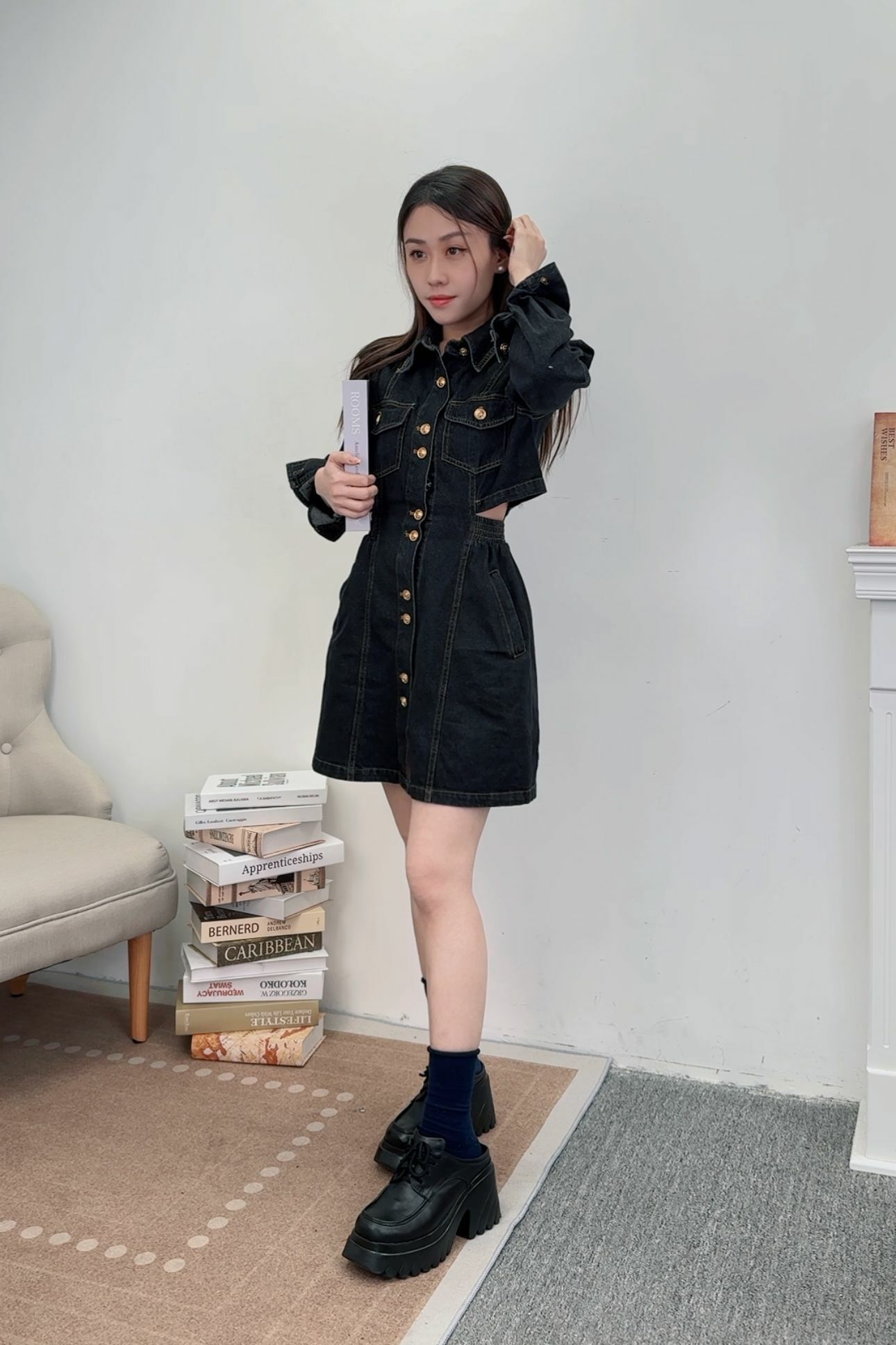 🤍襟幼腰位牛仔裙