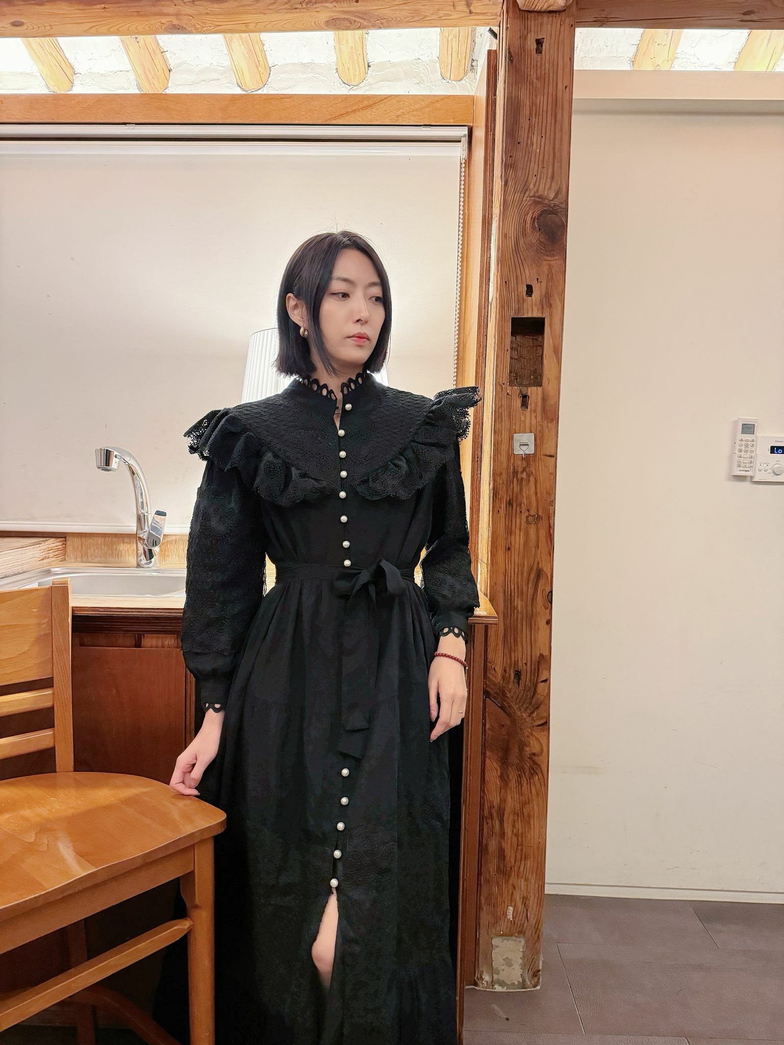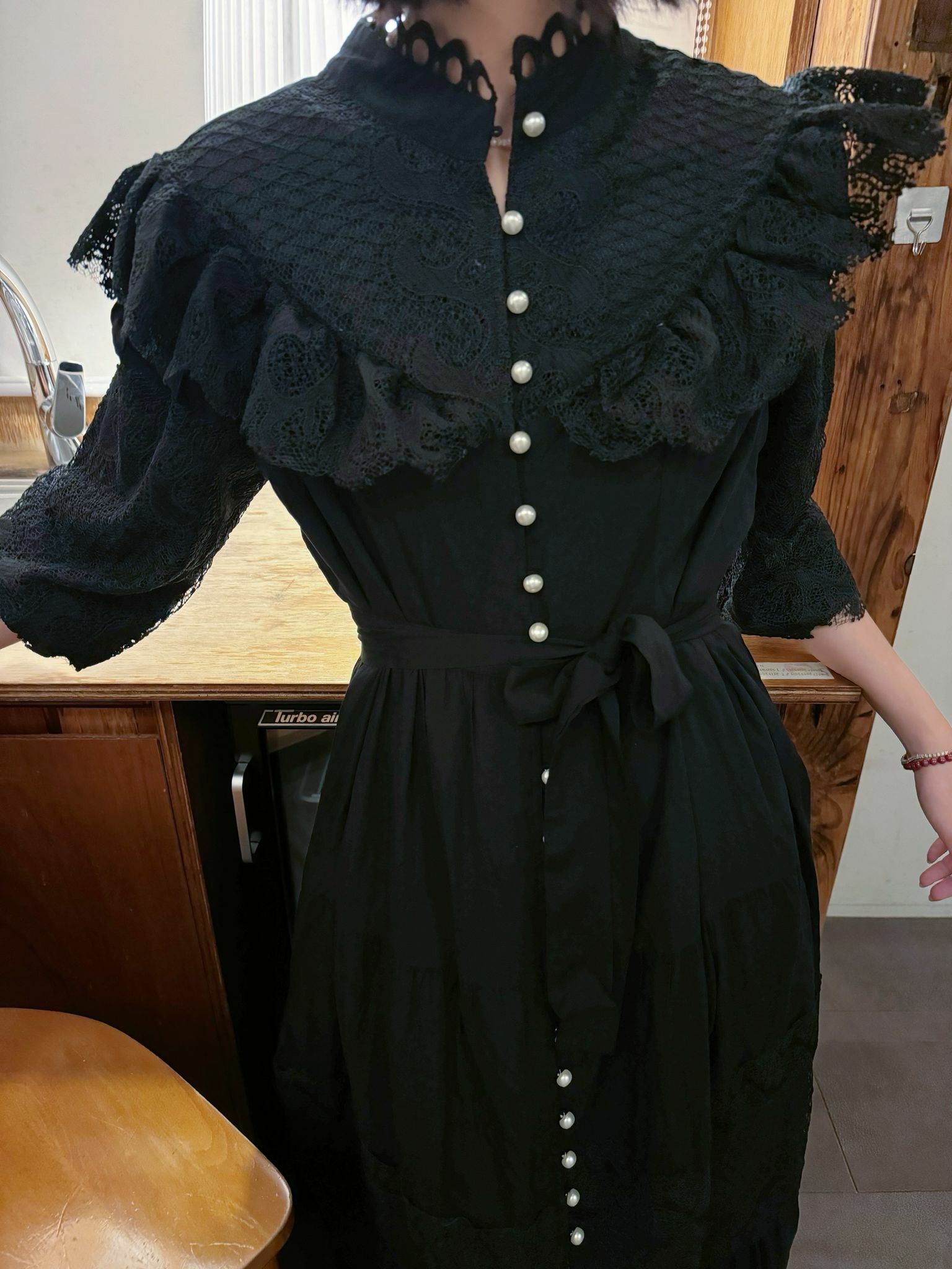 復古宮廷風連身裙有白色同黑色選擇 充滿古典蕾絲細節、波浪邊、珍珠扣同高領設計 勁有「Victorian Romance」feel,優雅又有氣質,無論婚禮、聚會定日常穿搭都啱晒