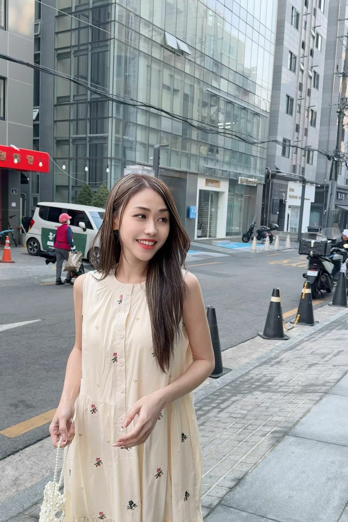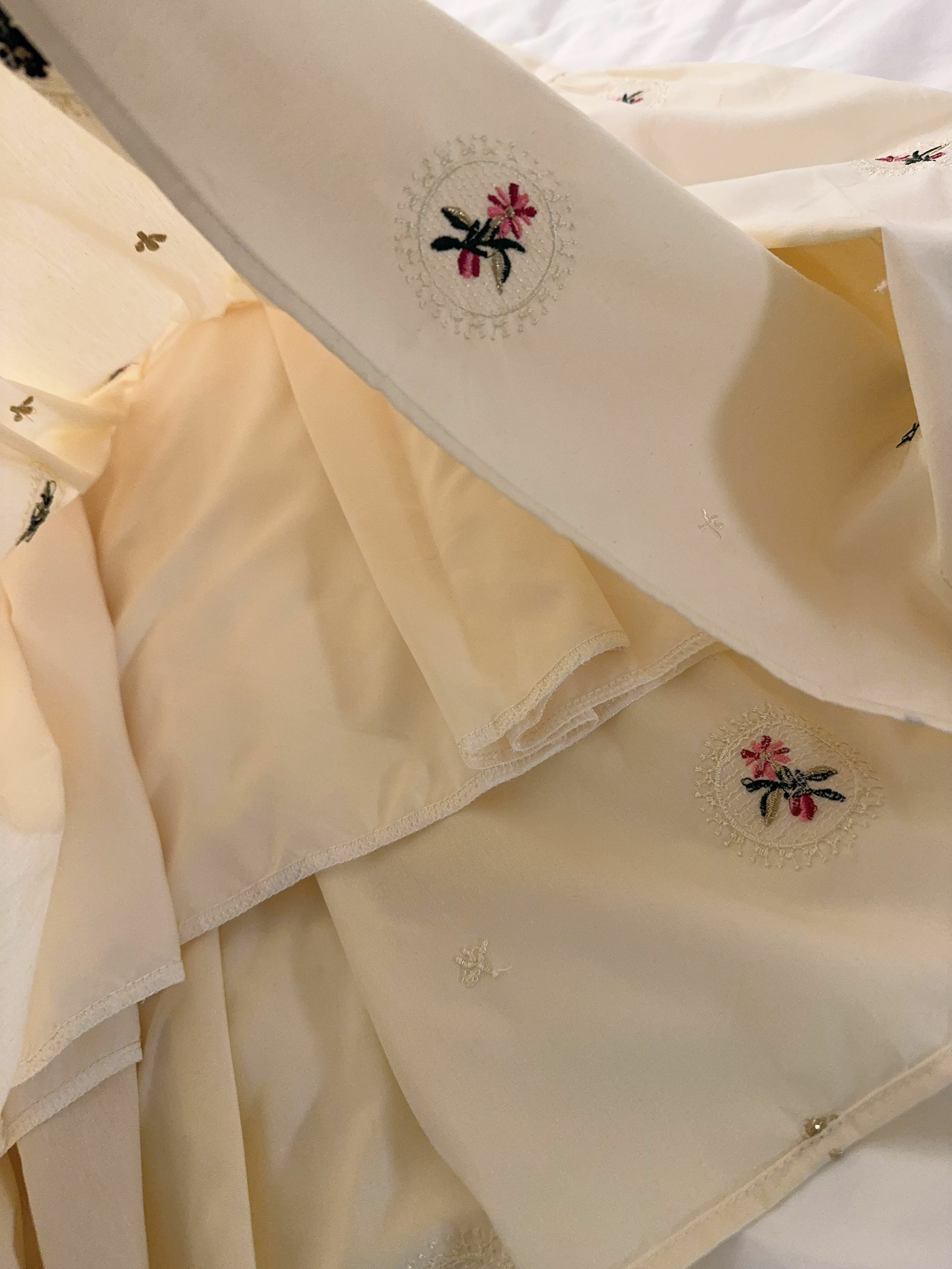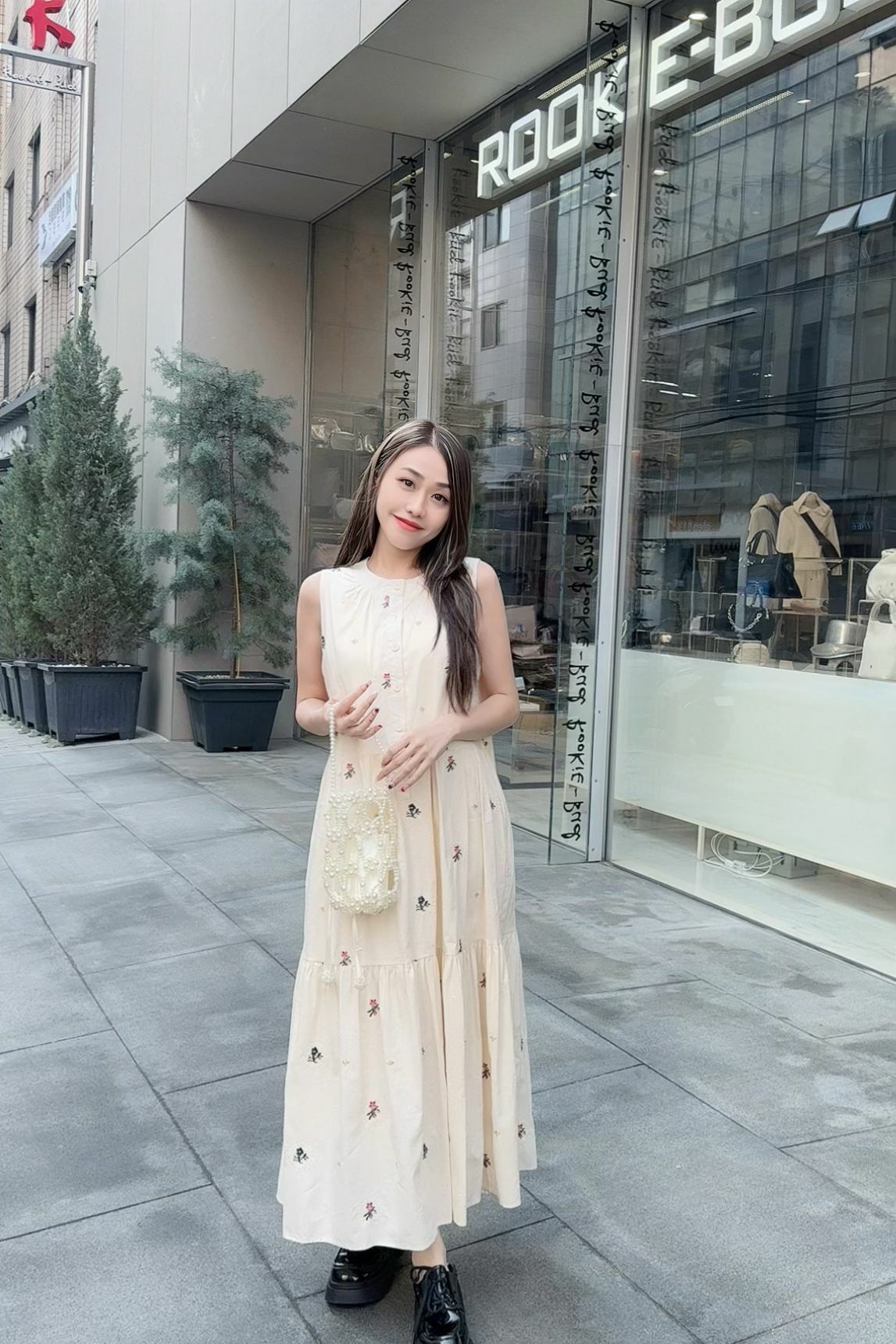 最大嘅特色一定係佢成件裙面滿佈嘅 手感立體感刺繡小花,唔係print,而係真係一針一線繡出嚟嘅點點floral embroidery,仲有唔同色、唔同花形,嗰啲細緻位真係好加分,感覺就係行日系天然系田園風(Natural Zakka Style),帶少少復古童趣,但唔會過cute。