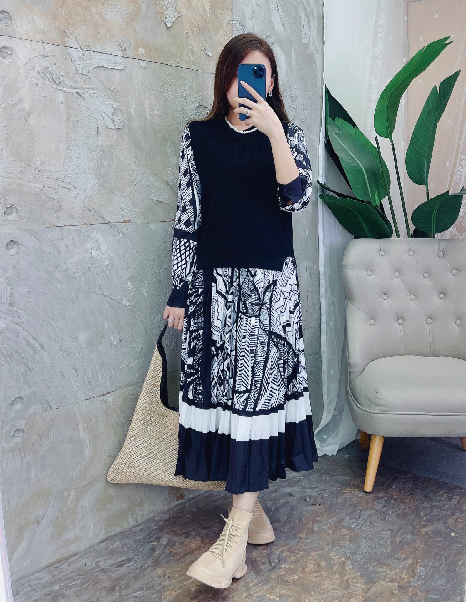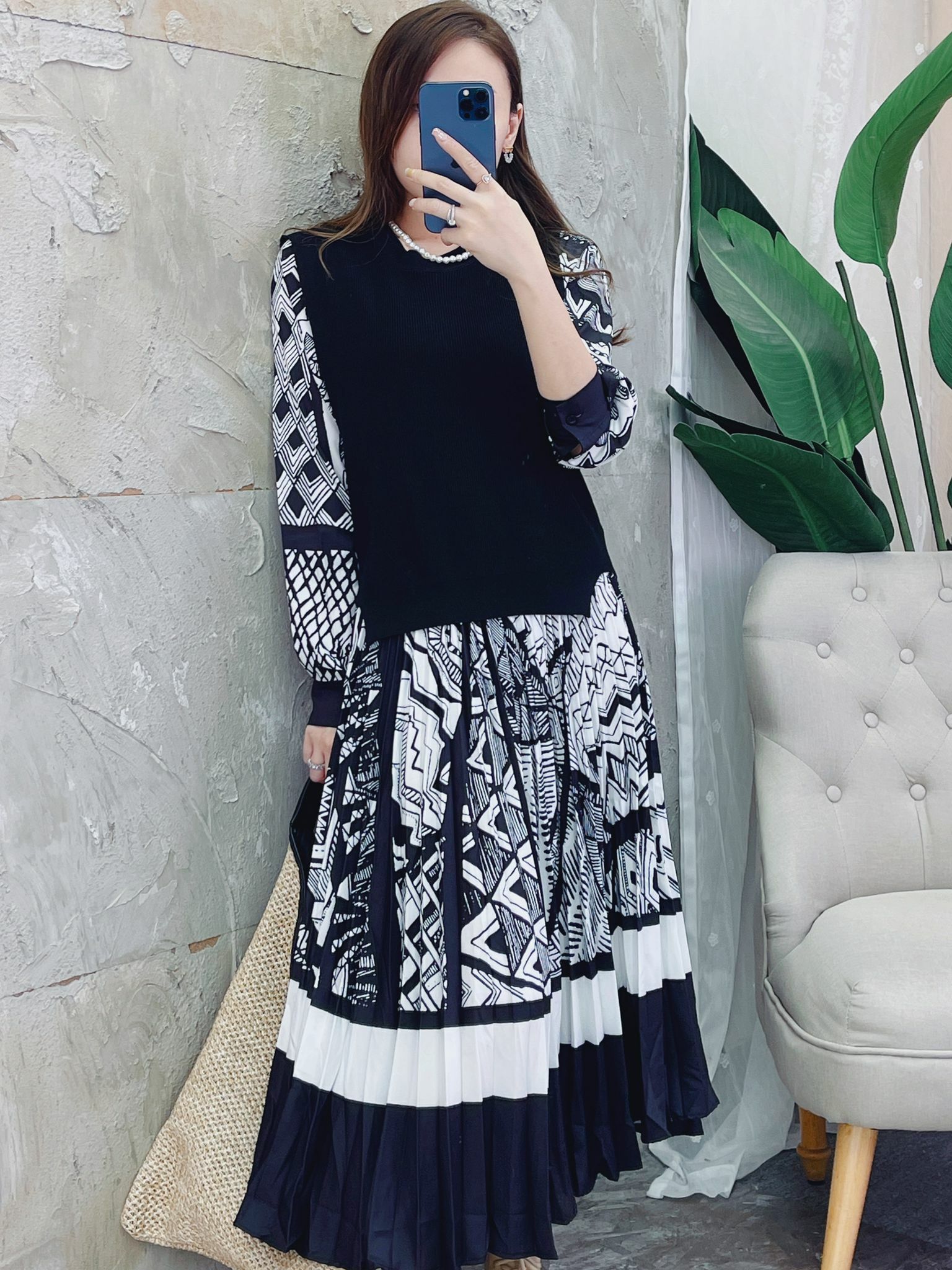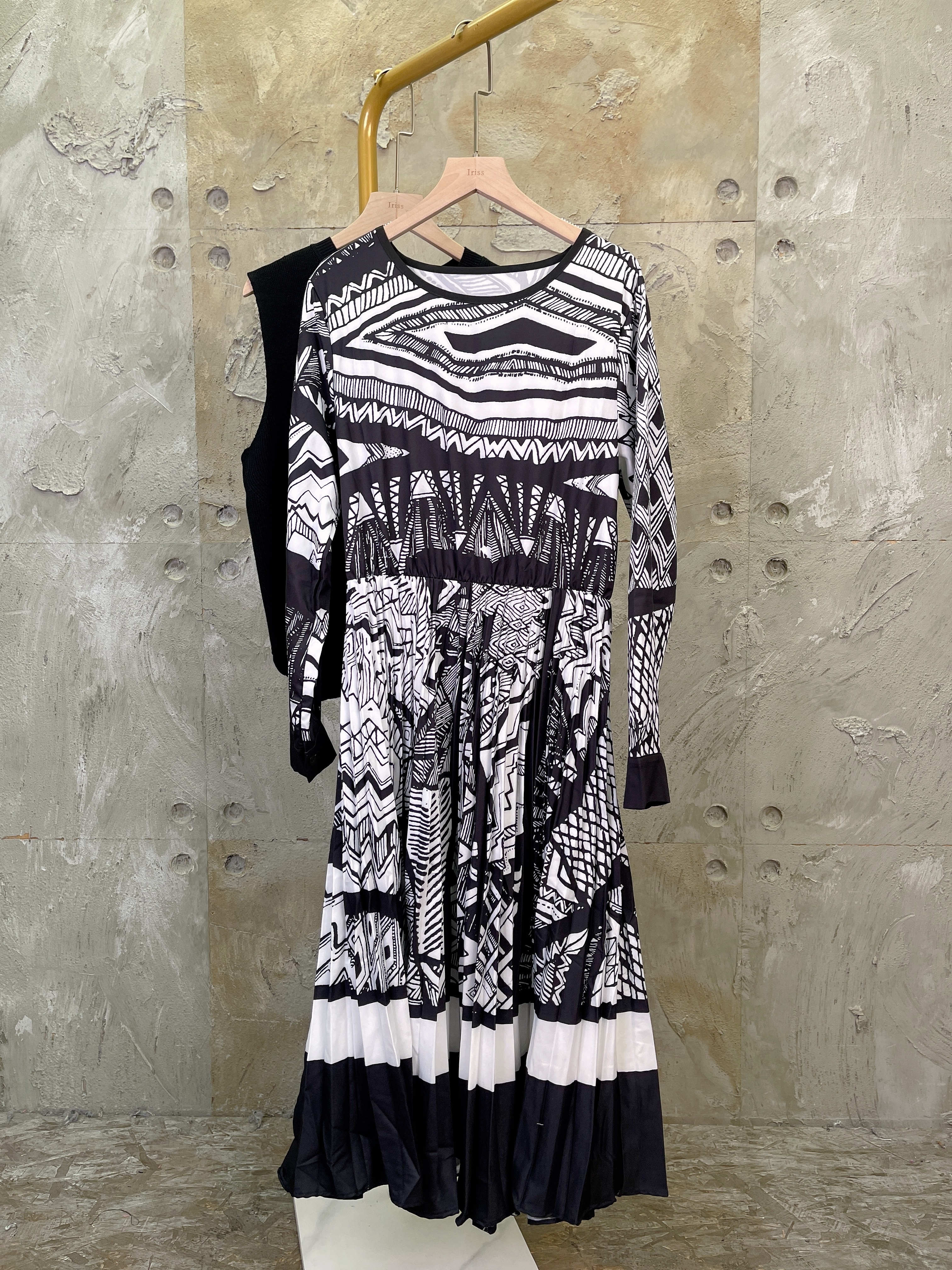 成條連身裙非常花心思咁用咗唔同嘅幾何圖形交錯咁做咗錯亂而有秩序嘅圖紋非常有高級感🖤