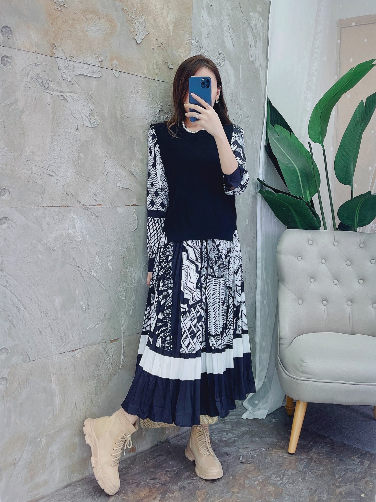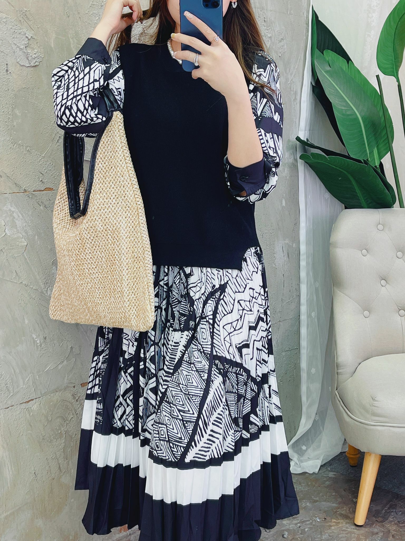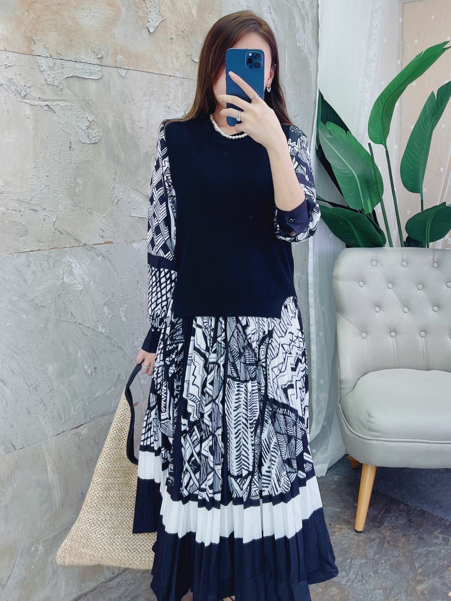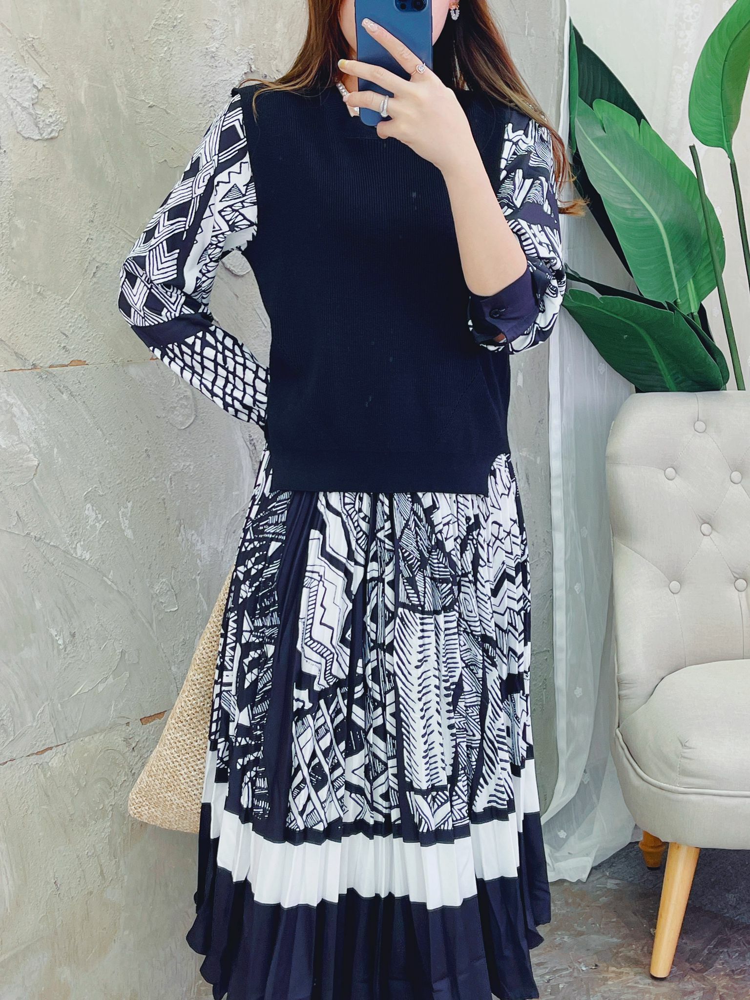 非常有型格感的一條連身裙配襯馬甲背心‼️ 睇落去係錯綜複雜嘅交錯pattern 💂🏻‍♂️♥️但事實上你又會覺得佢每個圖案都非常清晰