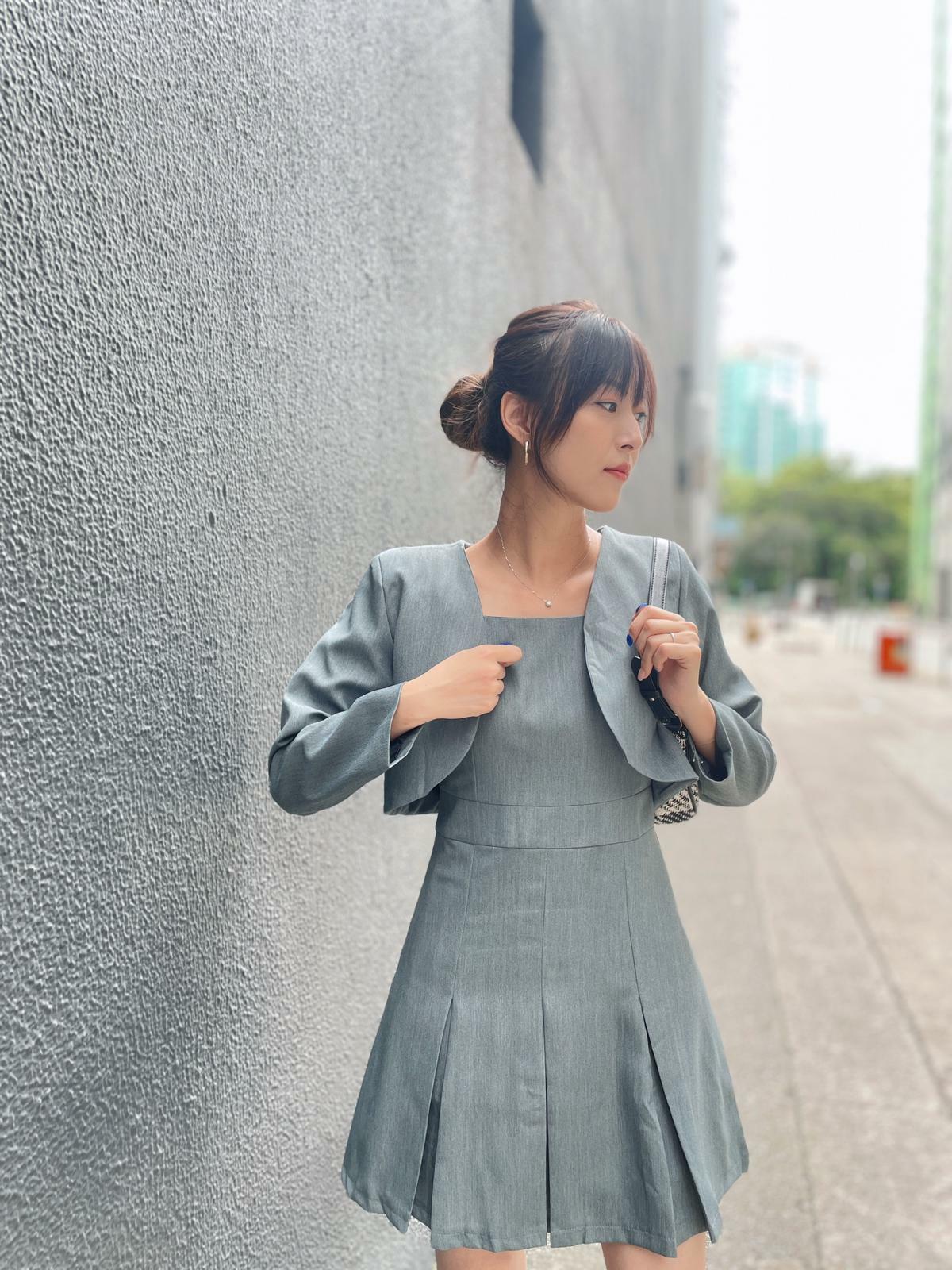 🤗🎖️西裝褸嘅短身設計加上連身裙嘅高腰設計,perfect match~令你嘅身材比例看上去顯腰又顯腿長