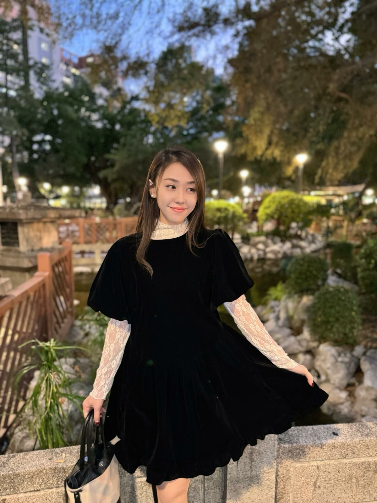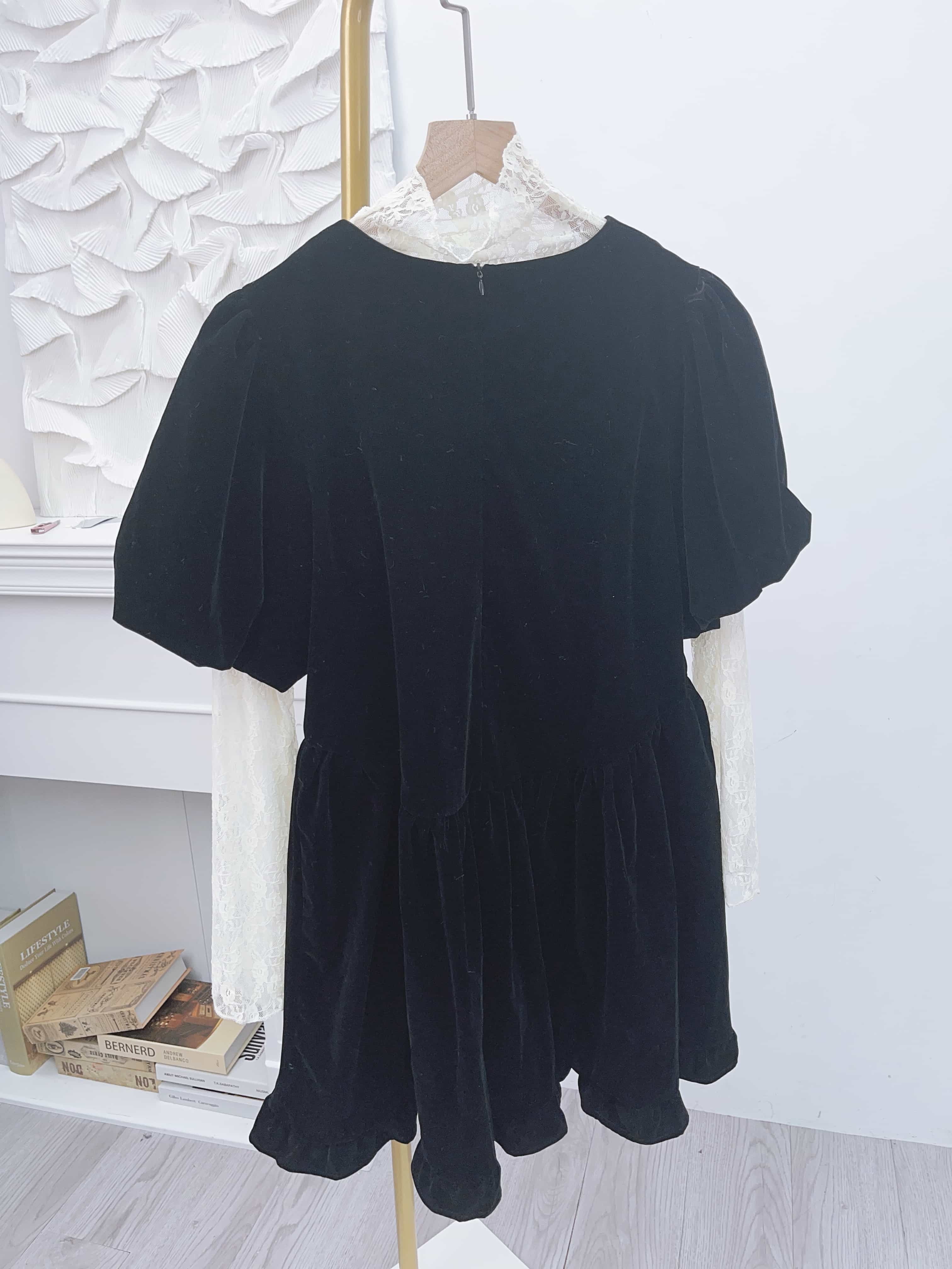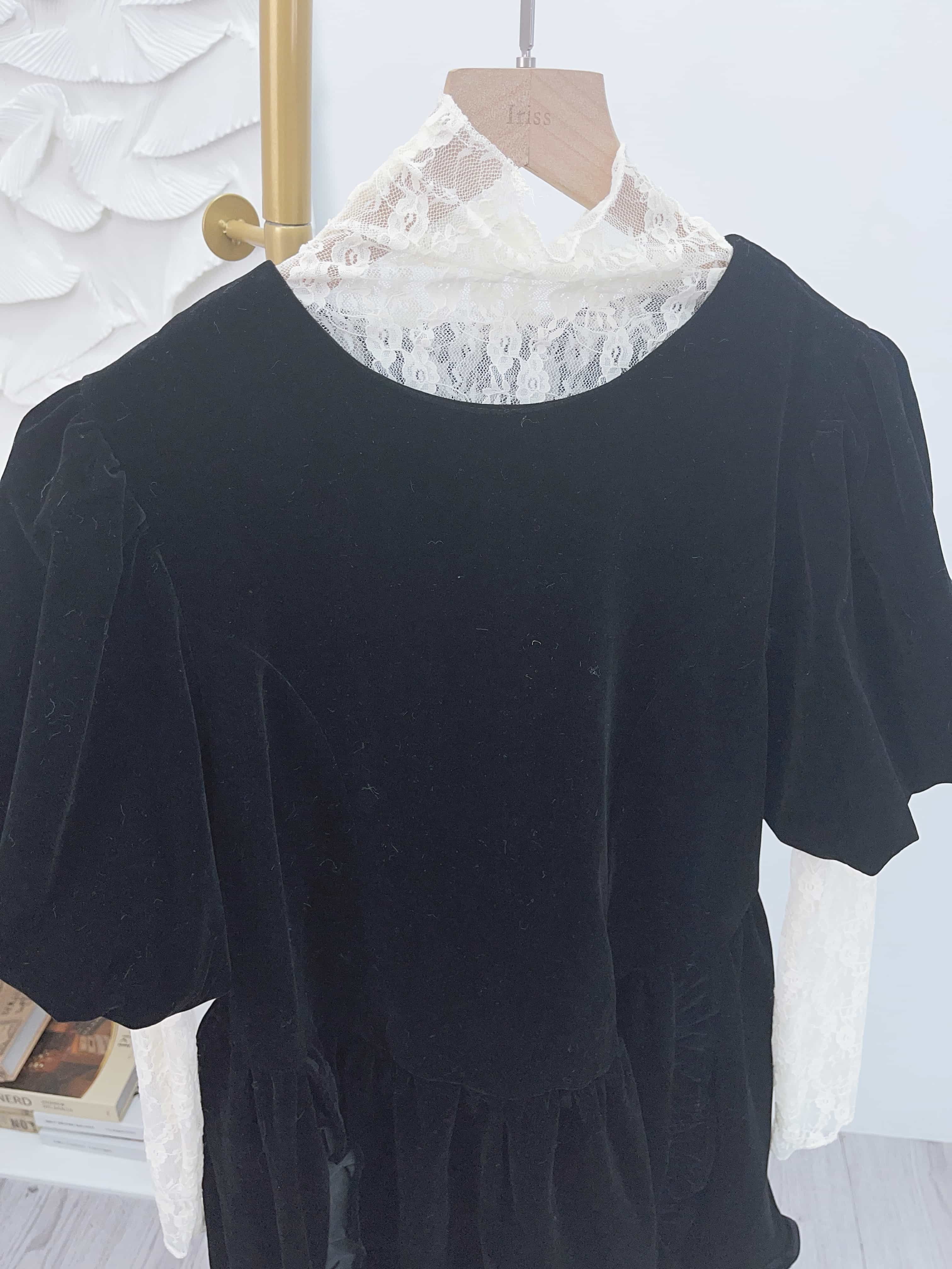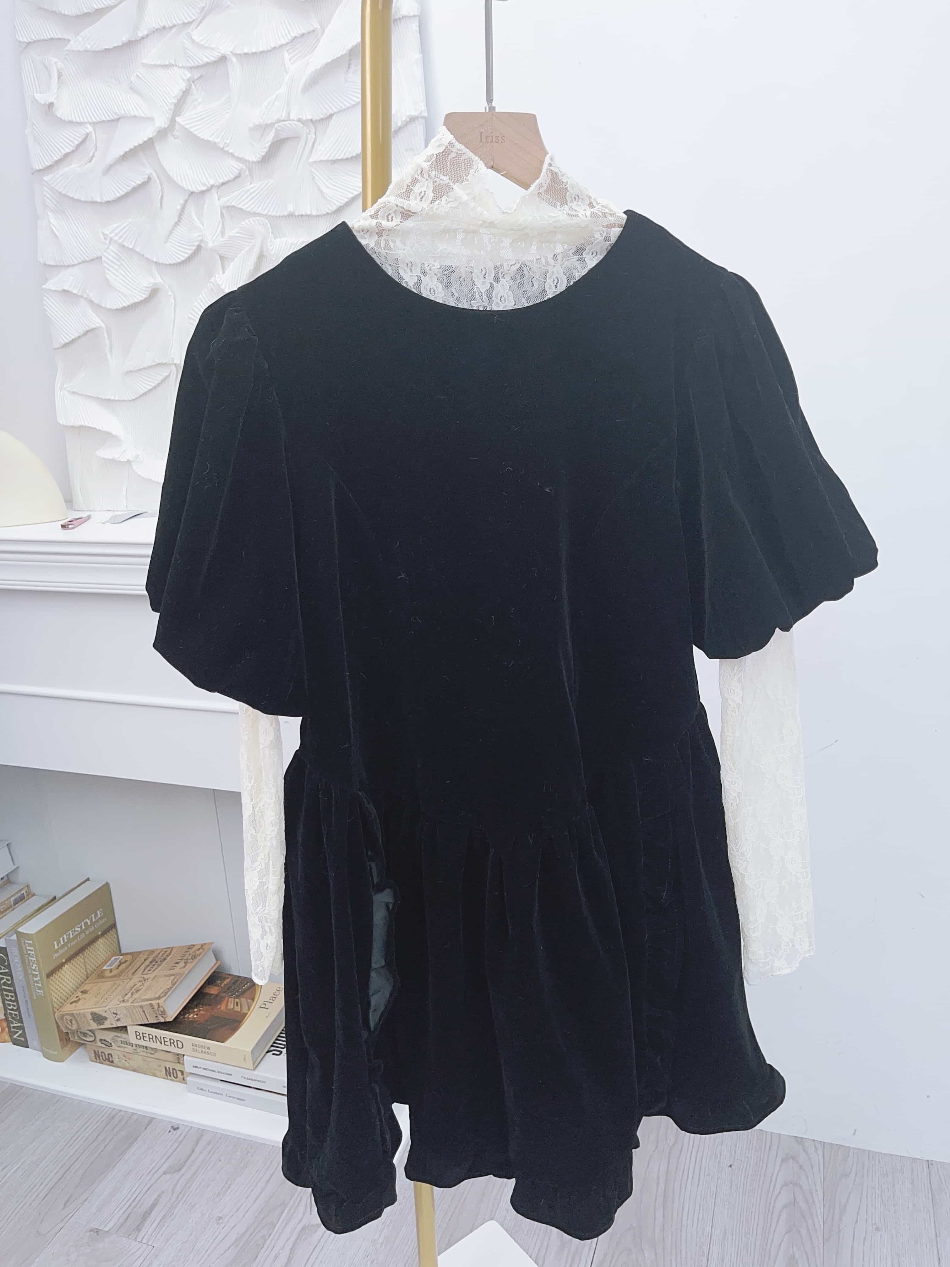 🖤浪漫法式lace 通透打底襯得吸光絨面裙非常低調地華麗~