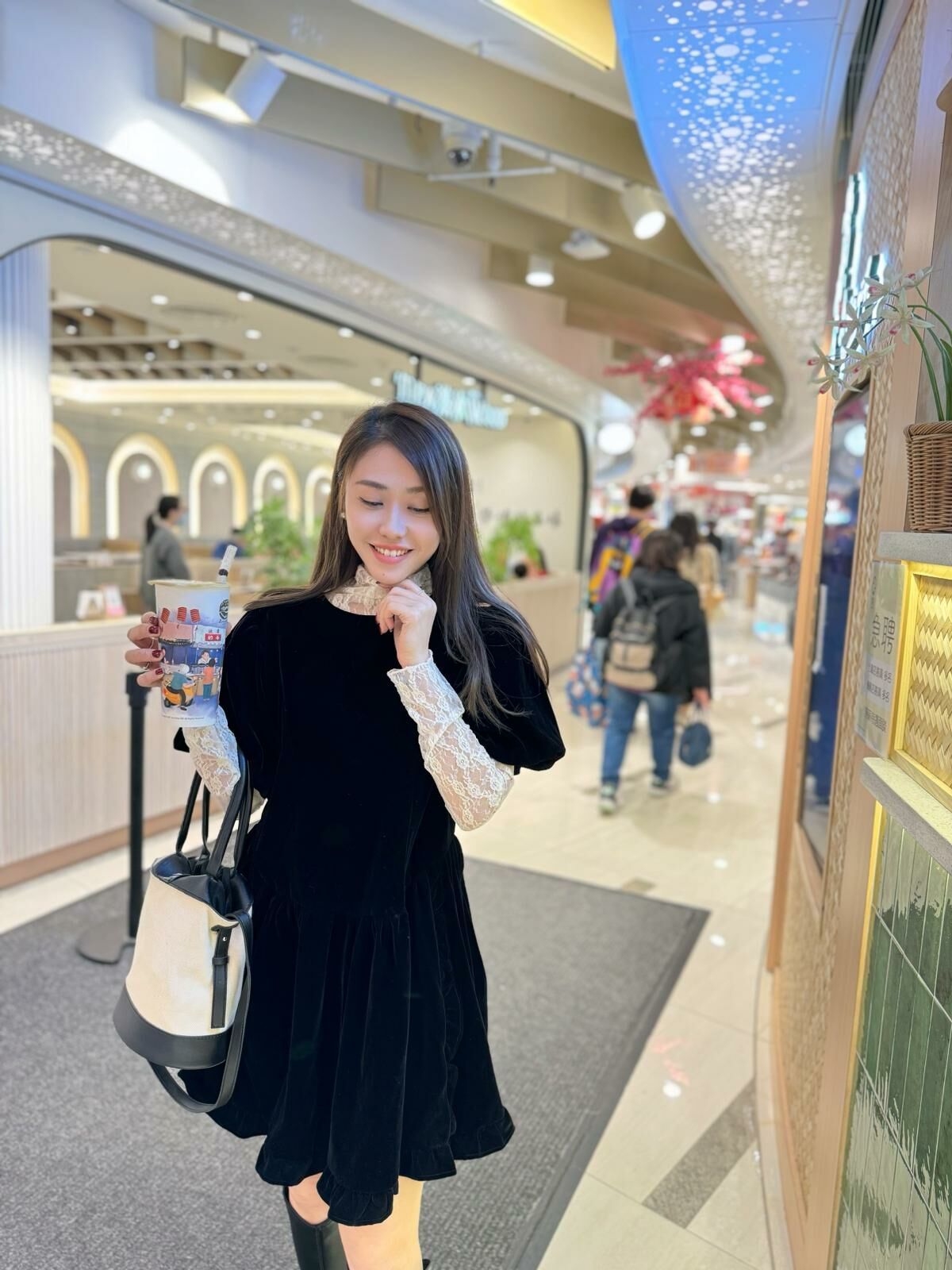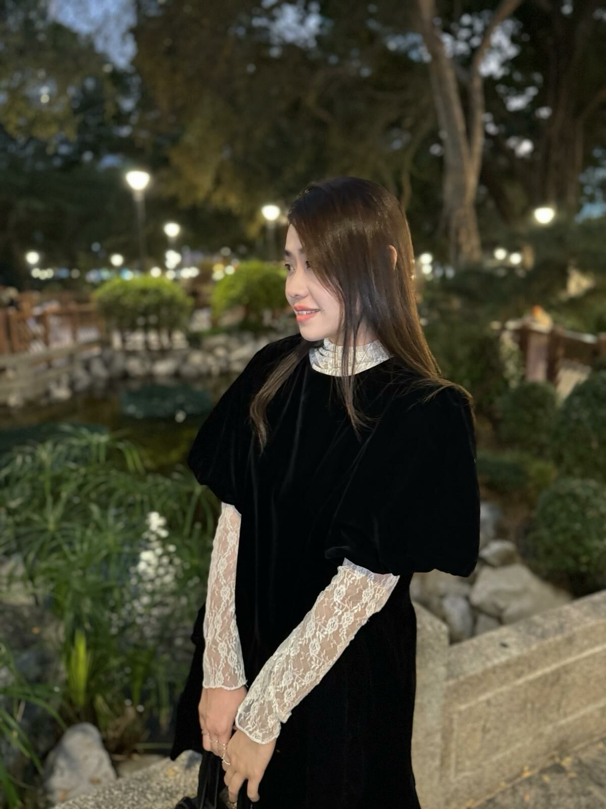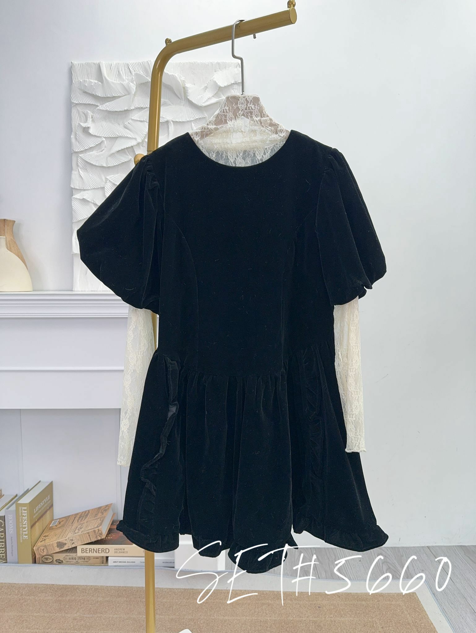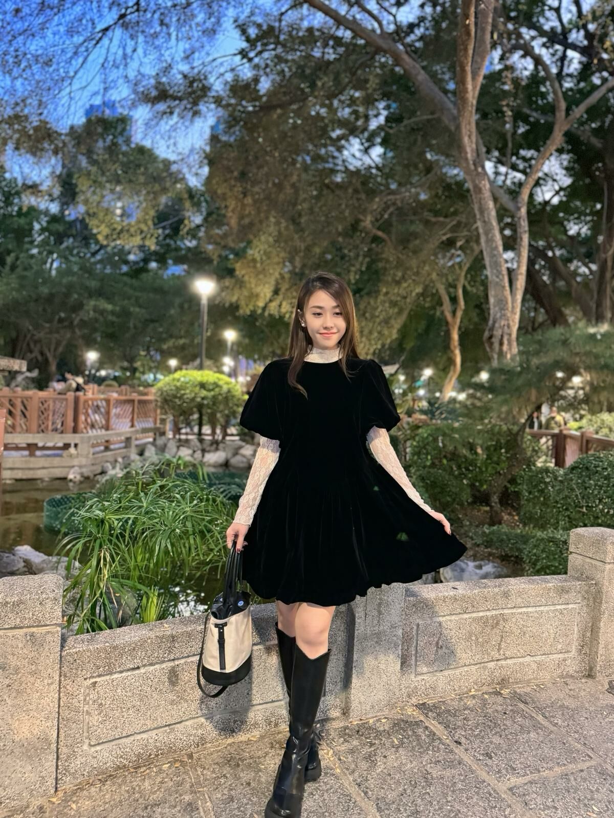 🖤浪漫法式lace 通透打底襯得吸光絨面裙非常低調地華麗~