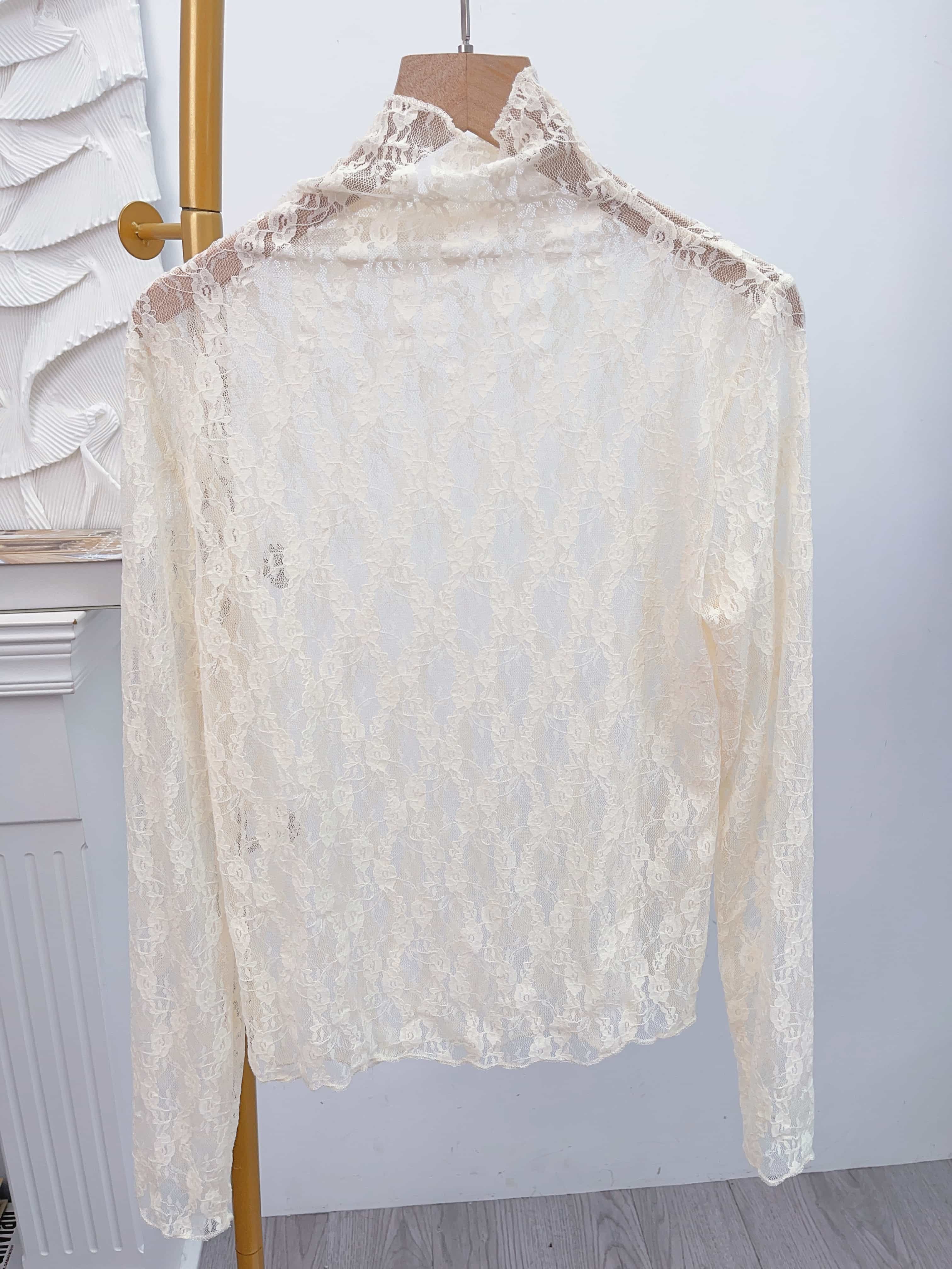大而軟身嘅燈泡袖同幼lace 紋嘅袖對比令成個人露出嘅前臂位特別有顯瘦效果