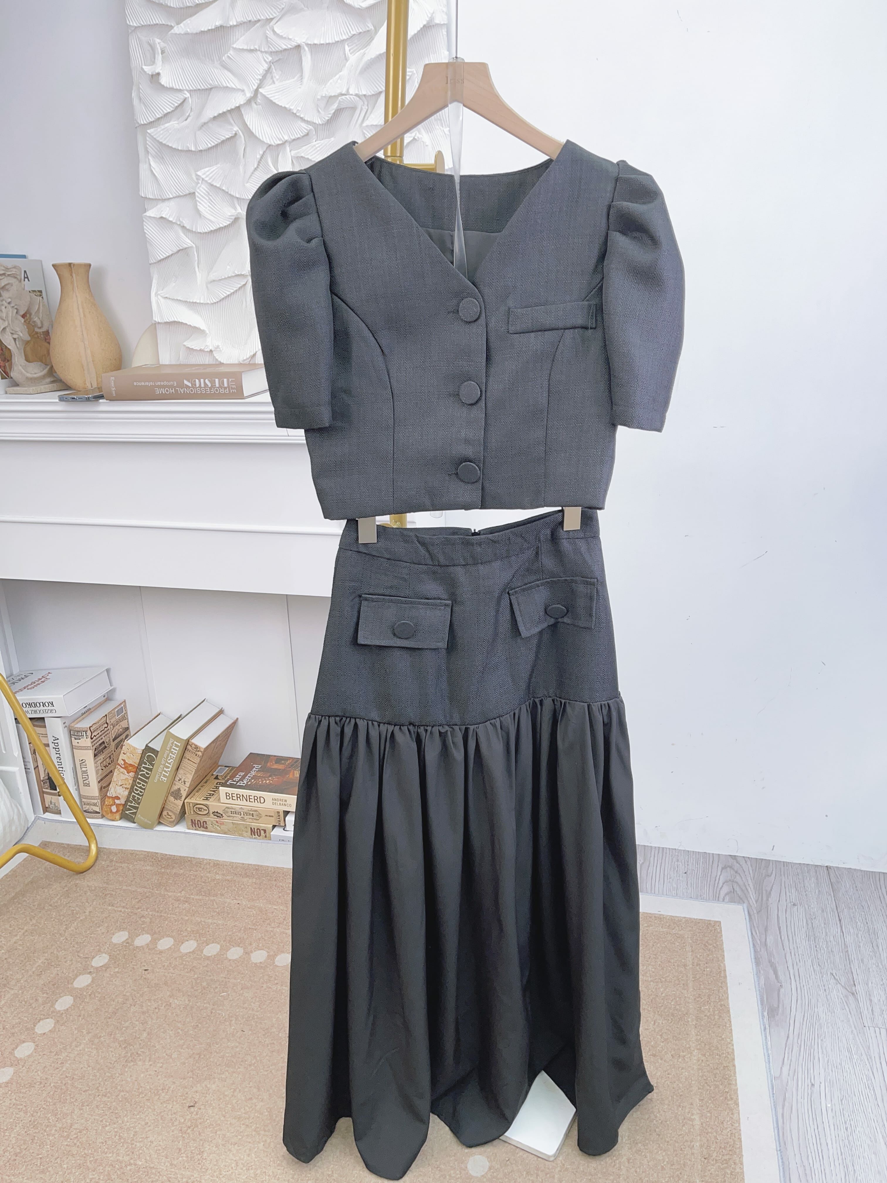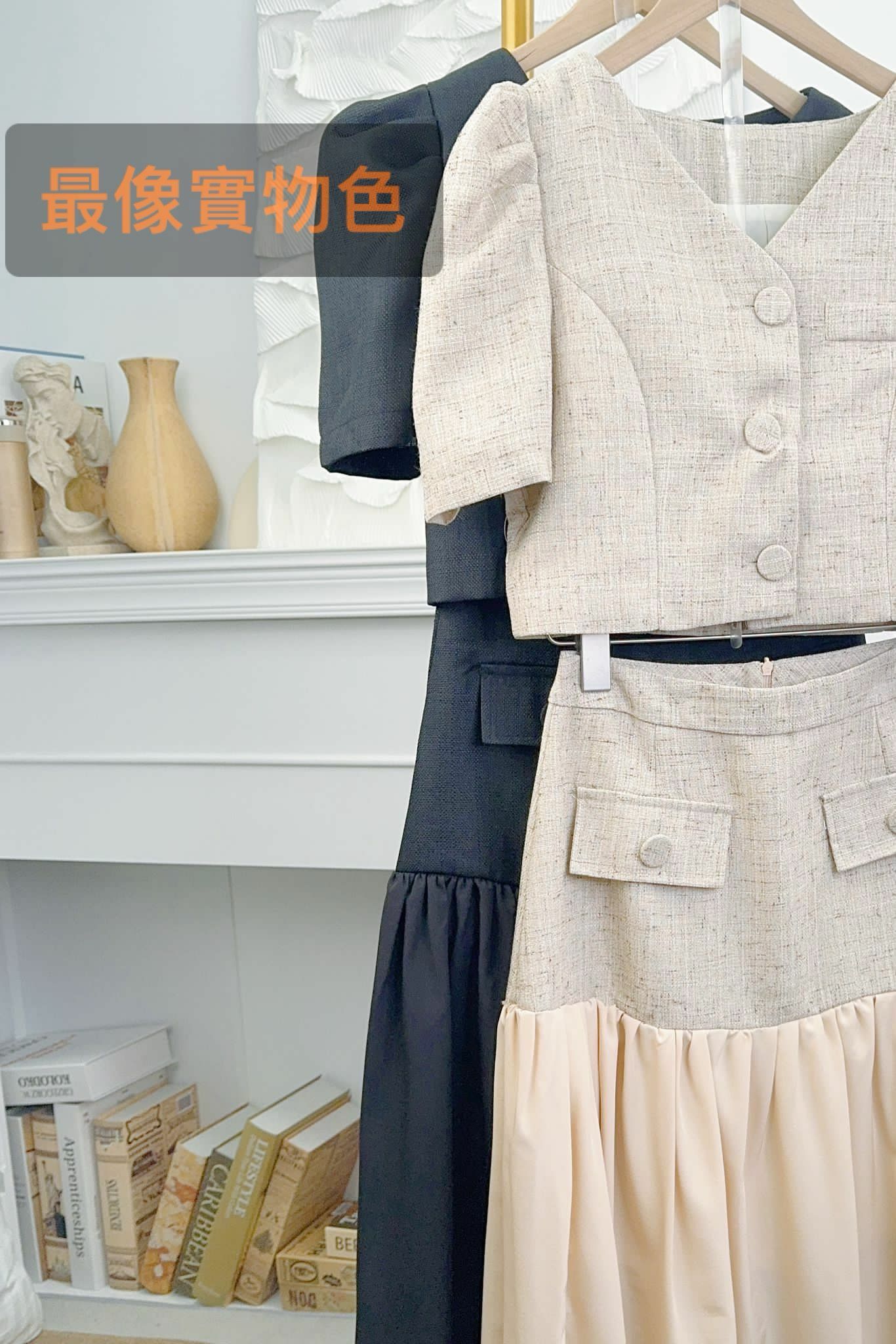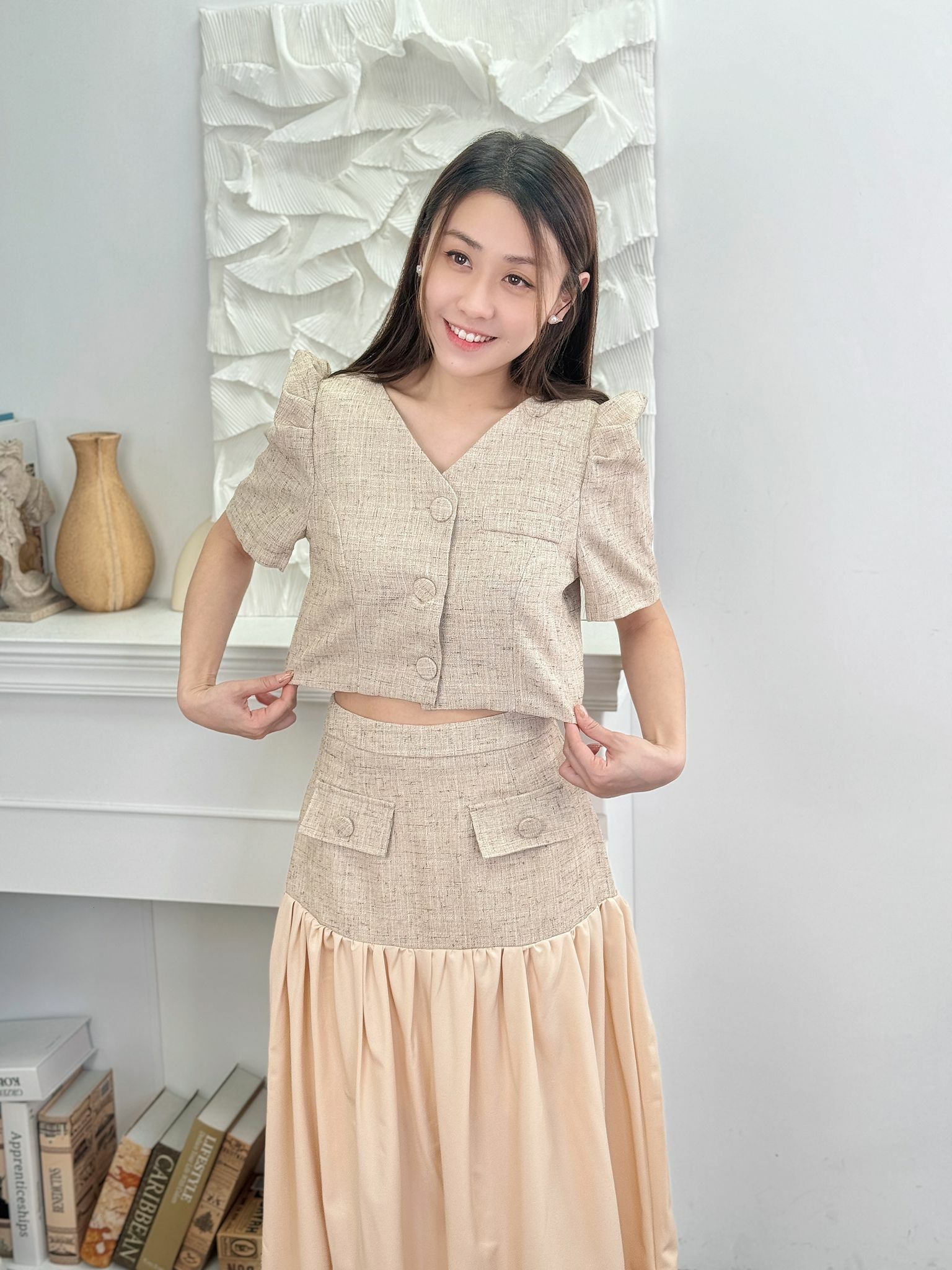 加入左飄飄裙下擺嘅小香套裝