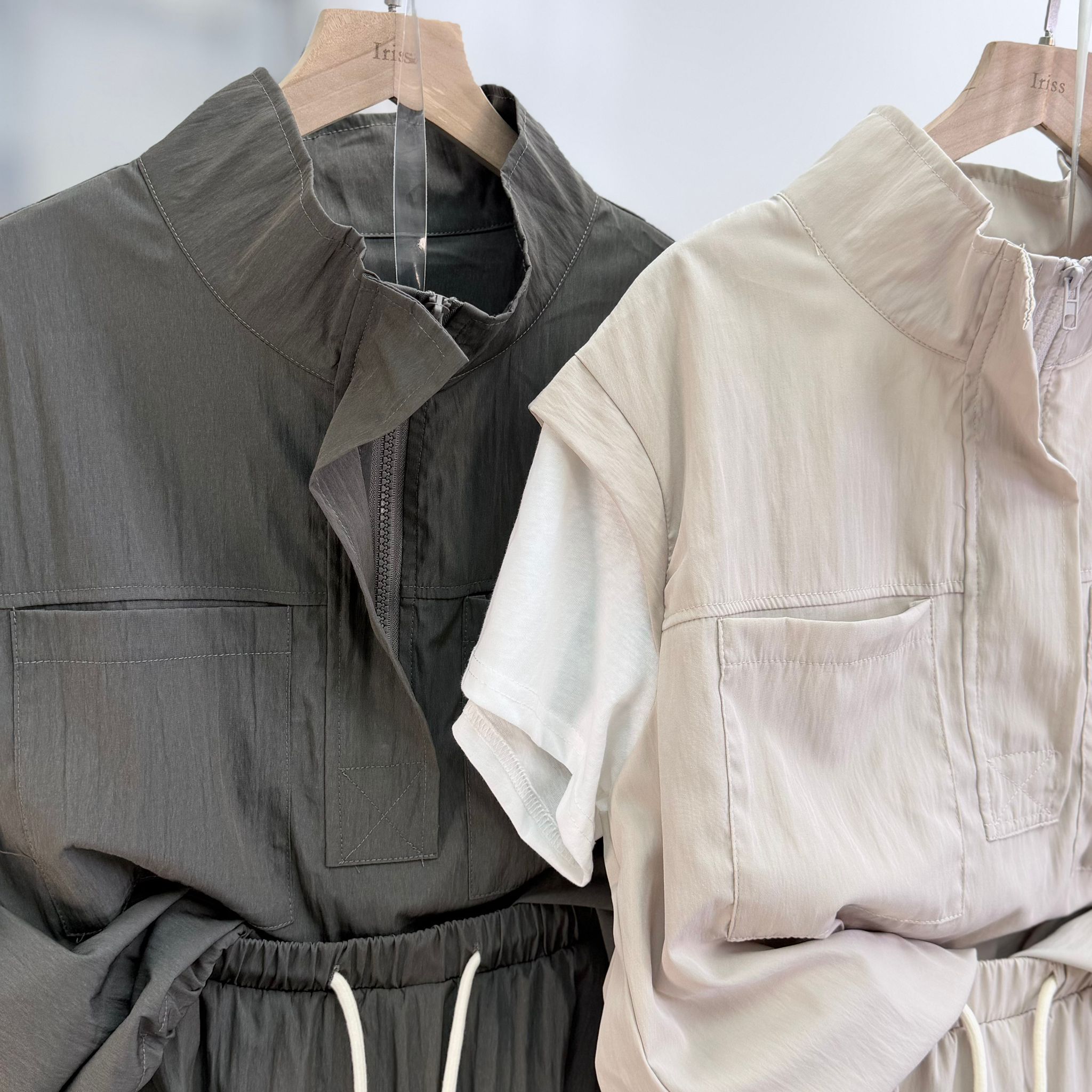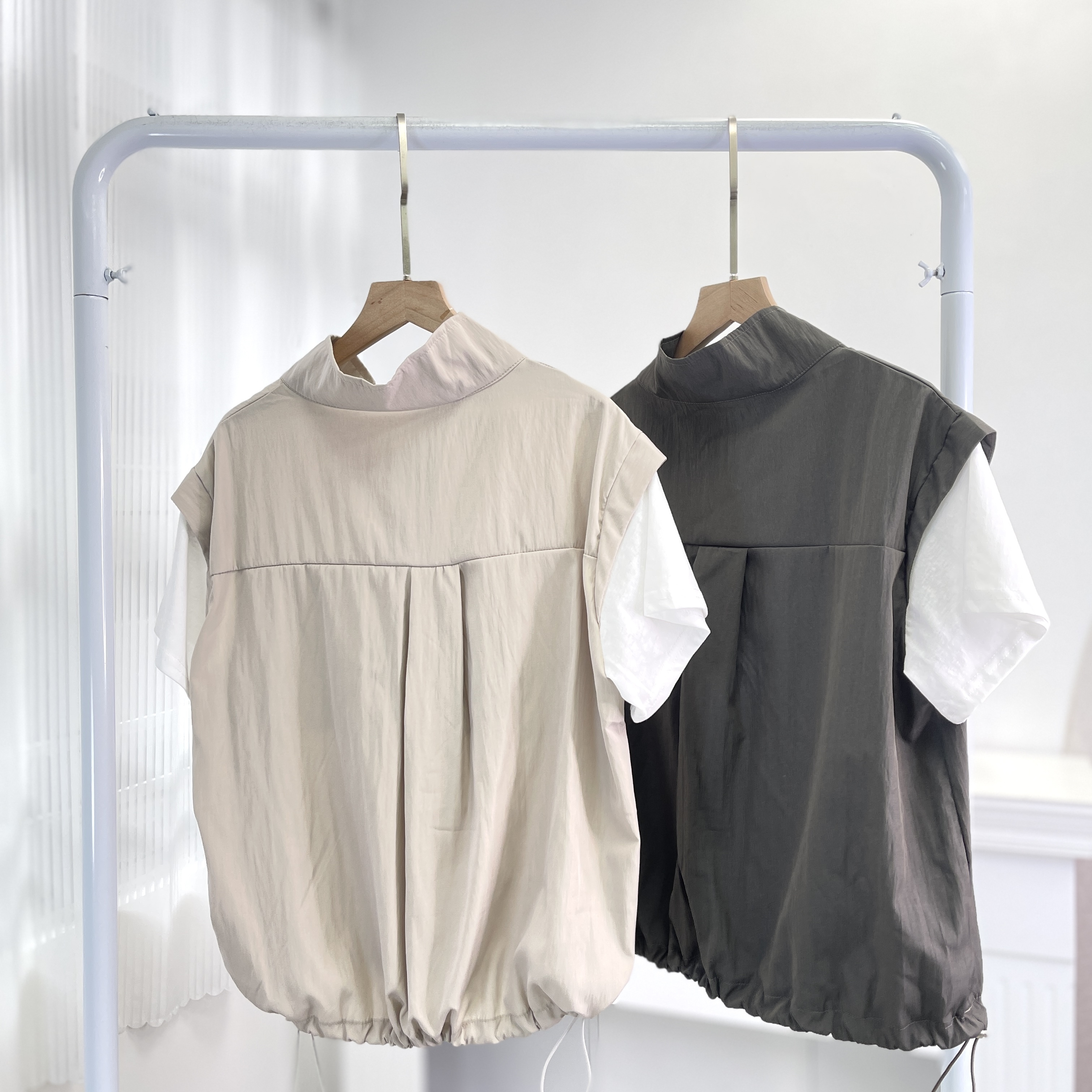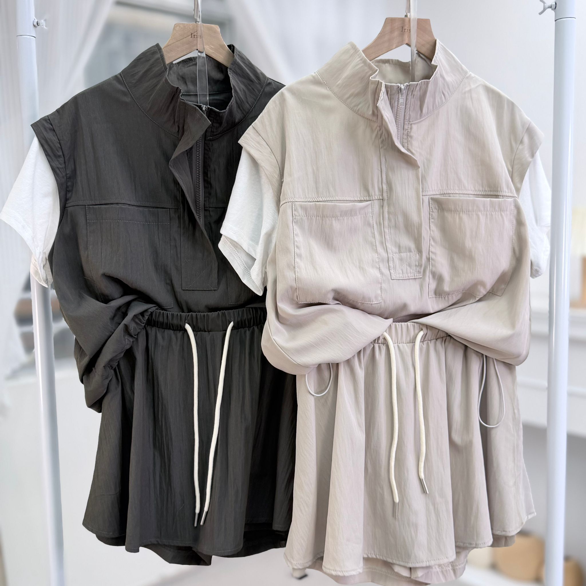 套裝 上衣 肩19‘’袖長5‘’夾位17” 胸43” 腰44(可束)” 長21.5”吋