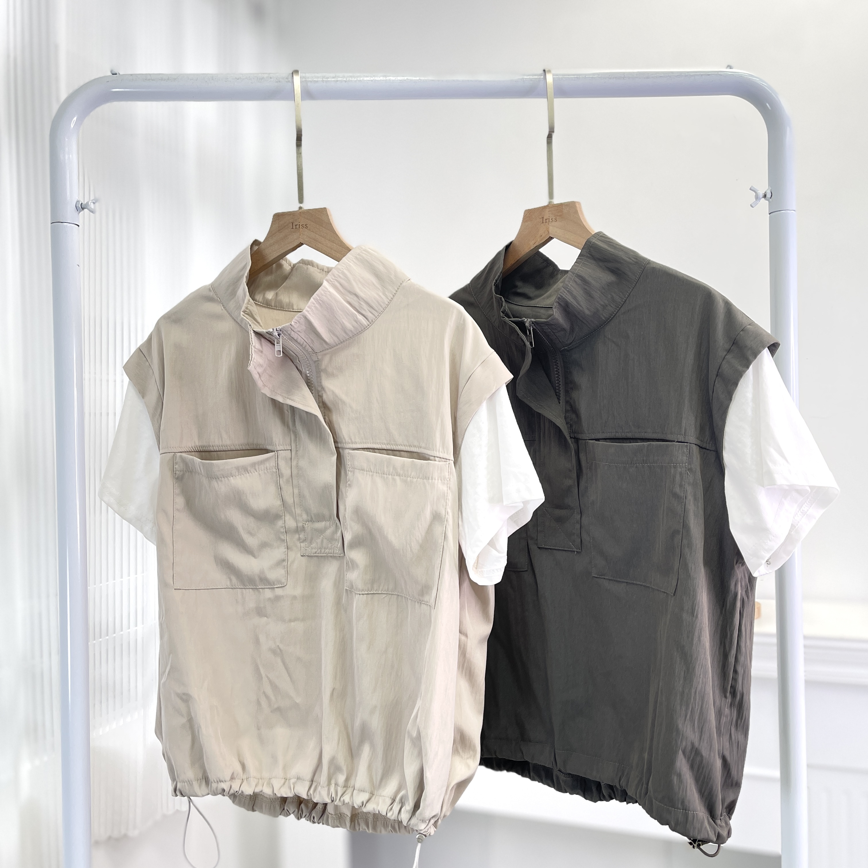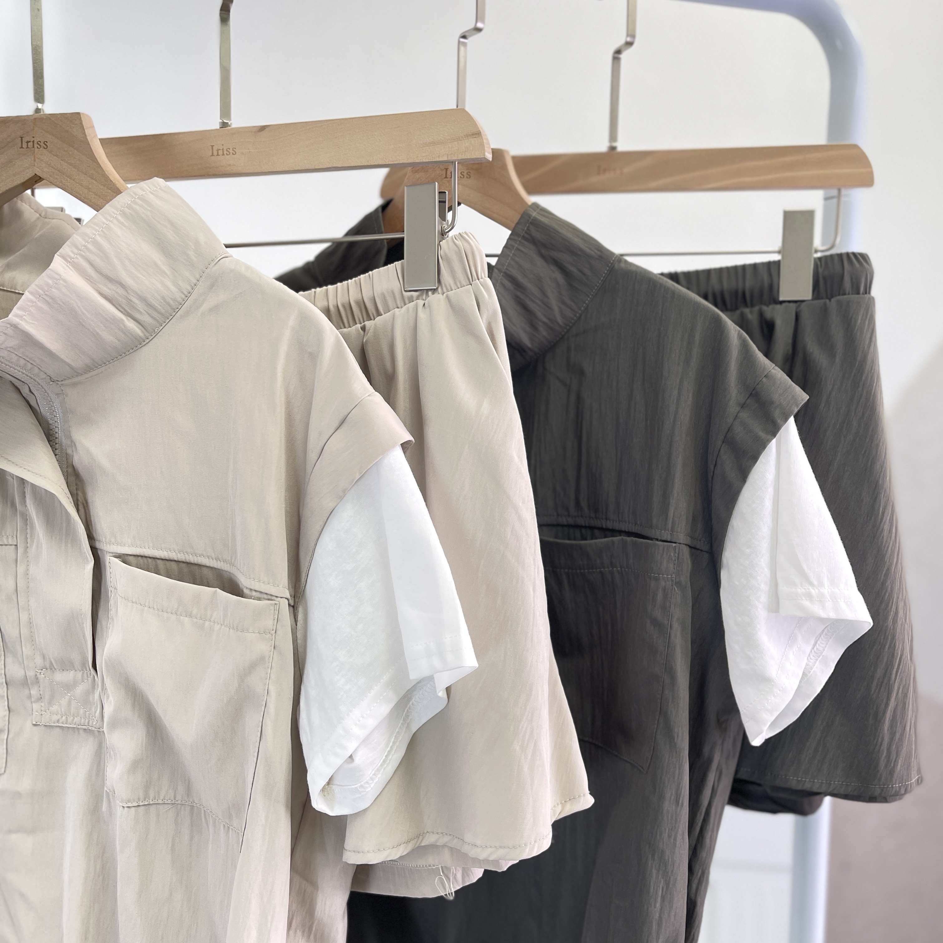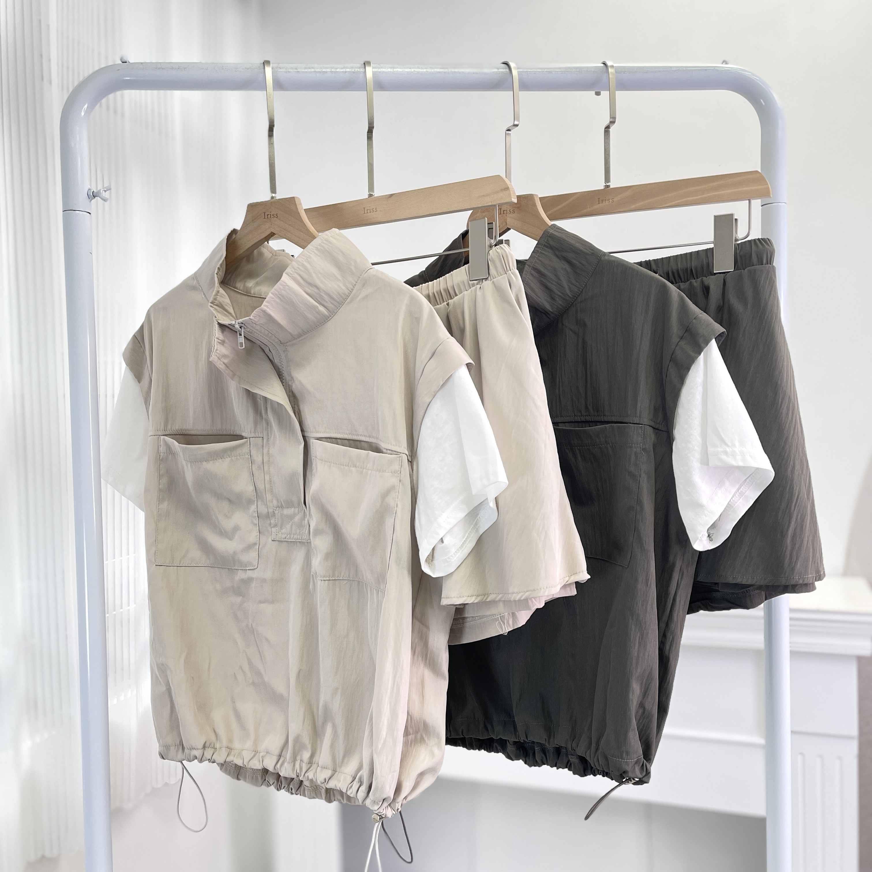 套裝 上衣 肩19‘’袖長5‘’夾位17” 胸43” 腰44(可束)” 長21.5”吋