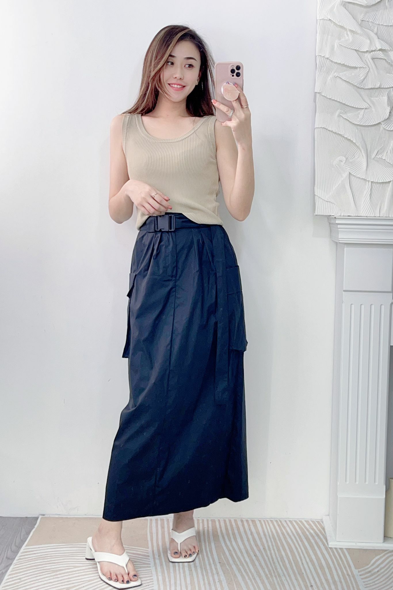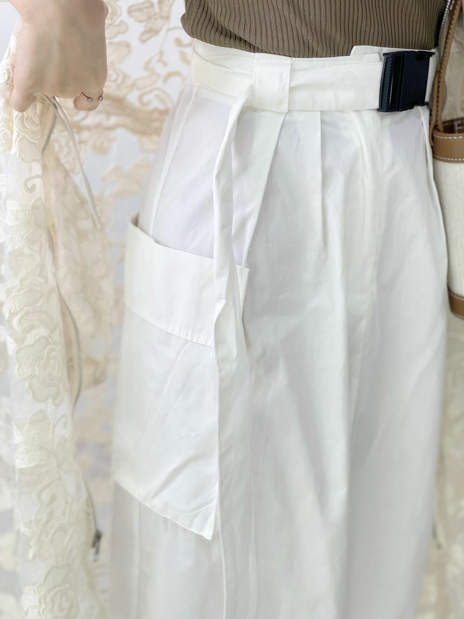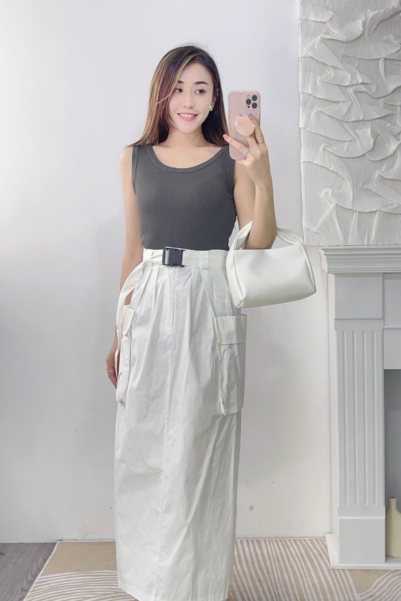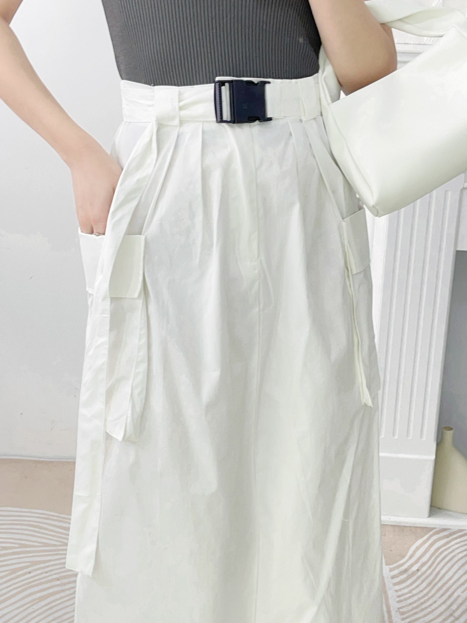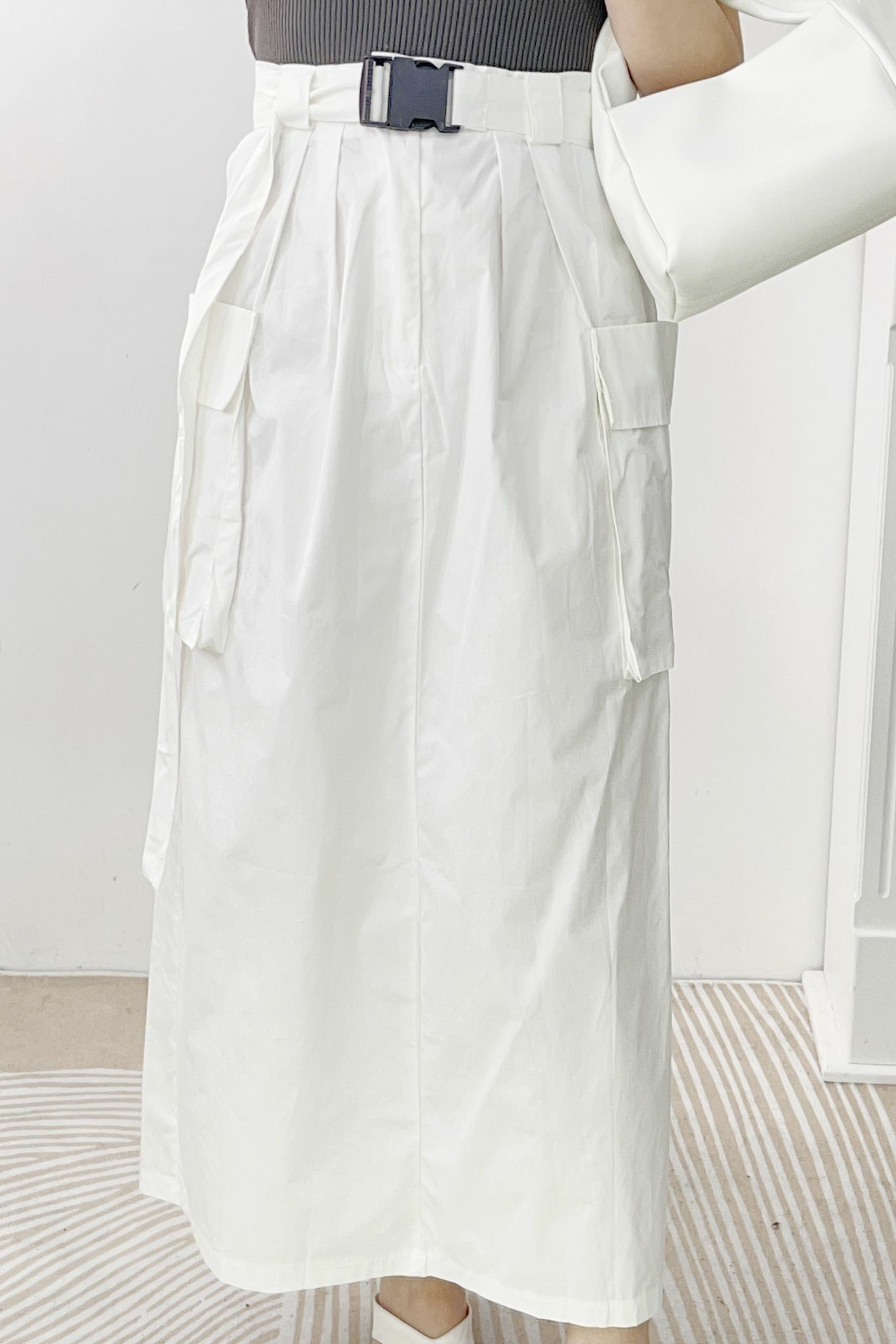 加上完全不緊腰的後像根腰和塑料扣扣令整個打扮變得超有型而有stylish 效果🤍🤍