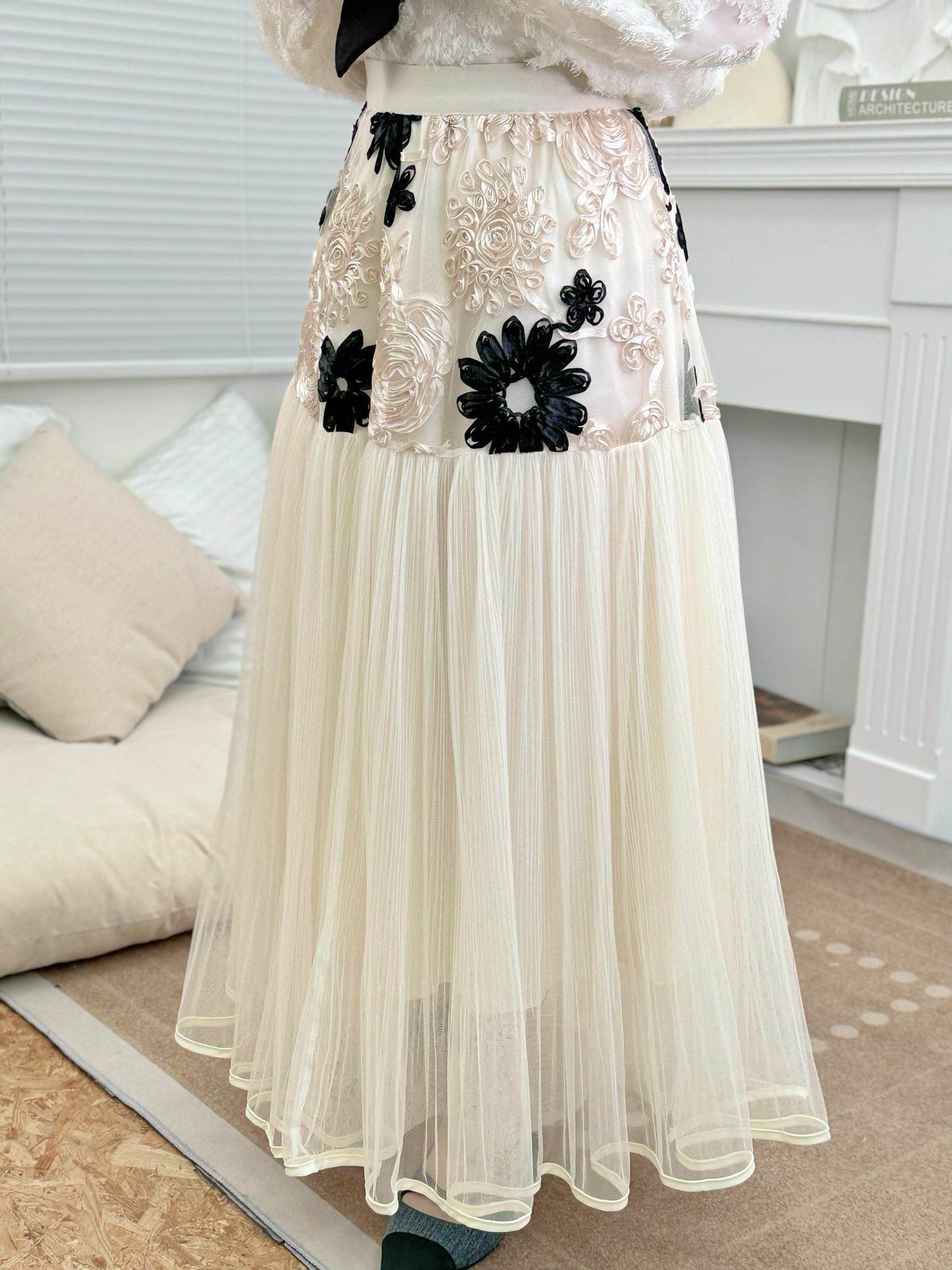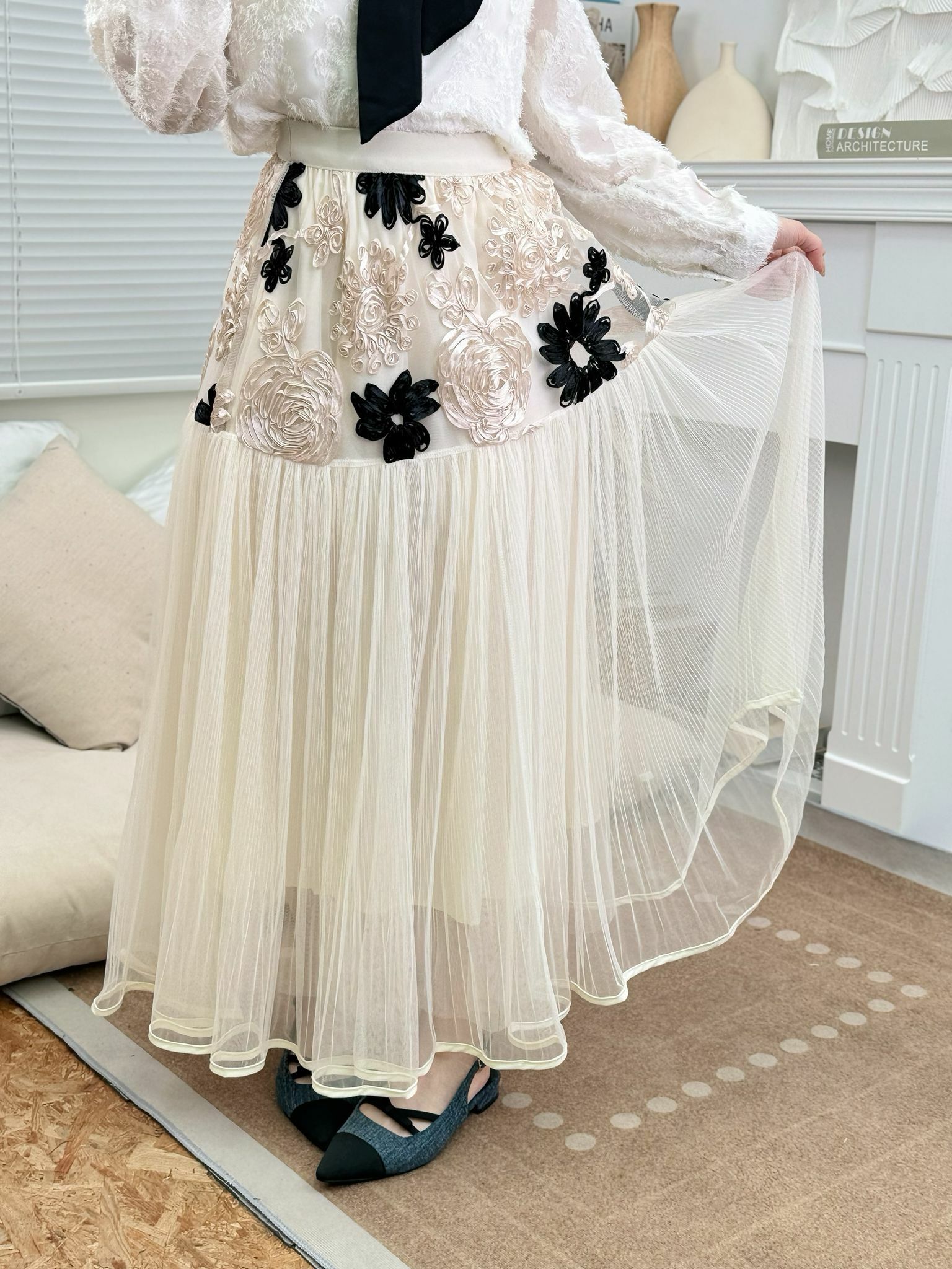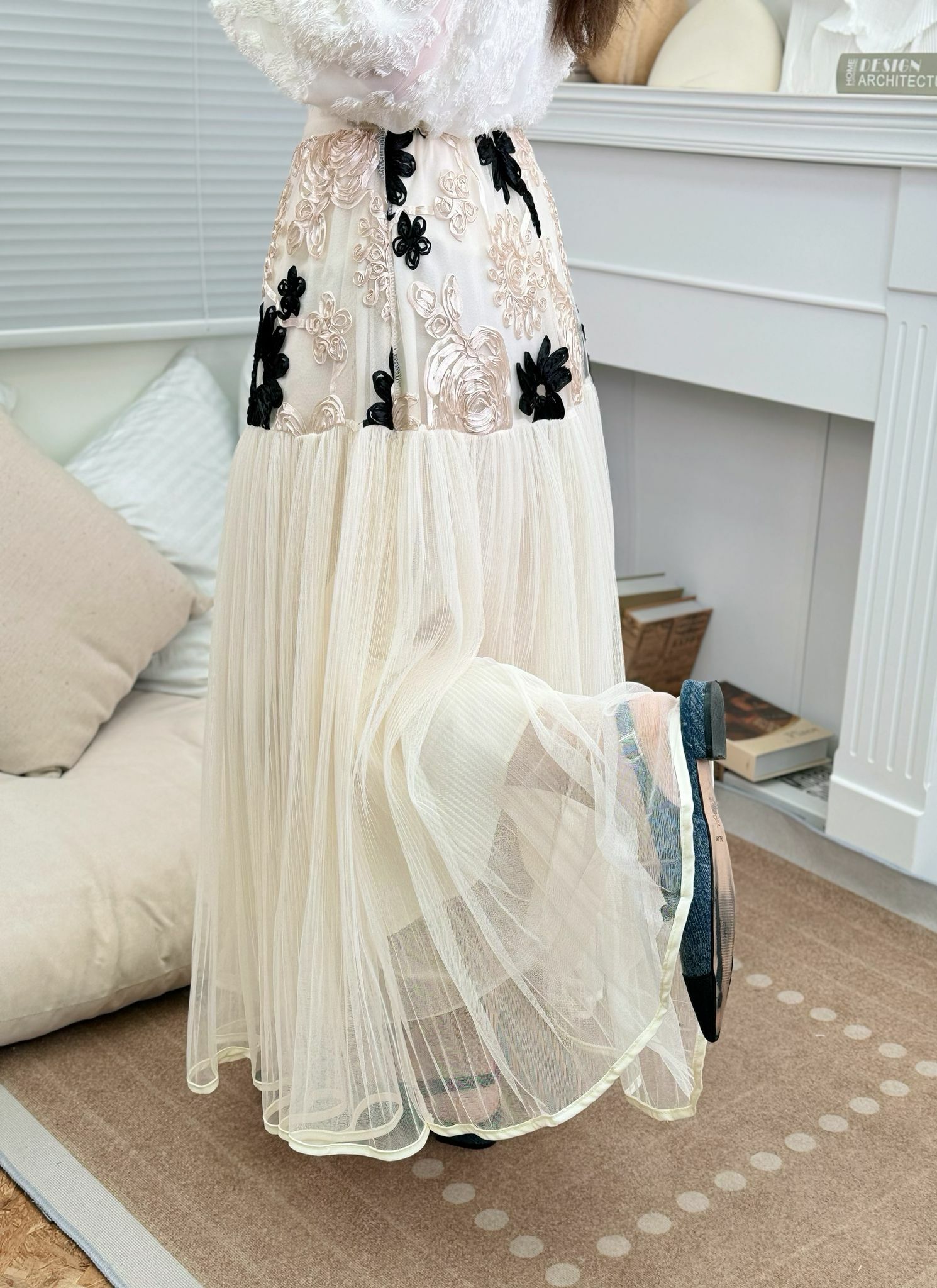 所以即使喺臀圍位置做咗咁多唔同嘅立體花花~佢比起全條紗裙仲會更加顯瘦而完全唔會臃腫