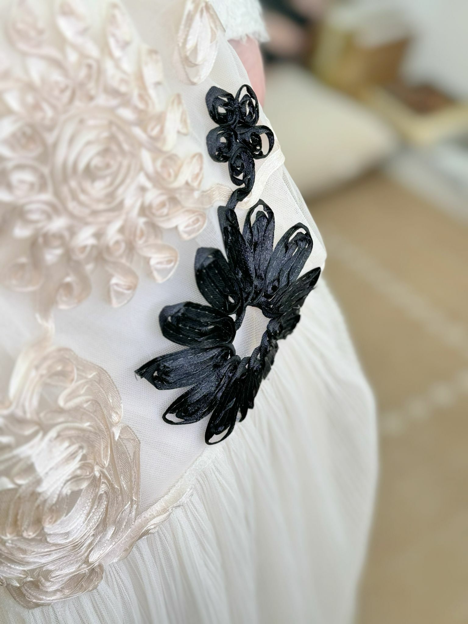 整個緞帶花部分同下身飄逸紗分離⚠️兩個唔同面料係完全無重疊