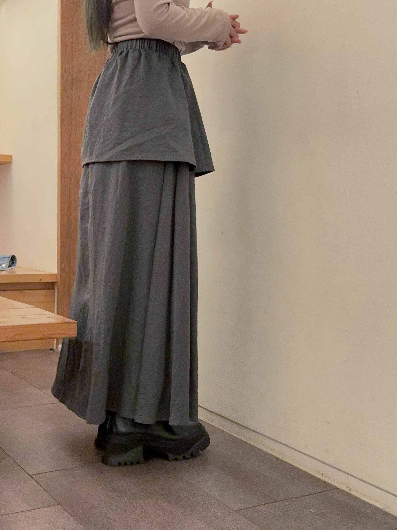 又長又短的兩條下身裙車埋一齊😌一眼望過去可以同時有着短裙嘅效果+又有長裙嘅日式溫柔配襯feel