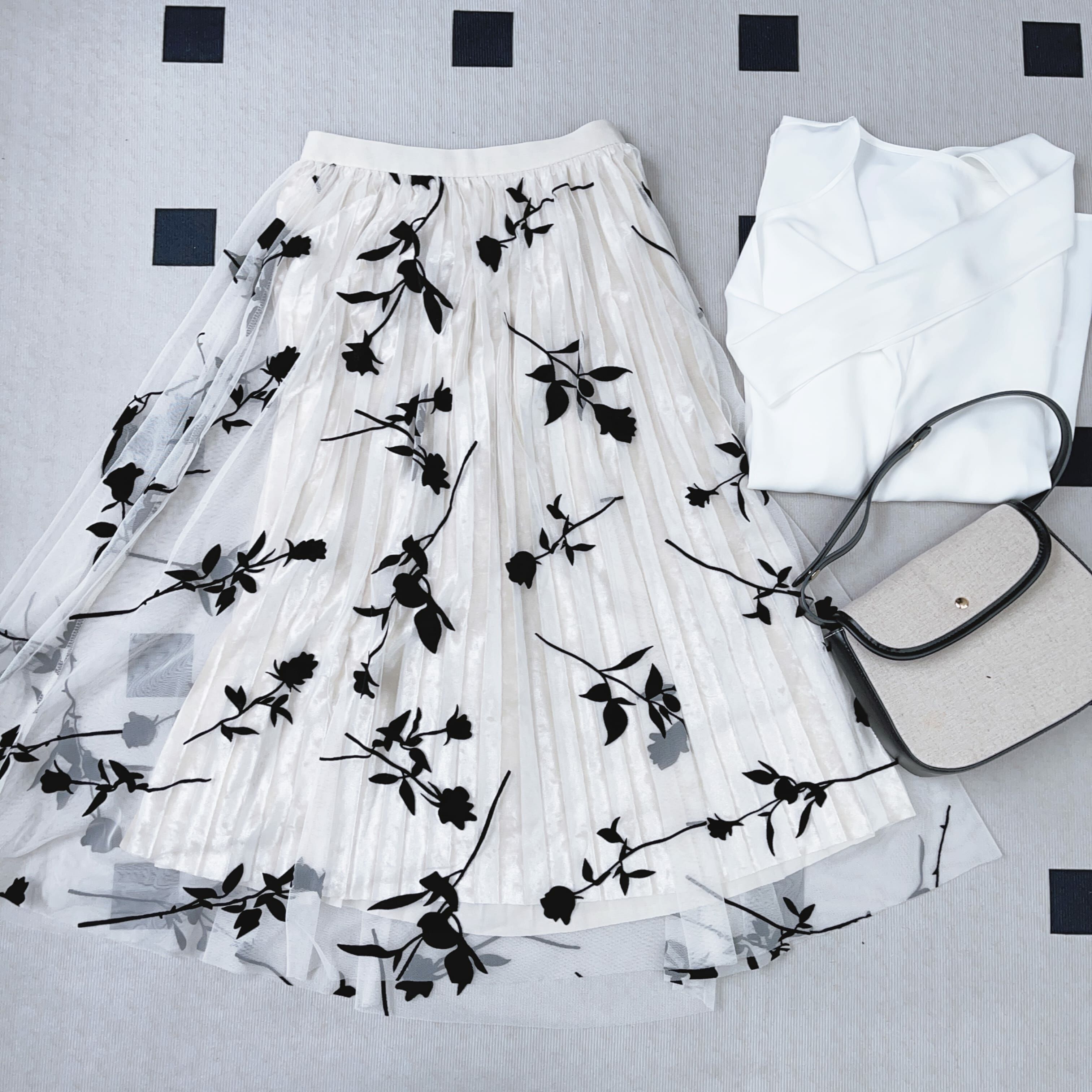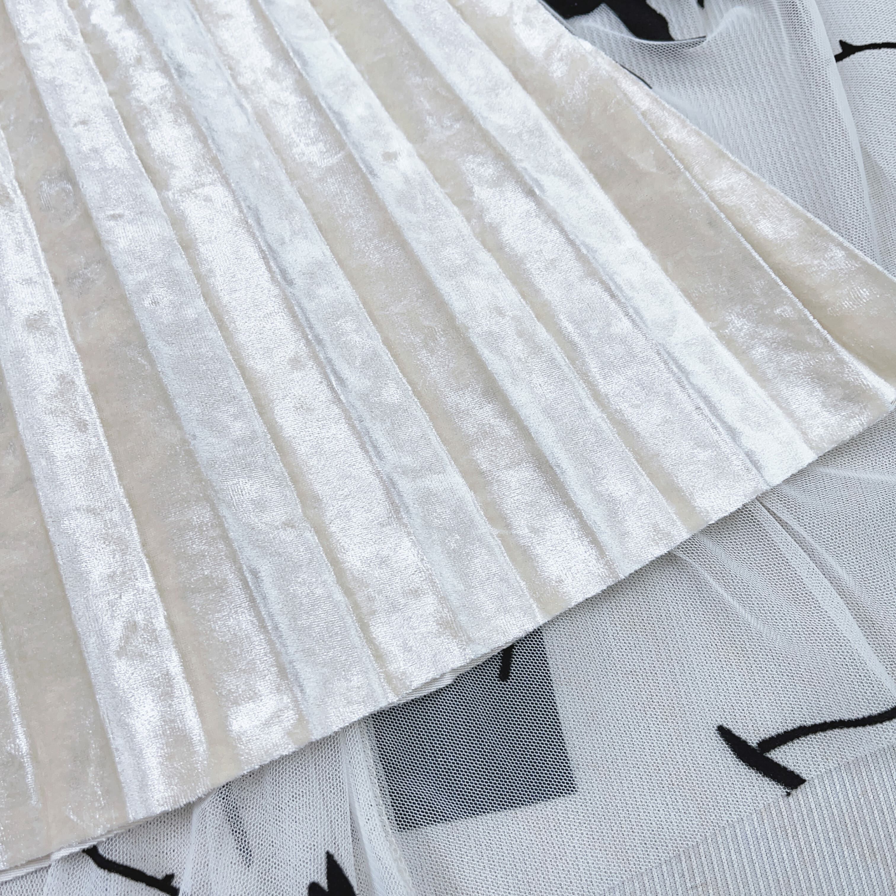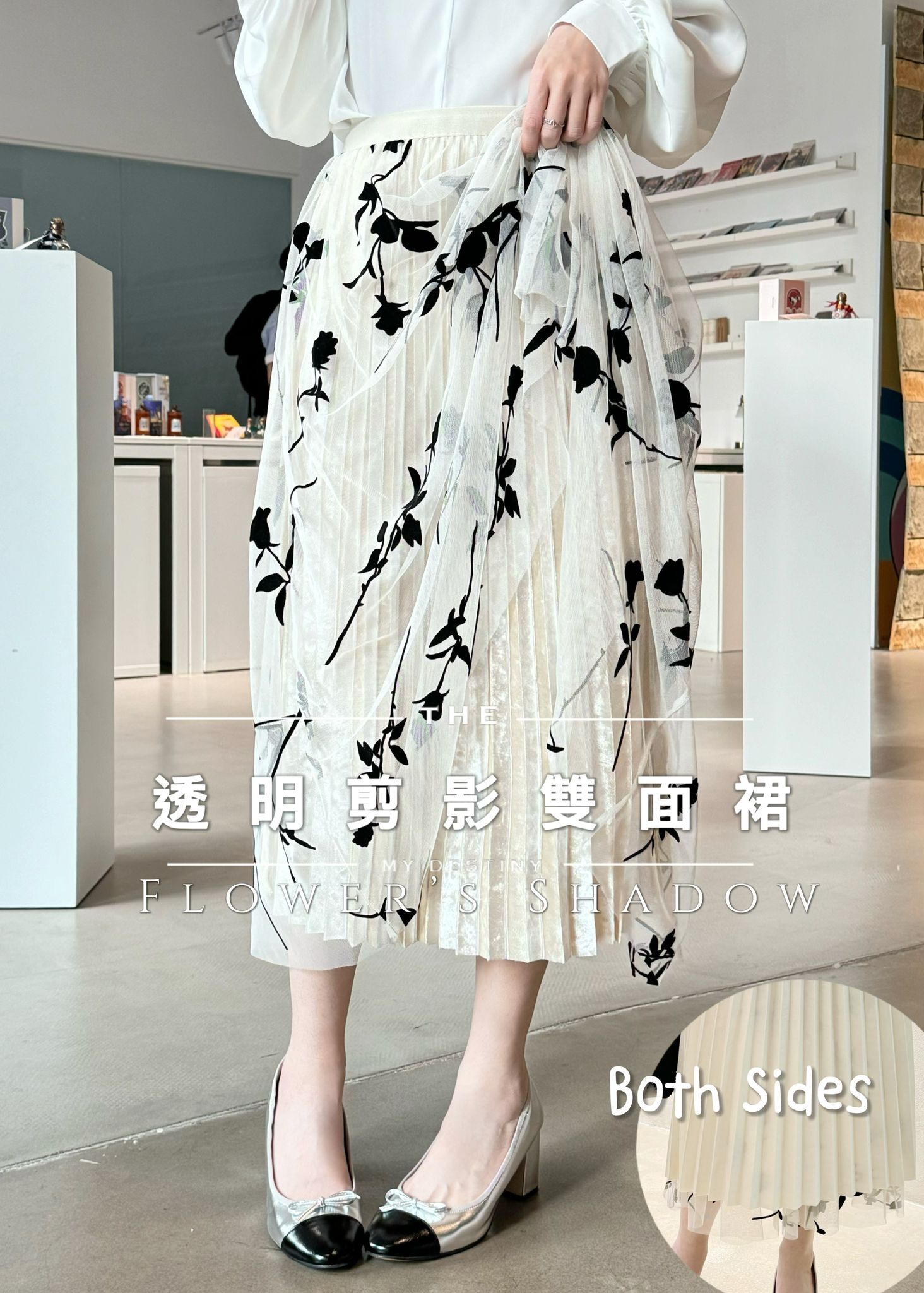 反轉另一邊正式嘅百褶裙會喺下擺見到露出嚟嘅花邊亦會喺裙嘅燈光底下會透露到少少花花嘅黑影,好特別🤍🤍🕶️