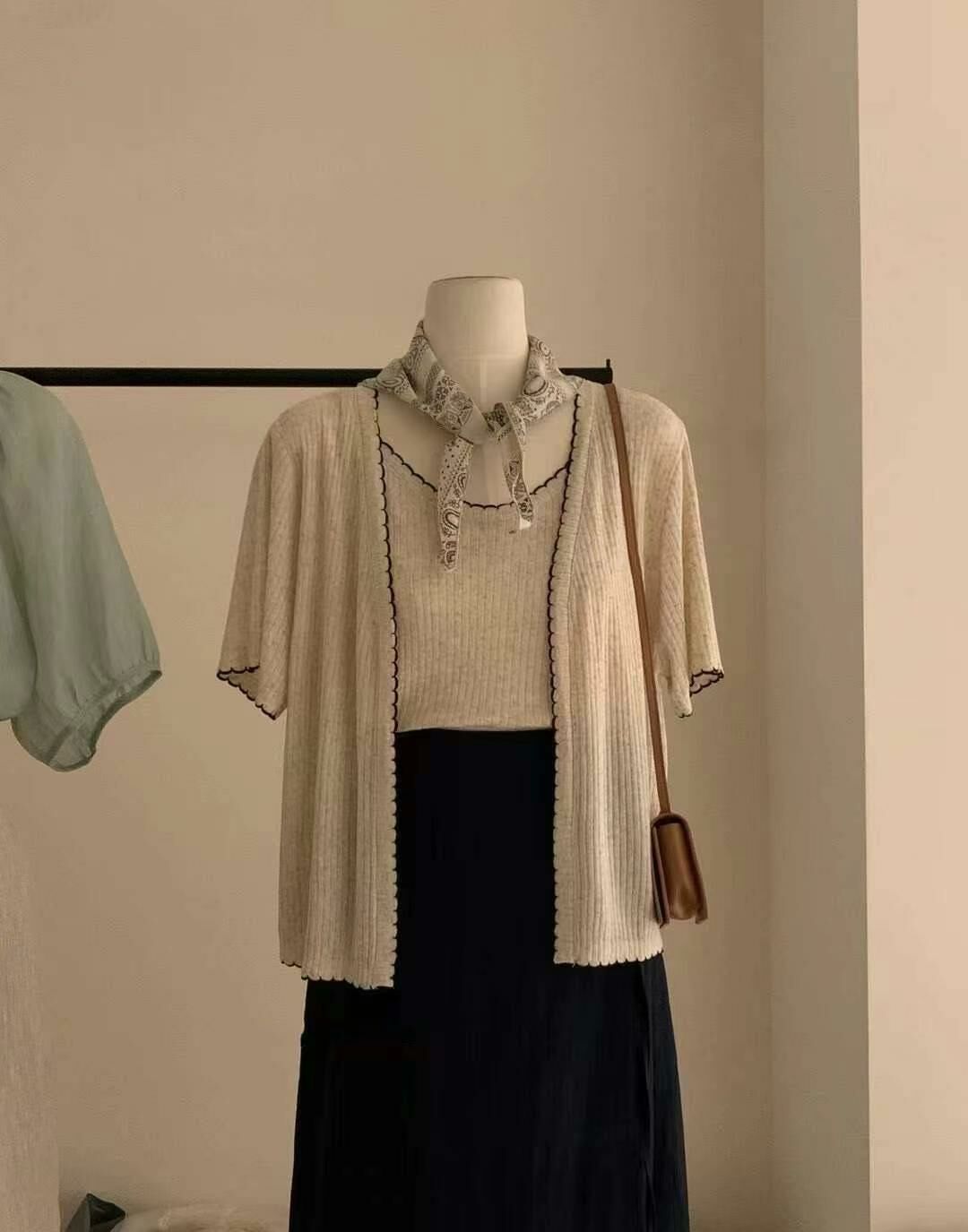 ☝🏻🩶開衫嘅邊緣仲有精緻嘅織帶裝飾,呢個小細節真係為成件衫加分不少,增加層次感之餘仲顯得非常高雅。