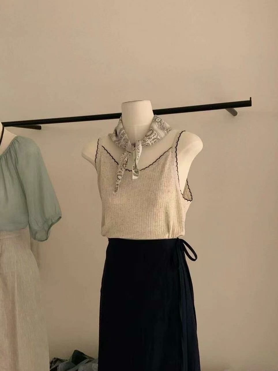 背心嘅吊帶設計簡單利落,配合輕盈嘅剪裁,營造出簡約但唔失時尚嘅感覺。