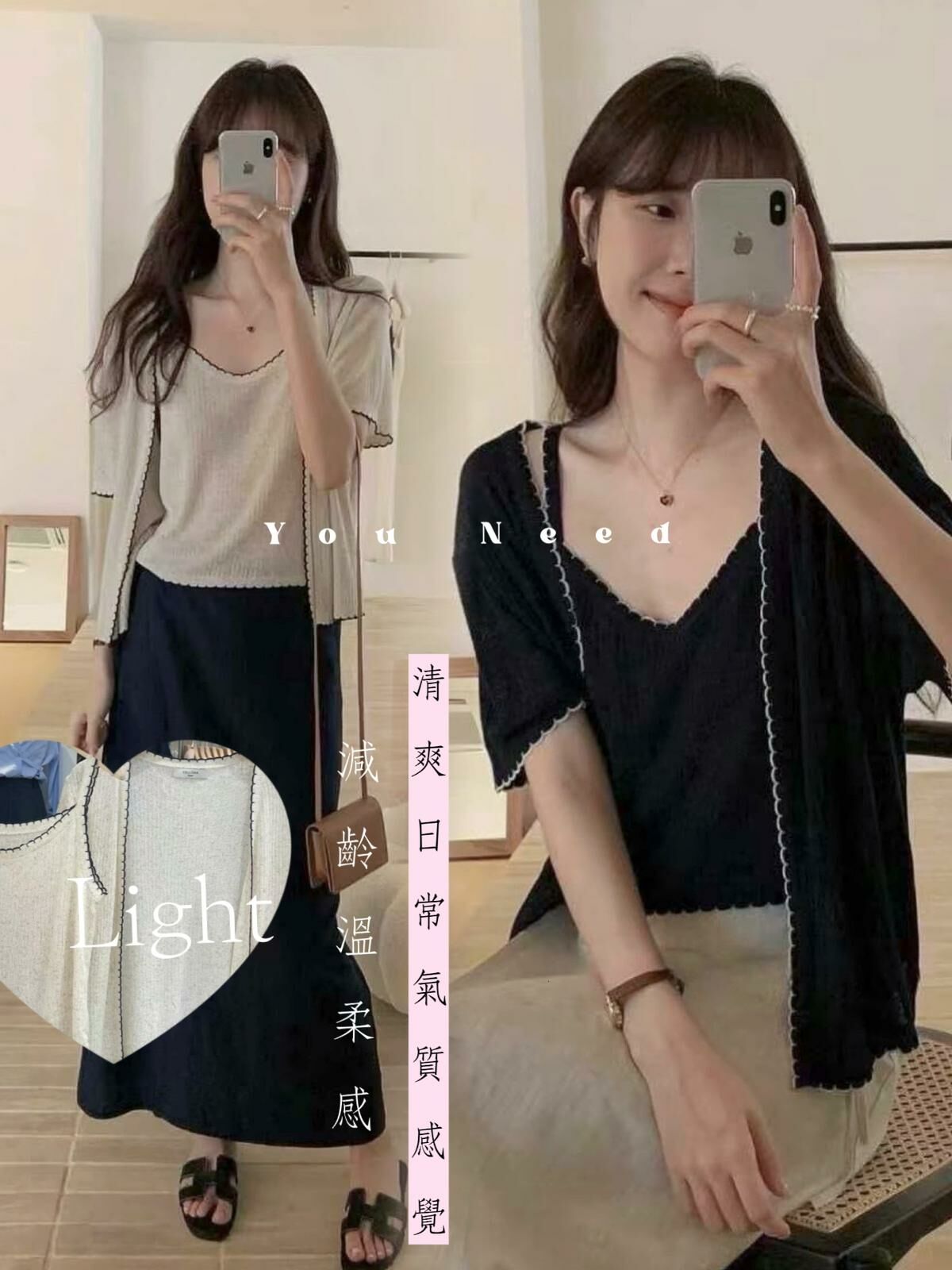 兩件獨立配搭,單穿定係成套穿都好有型;開衫仲可以作為輕便嘅外套,喺冷氣房度加件都唔會覺得焗;簡單易襯嘅設計同顏色,真係點襯都唔會出錯。