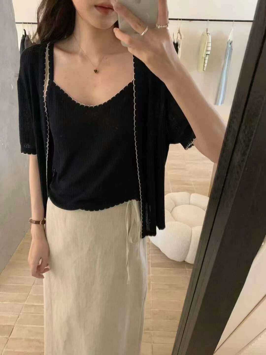 呢件夏日輕便兩件套,簡直must-have。吊帶背心同埋一件短袖開衫,完美展現出清爽簡約嘅感覺。