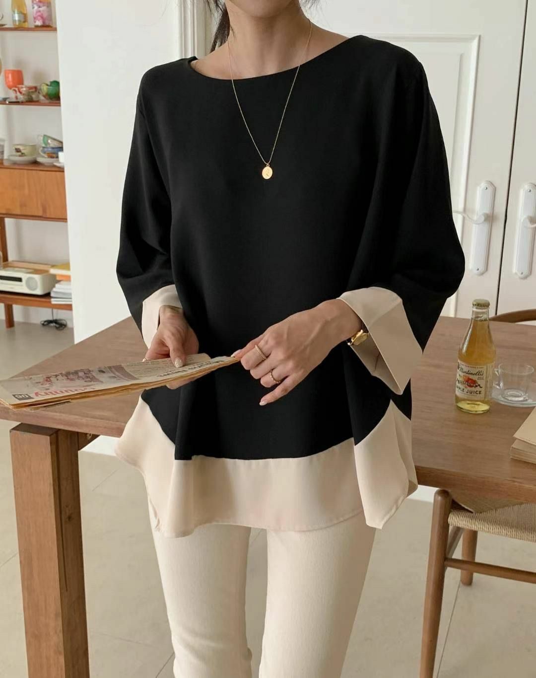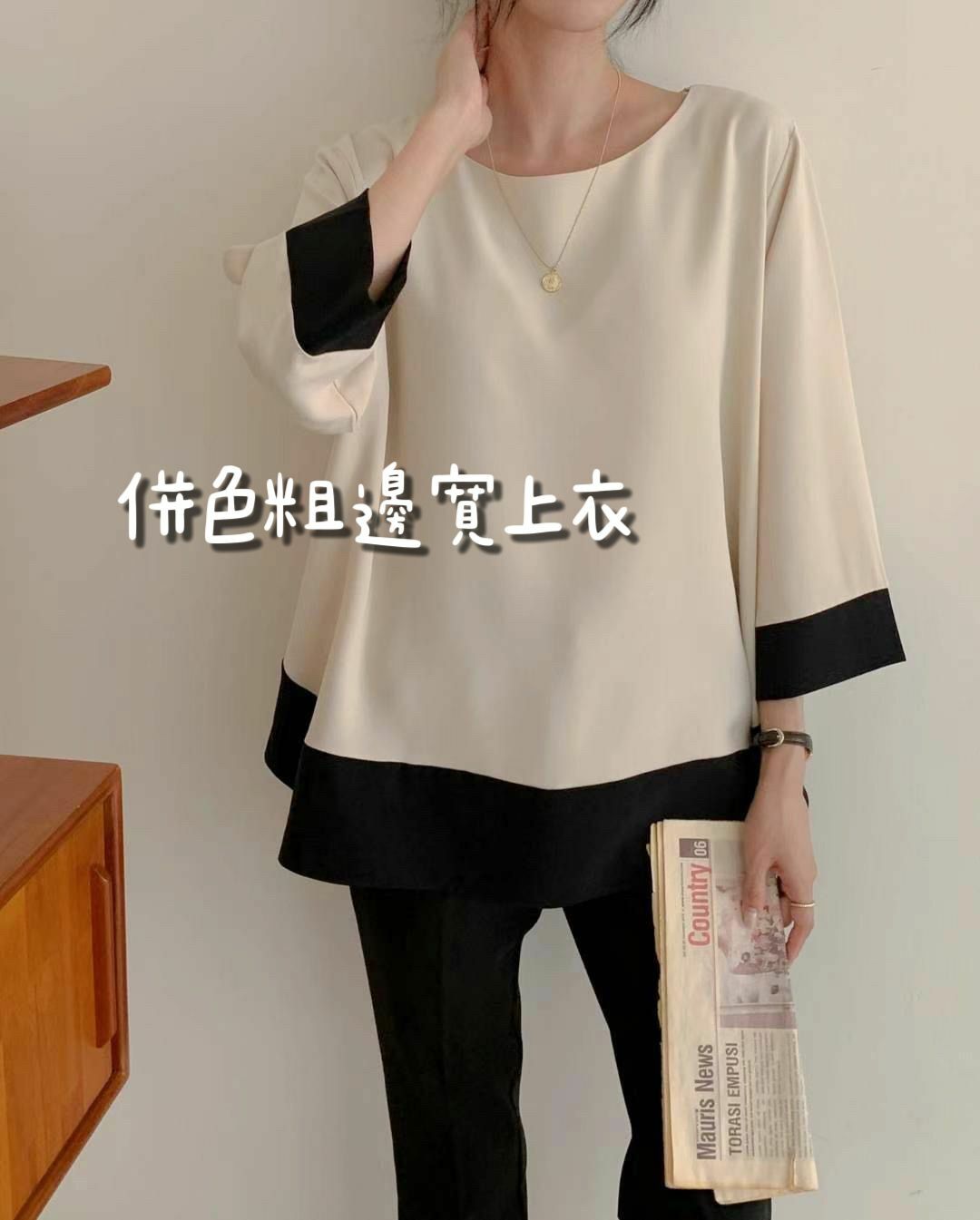全部商品 / TOP#14119 🤎併色粗邊寛上衣
