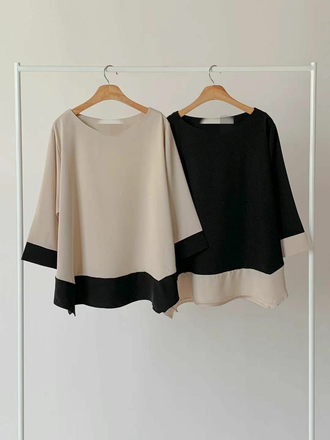 TOP#14119 🤎併色粗邊寛上衣