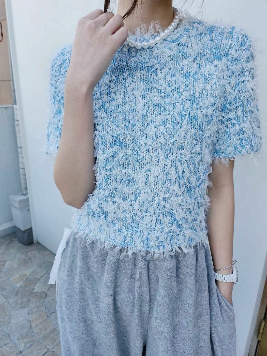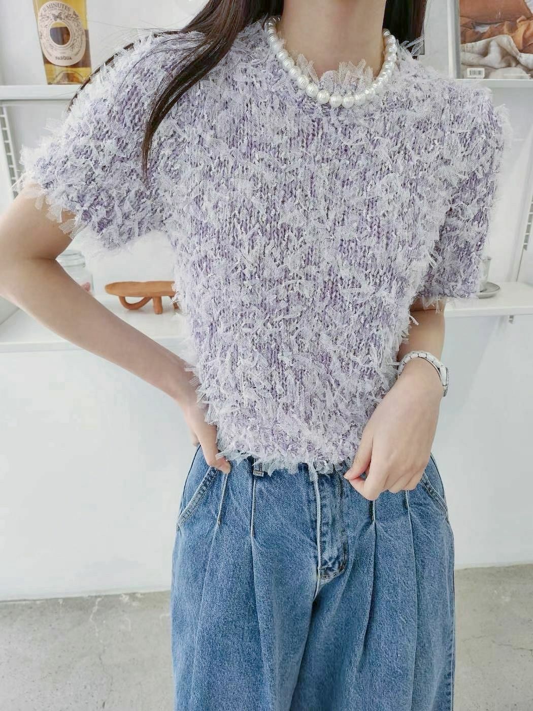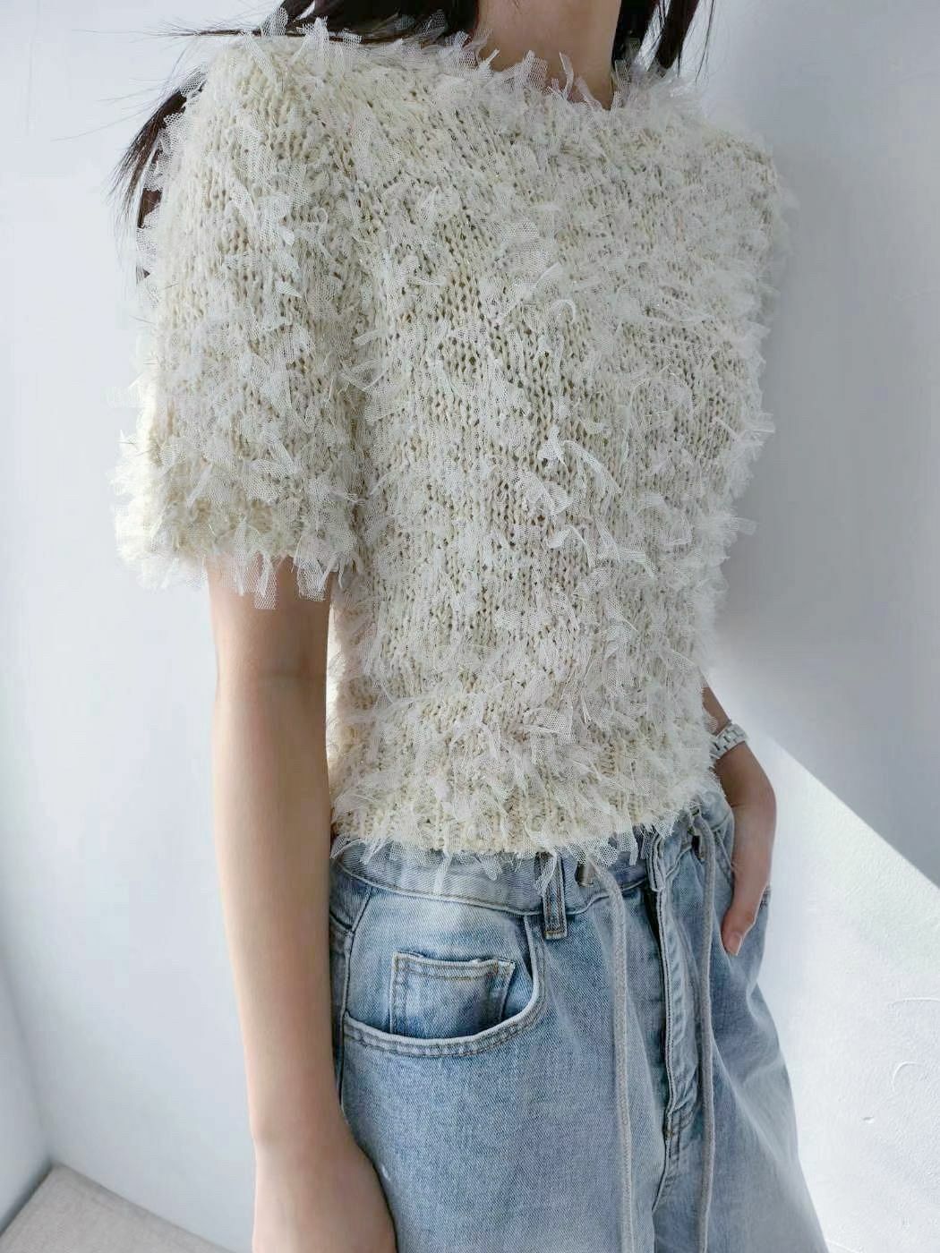 TOP#14322🤎紗條條碎上衣